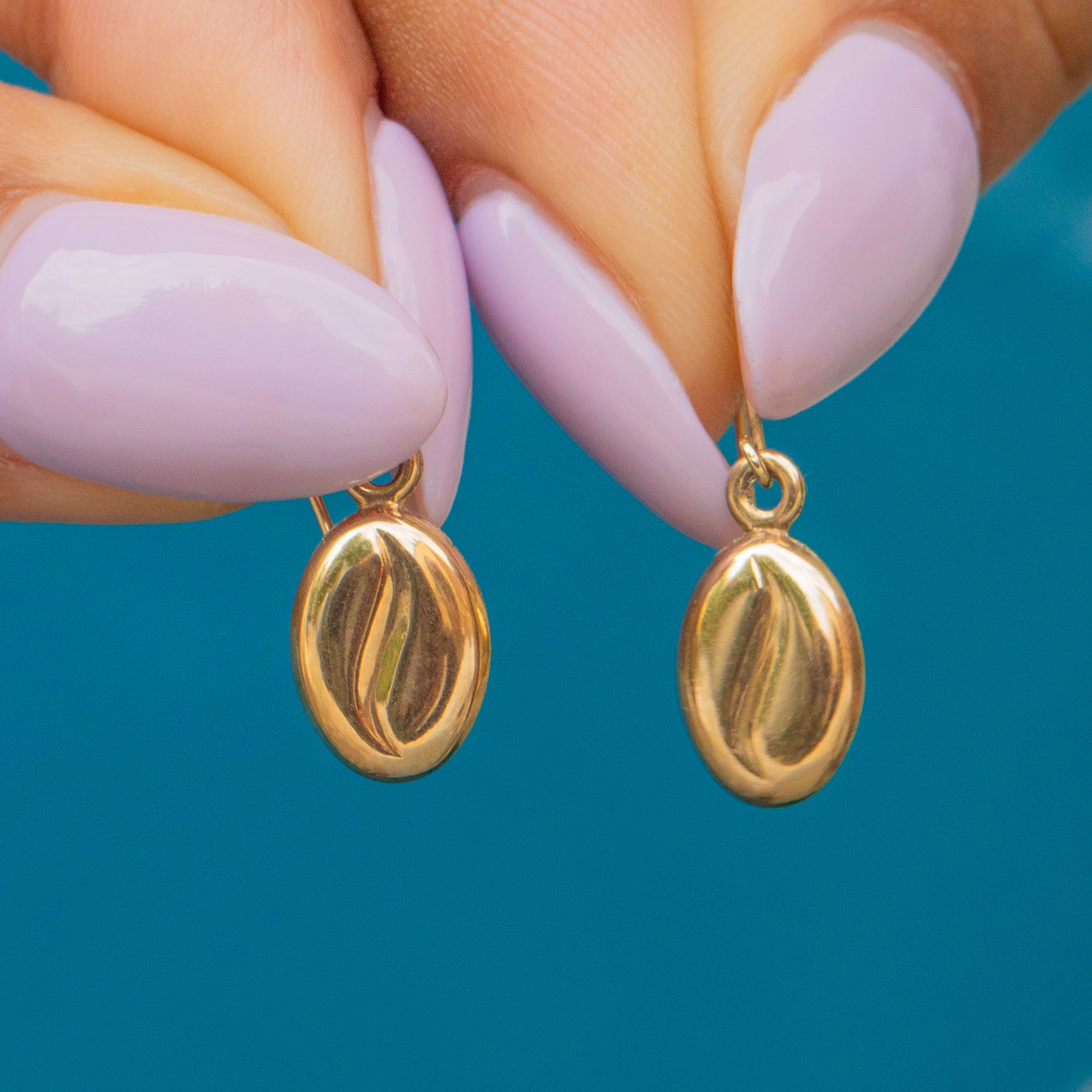 For lovers of an early morning latte, these 9ct Gold coffee bean drop earrings were made for you! Like little drops of joy, these splendorous coffee beans are crafted from buttery 9ct Gold, with a smooth groove running through their centre.