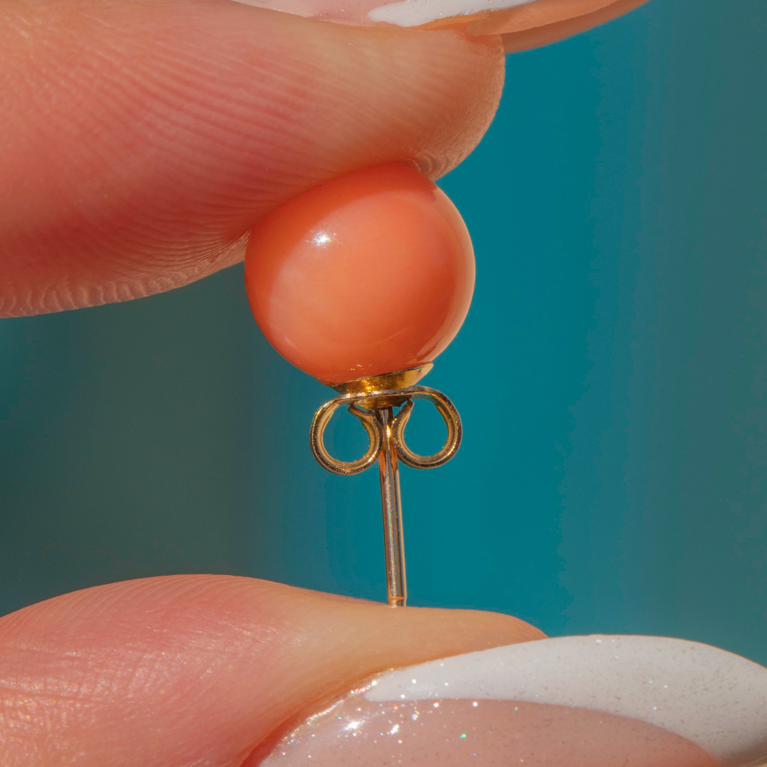 Add a pop of pastel to your lobes with these 9ct Gold Coral stud earrings!