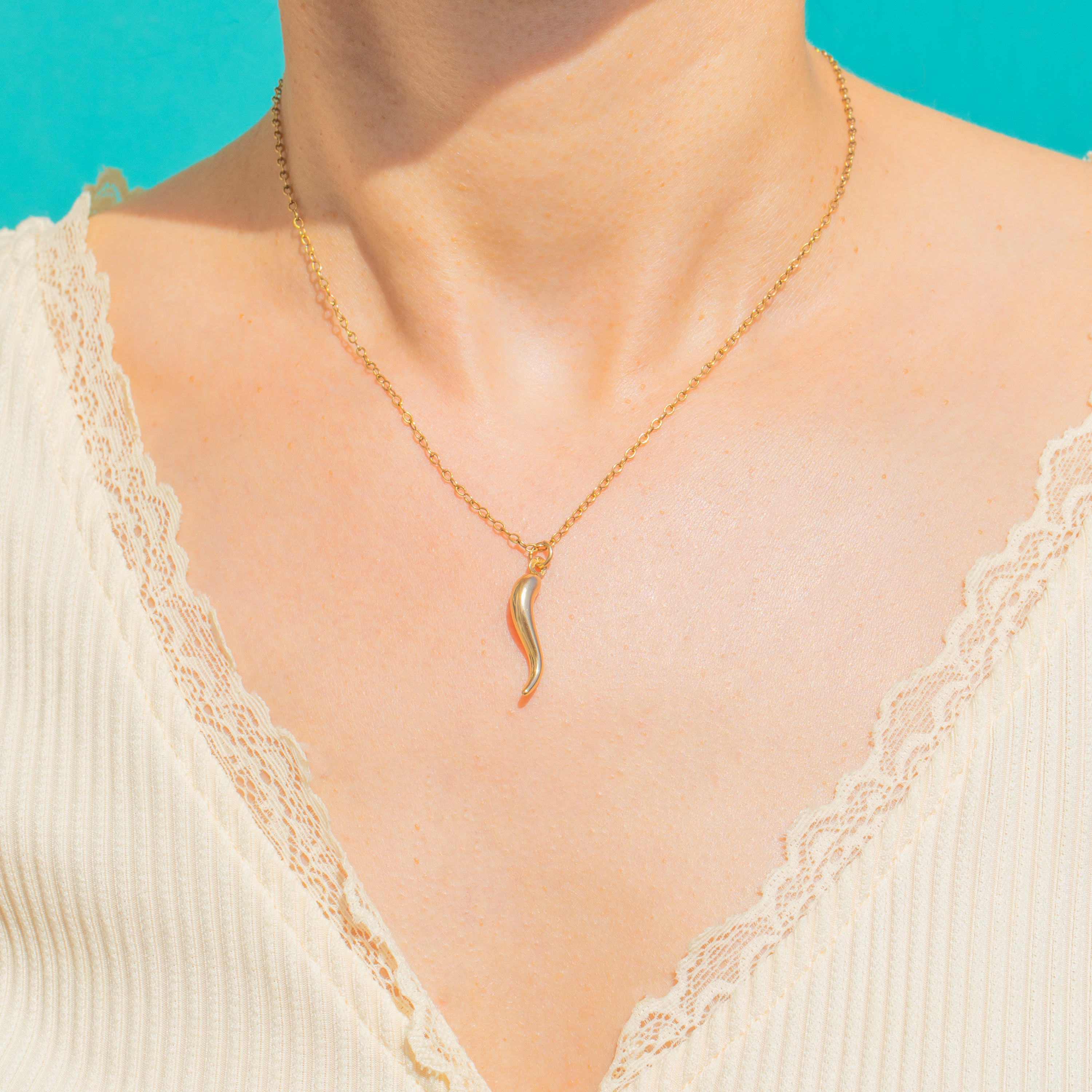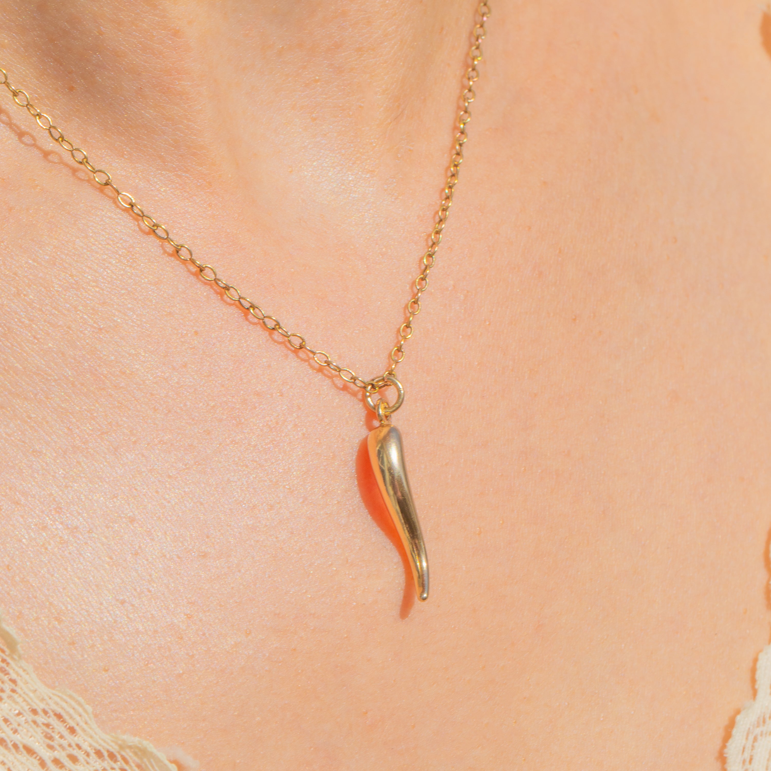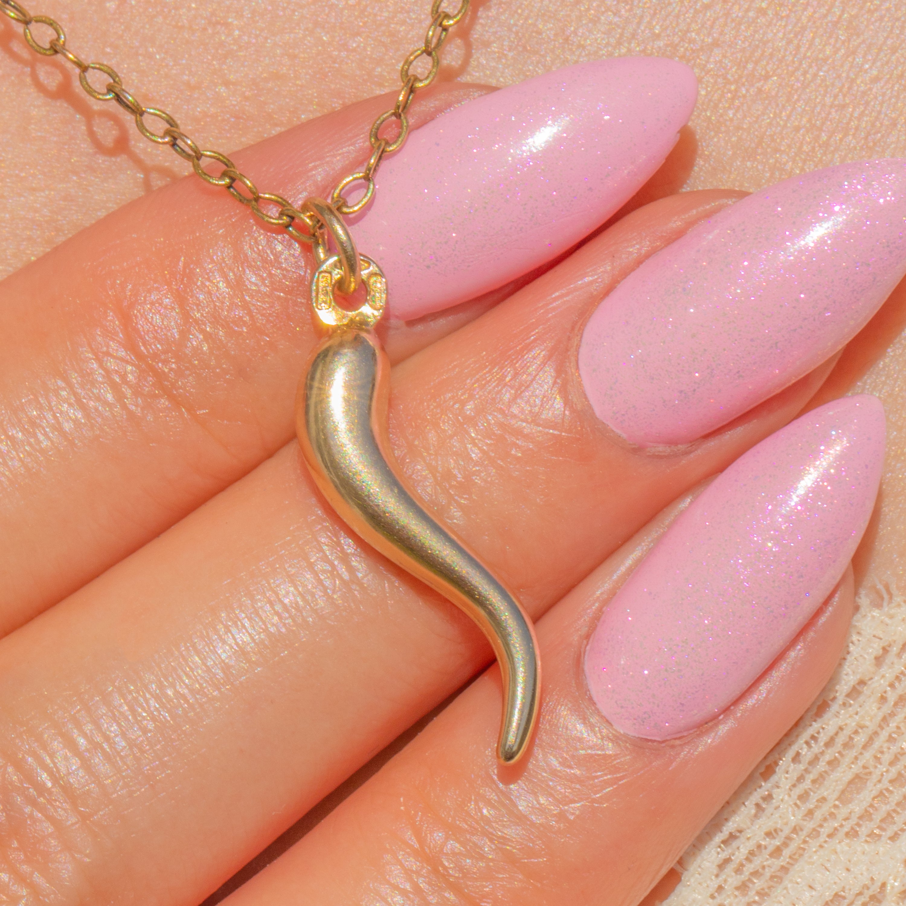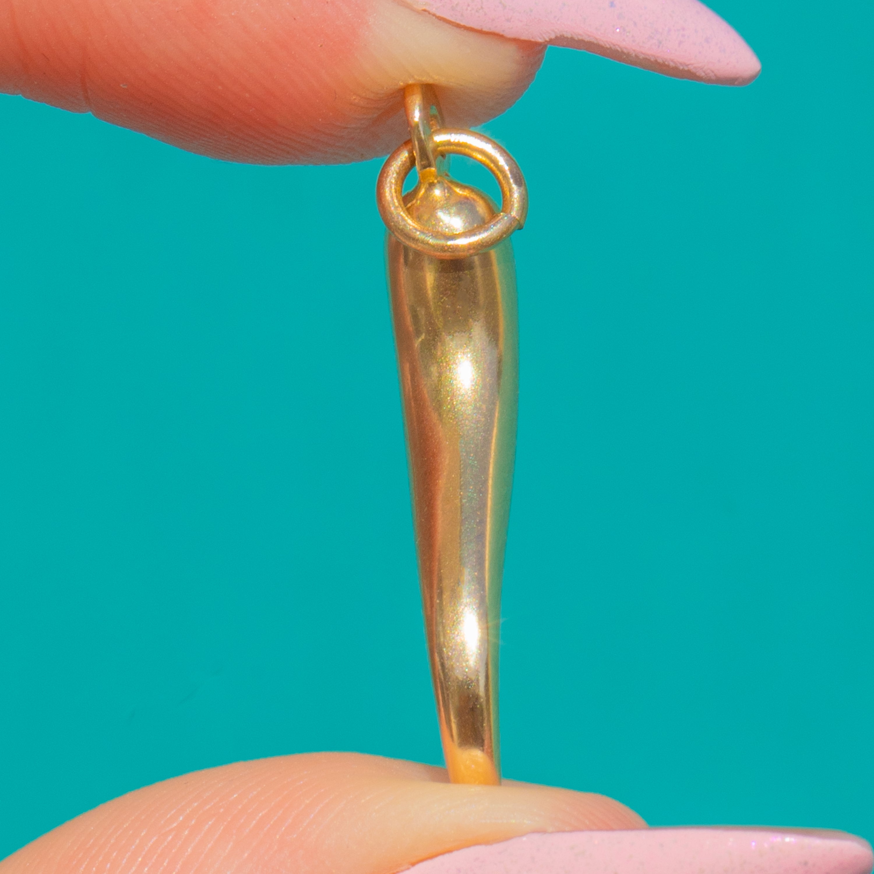 Sleek and sculptural, this 9ct Gold Cornicello charm distils the classic horn silhouette into a smooth, tapered drop with a softly domed cap. Its warm, polished glow and minimalist lines give a modern-classic feel that slips effortlessly into any jewellery rotation.
