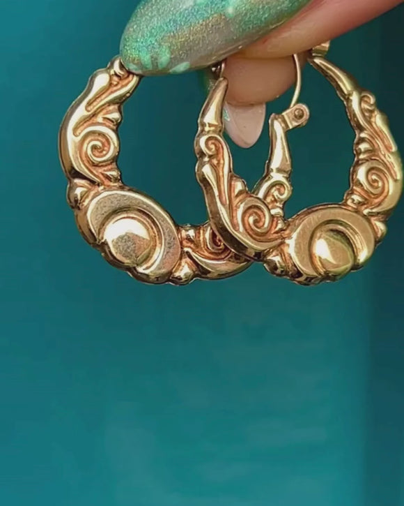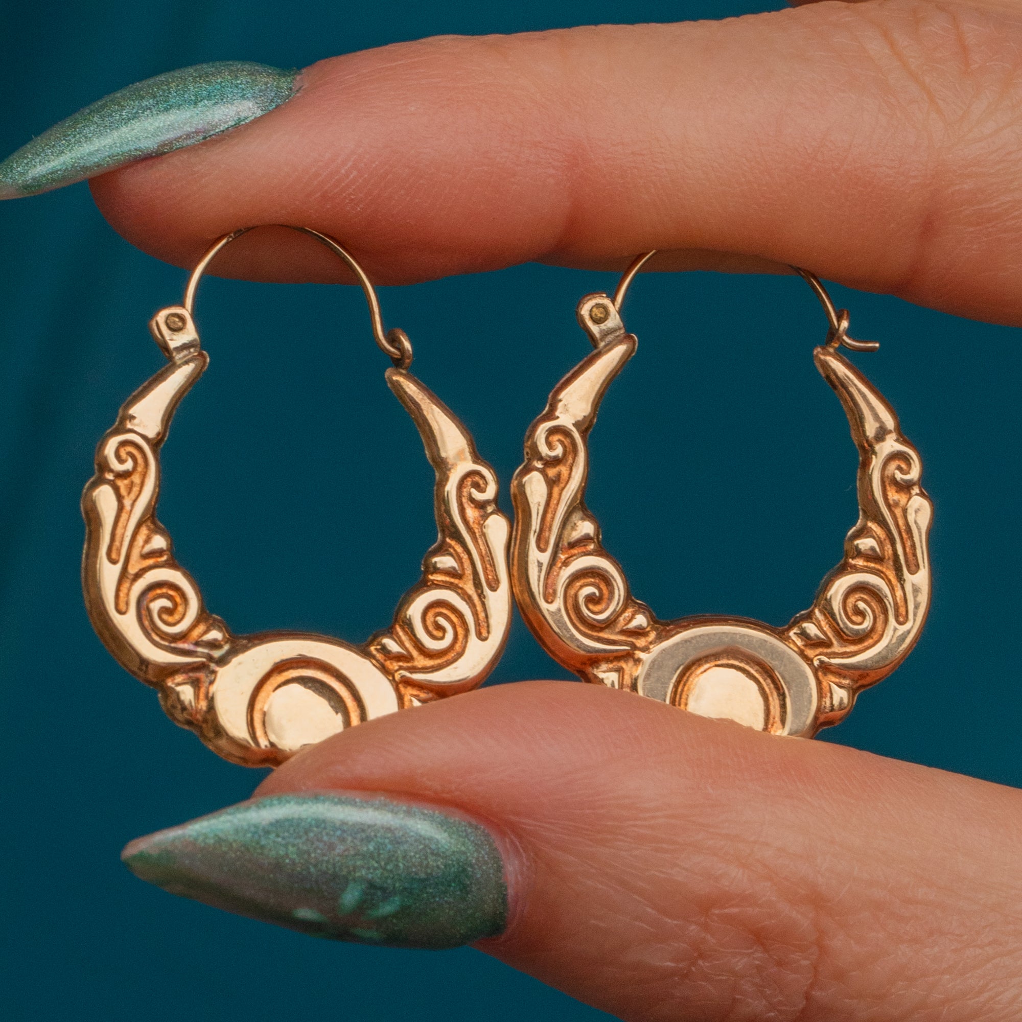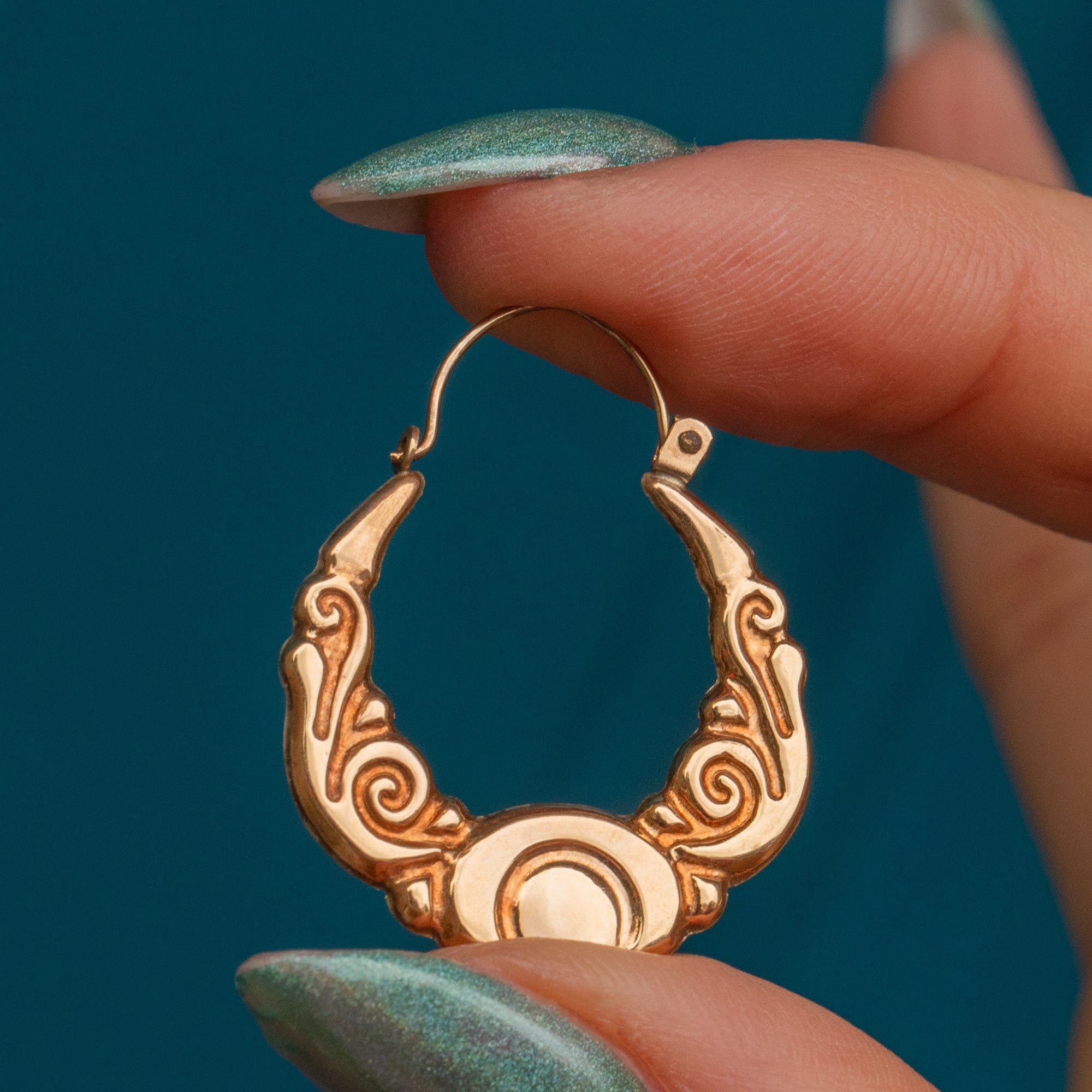 You will never tire of these 9ct Gold Creole hoop earrings! Hugging your ear lobes, ornate details span the entirety of these vintage earrings, crafted entirely from buttery 9ct Gold.