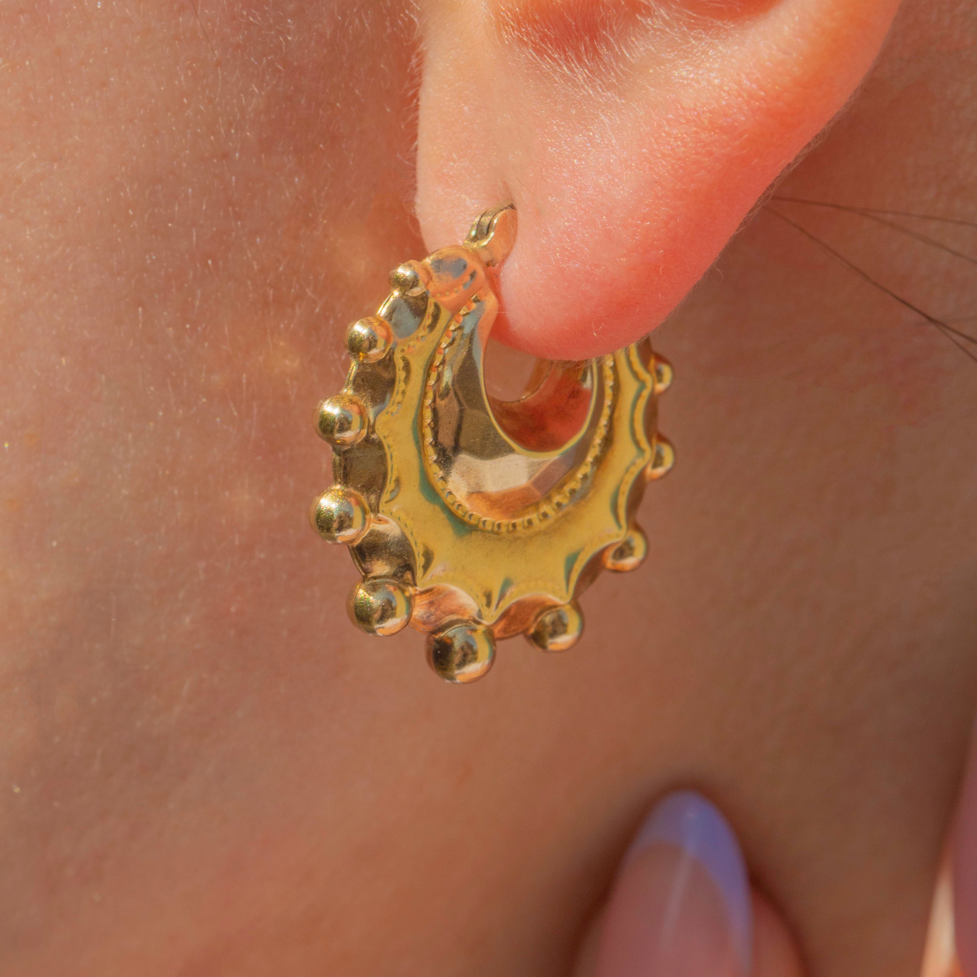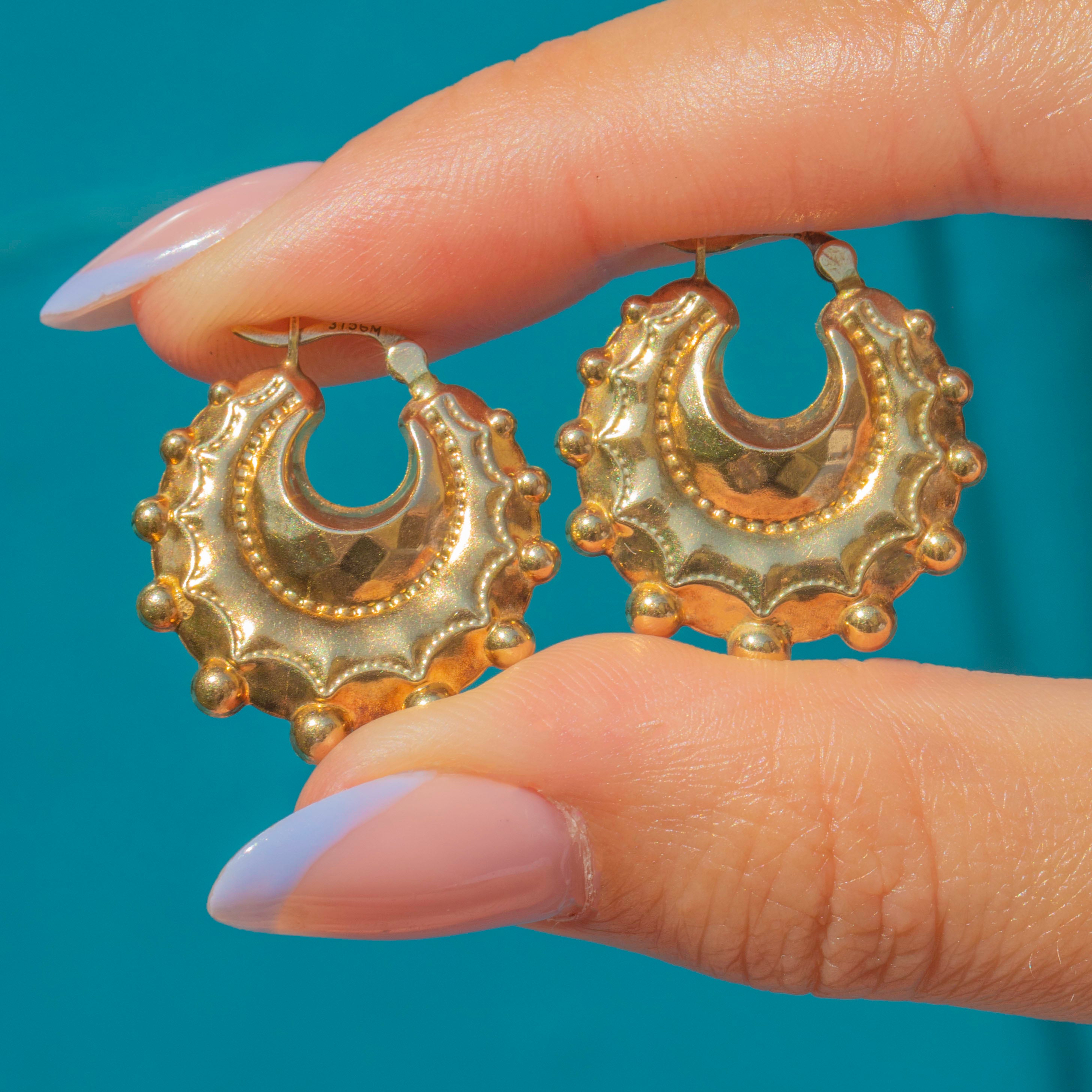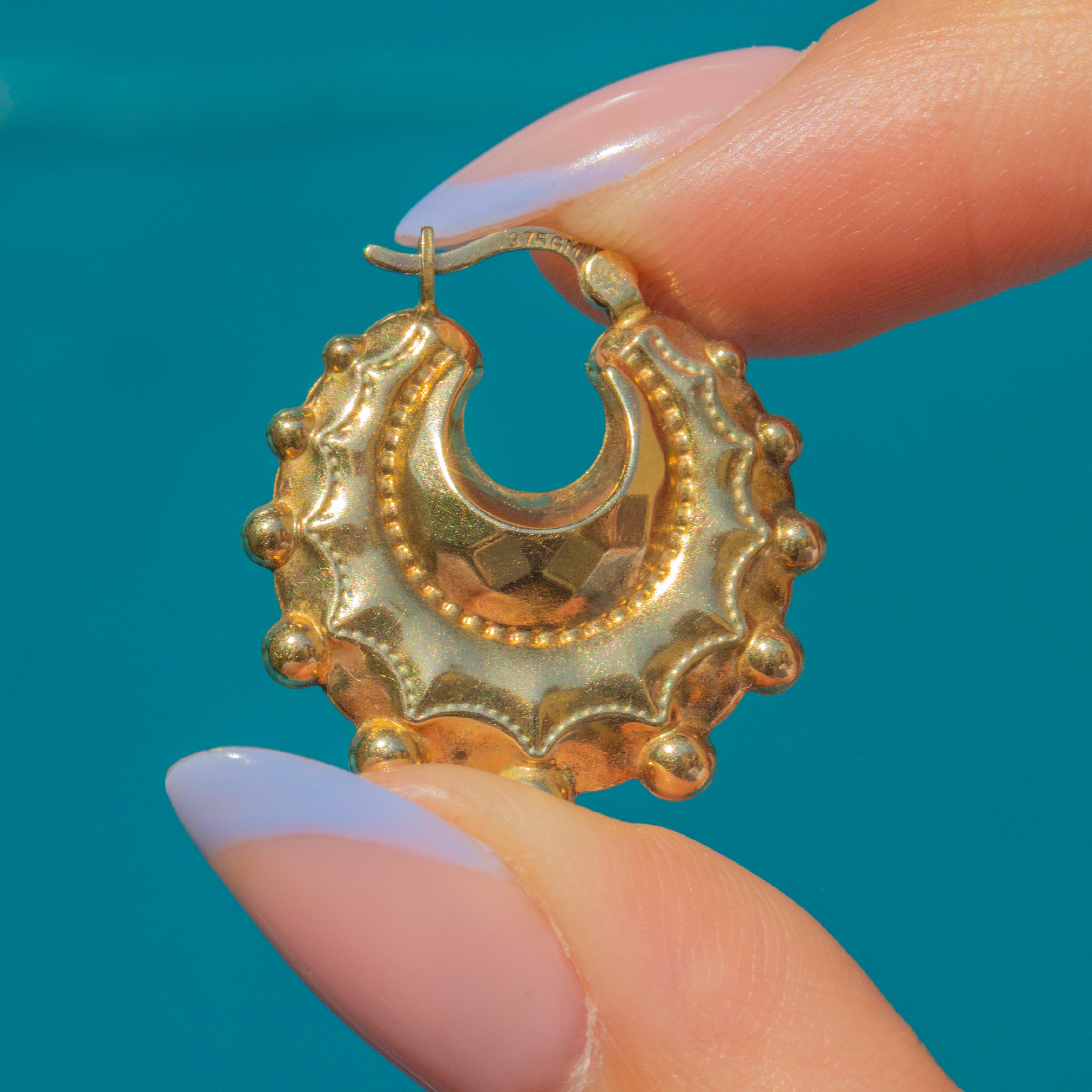 Crafted from rich 9ct Gold, these Creole hoop earrings are bold and eye-catching, with their unique design sure to impress. These vintage hoops will look gorgeous in the ear, and can be worn every day without a pull on the ear!
