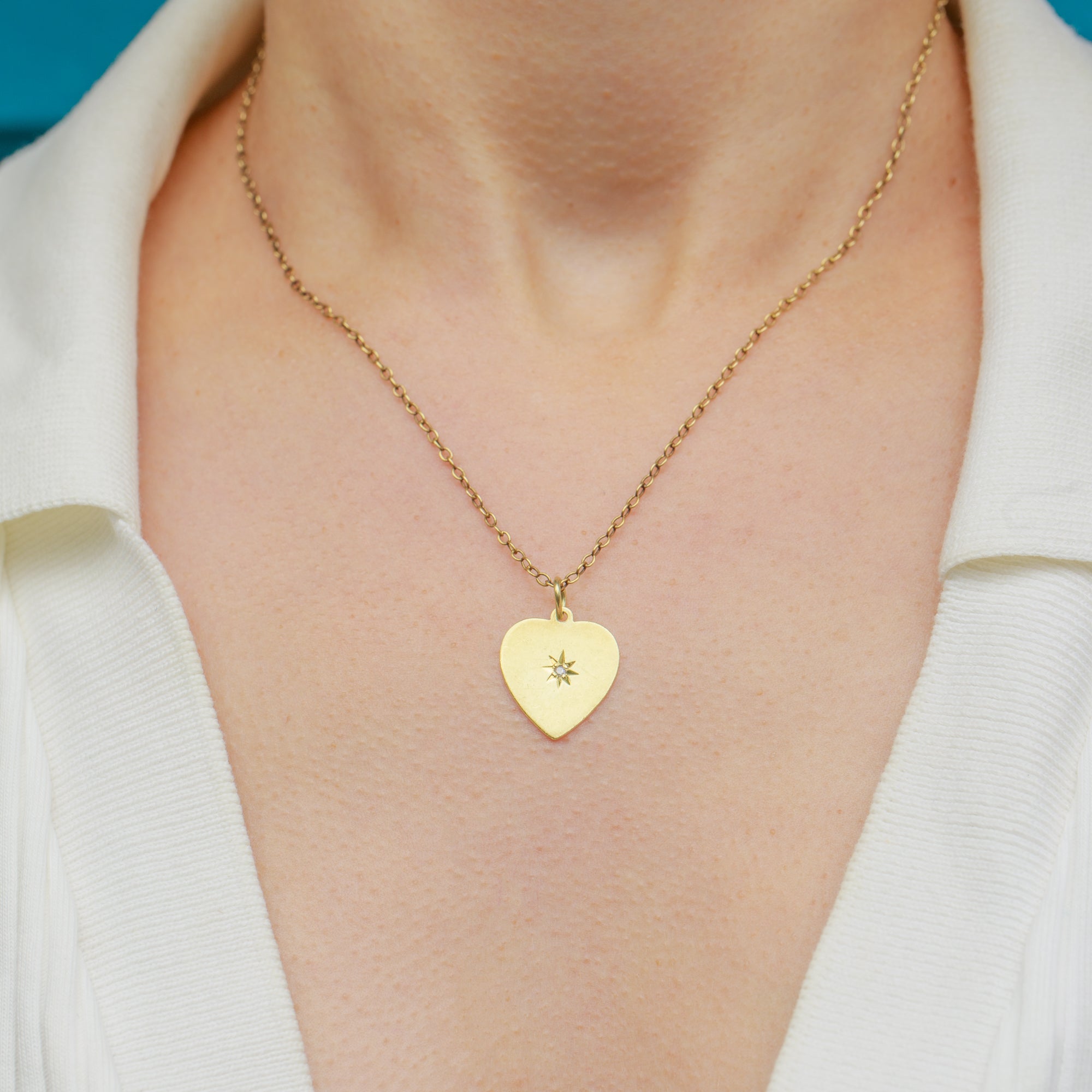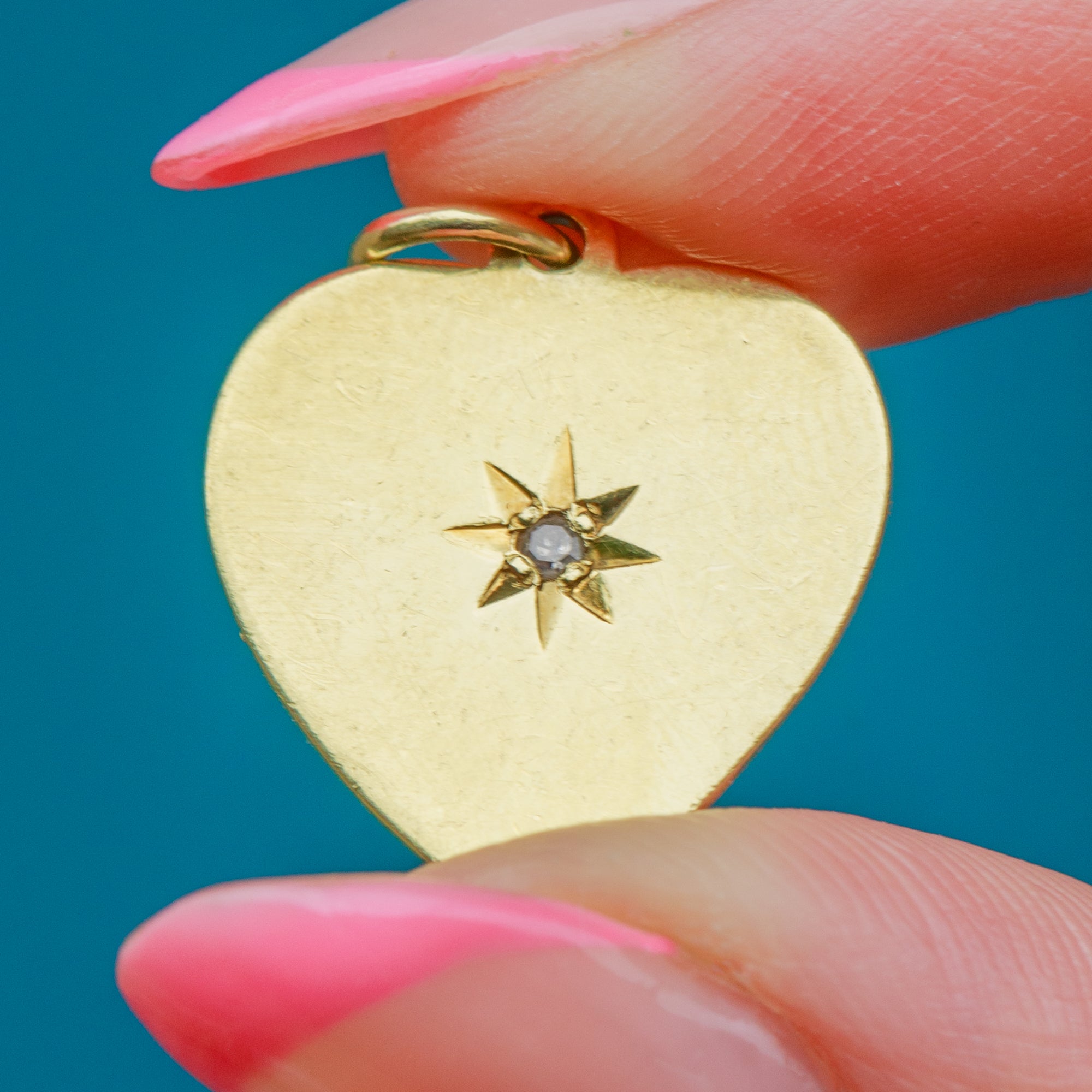 The perfect piece to add a touch of elegance and romance to your décolletage, this 9ct Gold heart pendant displays a scintillating rose-cut Diamond in her centre, set within a bold star setting.