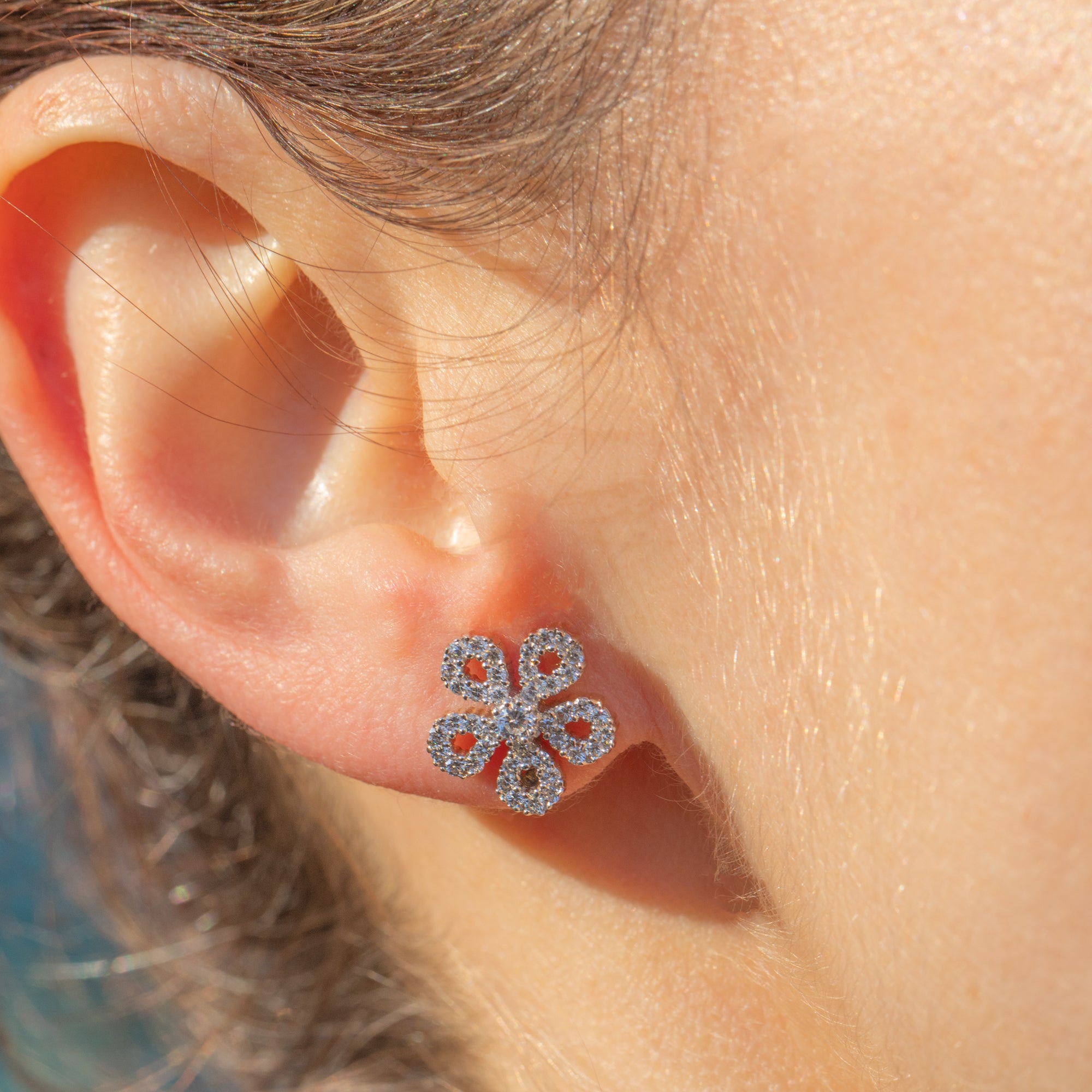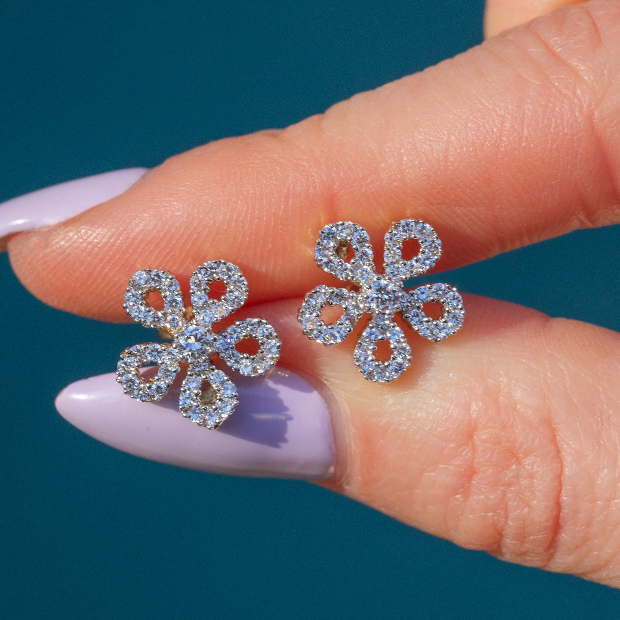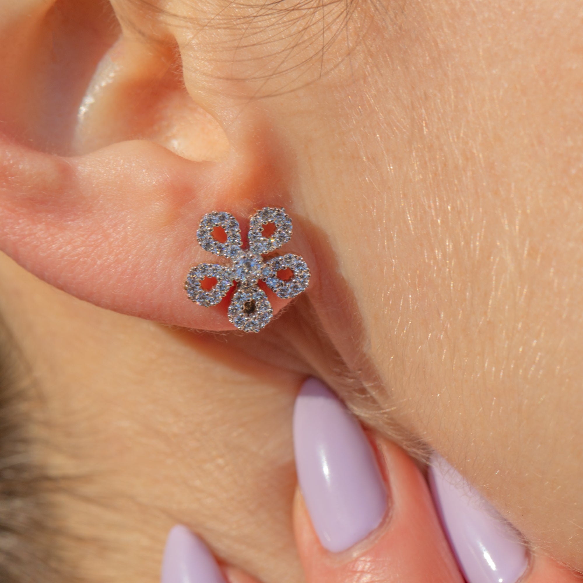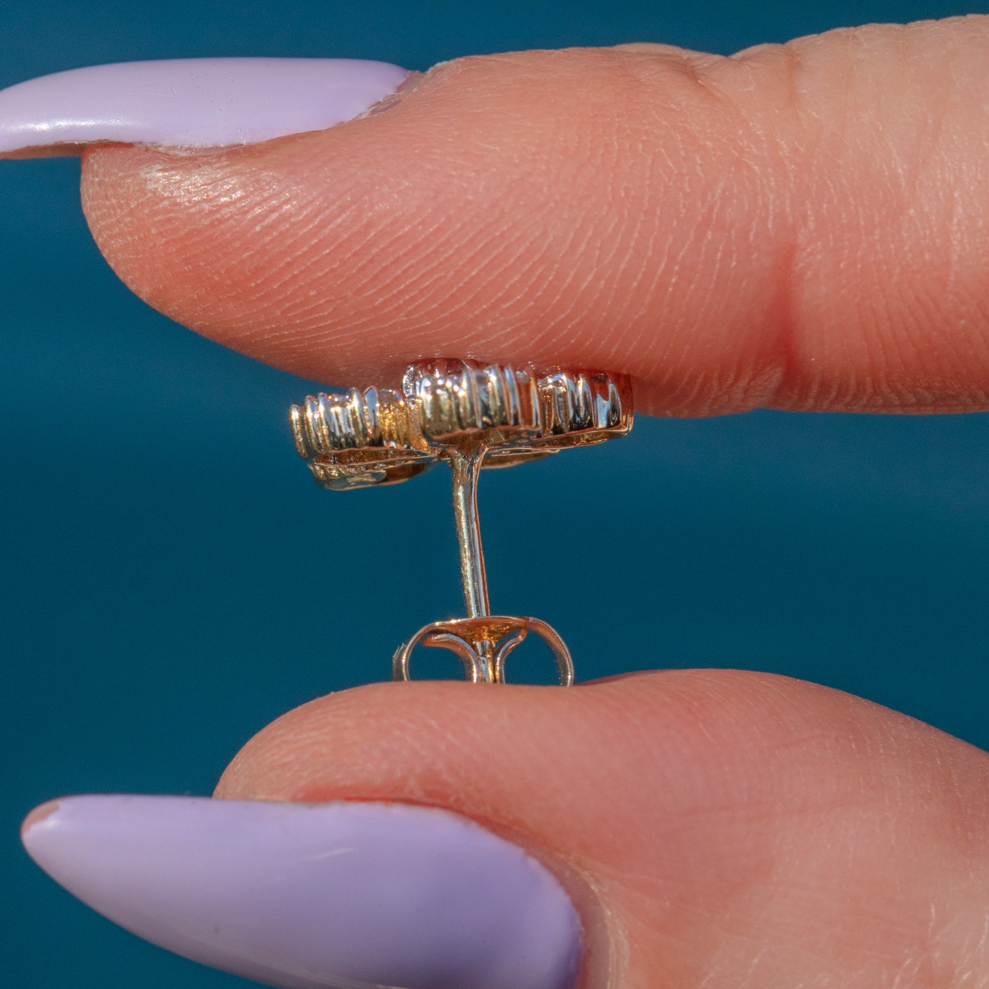 These 9ct Gold flower stud earrings will bestow your lobes with endless sparkle! Meticulously set with an abundance of scintillating Cubic Zirconia in a floral formation, these Gold studs will bring a feminine flare to your outfit.