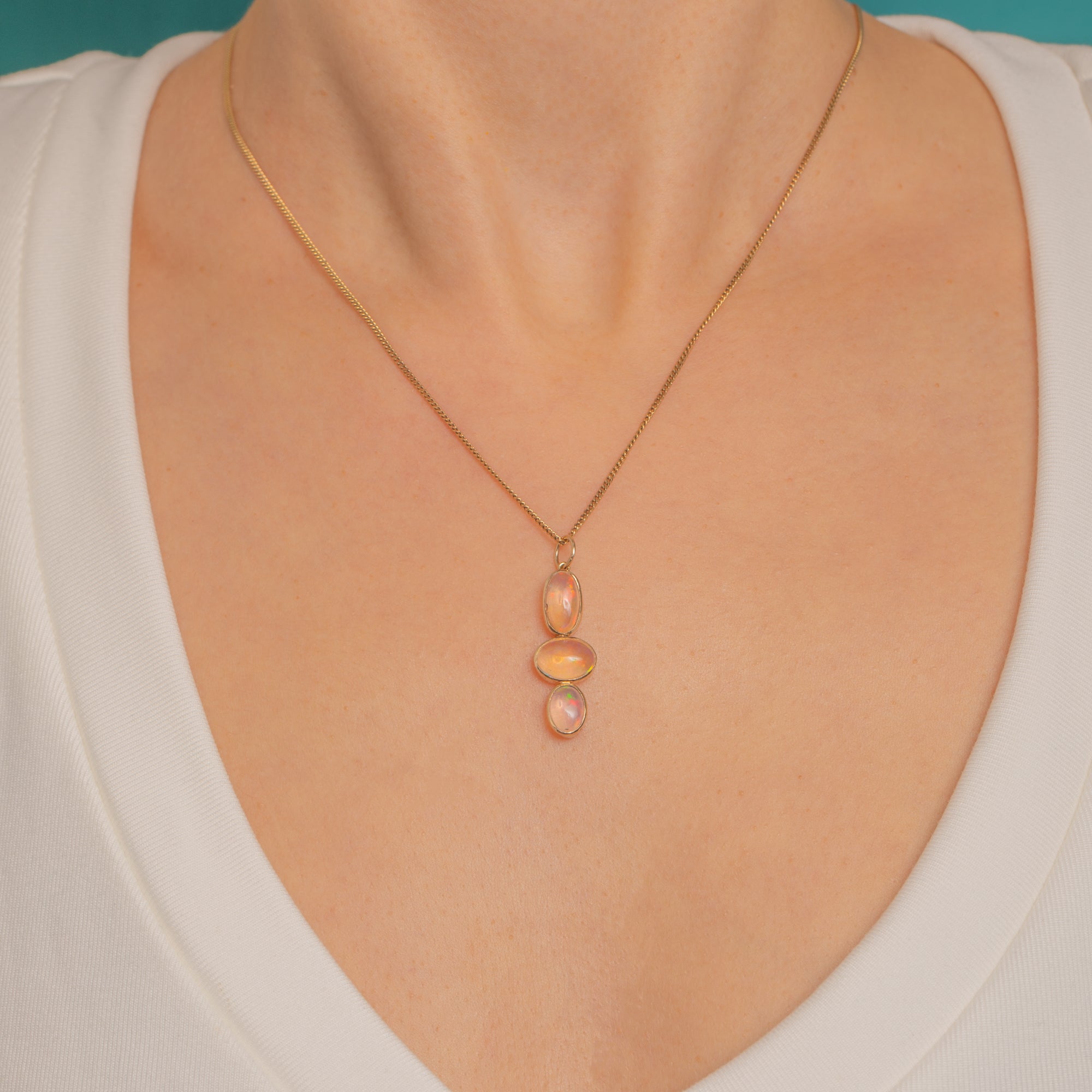 Victorian elegance distilled to its purest form, this minimalist pendant is beautifully proportioned and effortlessly wearable. The clean bezels and simple jump ring keep the focus on those hypnotic Jelly Opals.