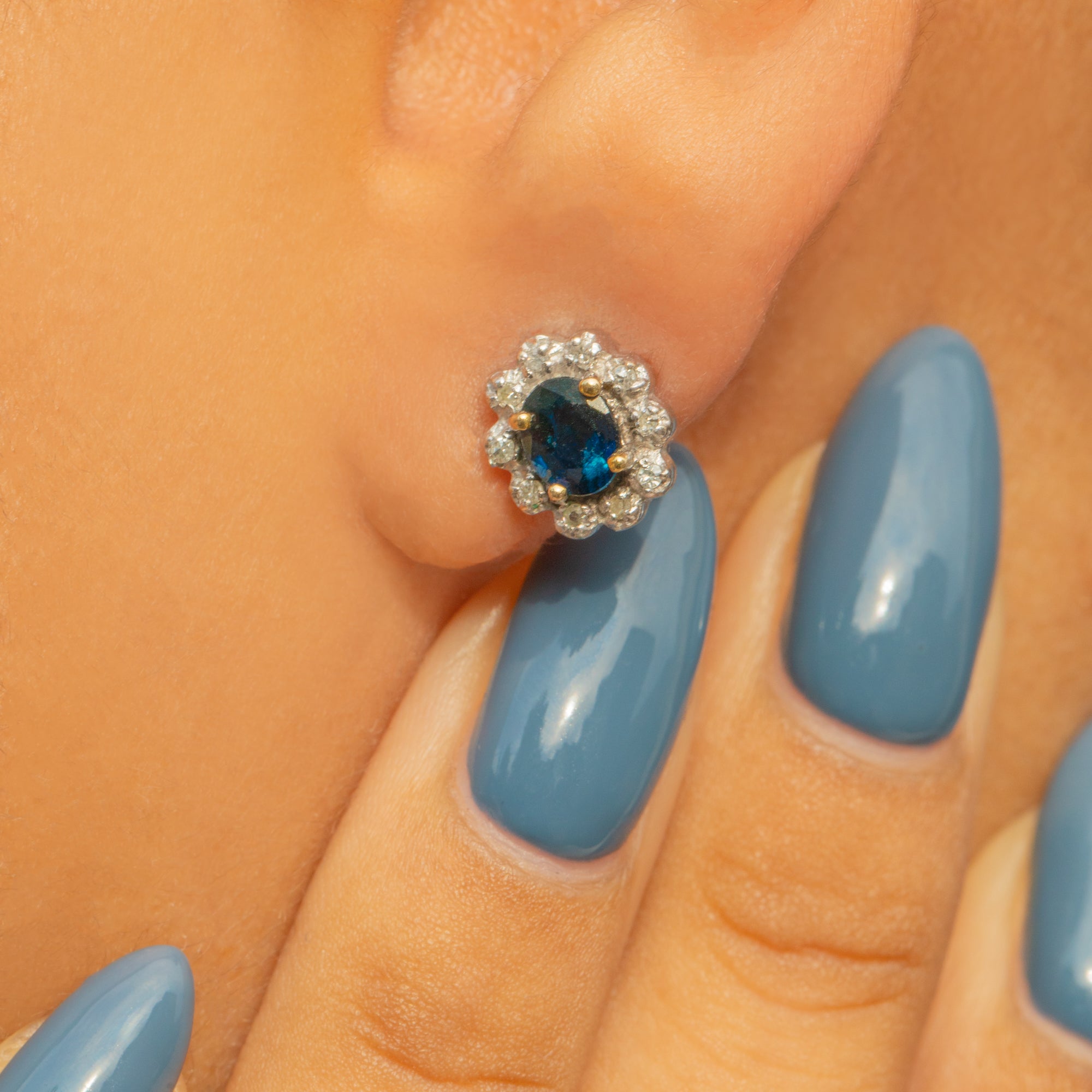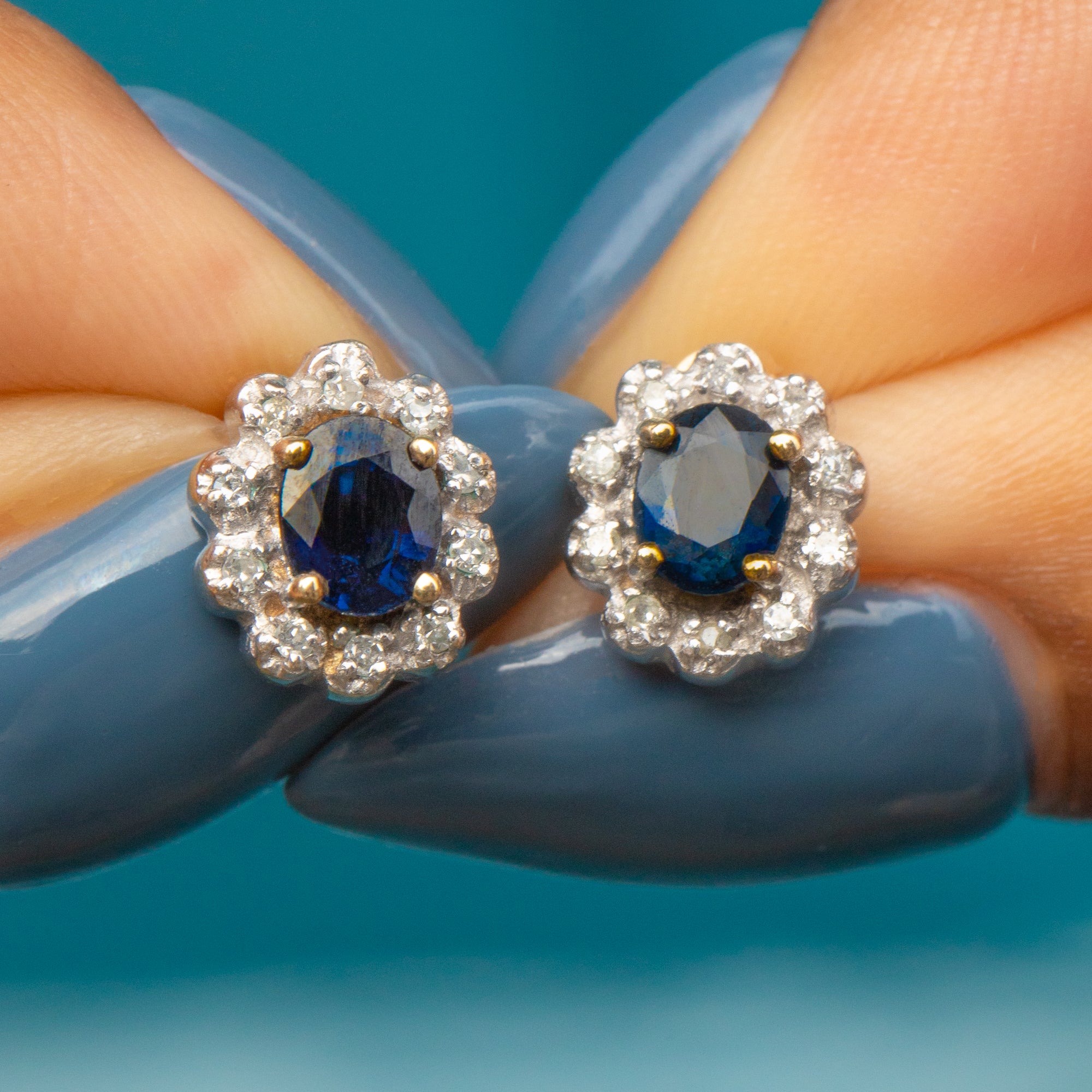 2 x Natural Sapphires are 5mm long x 4mm wide, weighing approx. 0.50ct combined.
