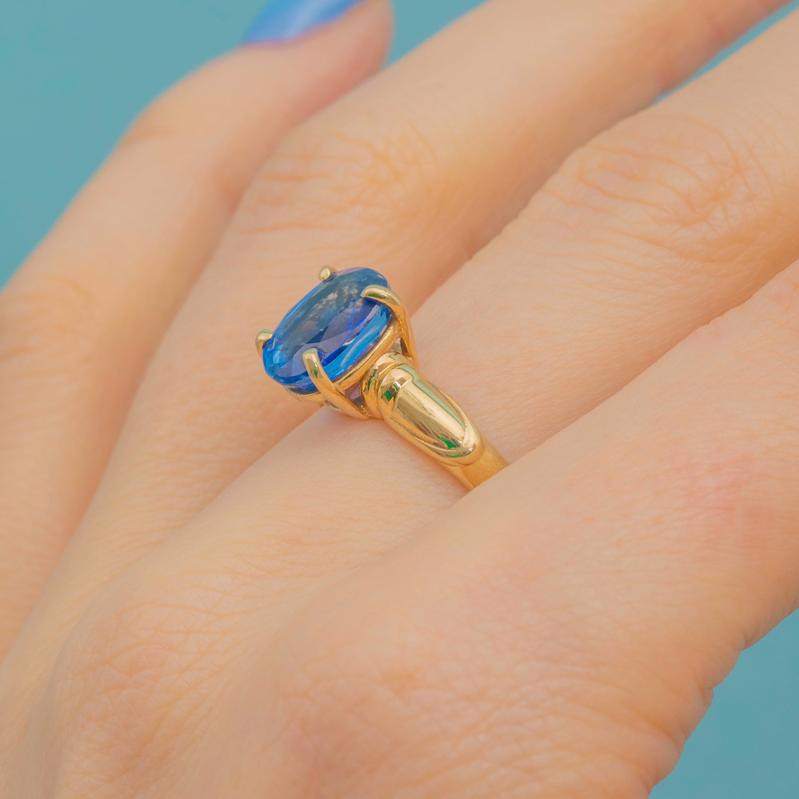 This impressive 9ct Gold natural Sapphire solitaire ring will instantly bring the wow factor to your hand! The vibrant 2.50ct Sapphire is natural, with no signs of heat treatment, and glimmers with eye-catching cerulean-blue hues from its crisp-cut facets.