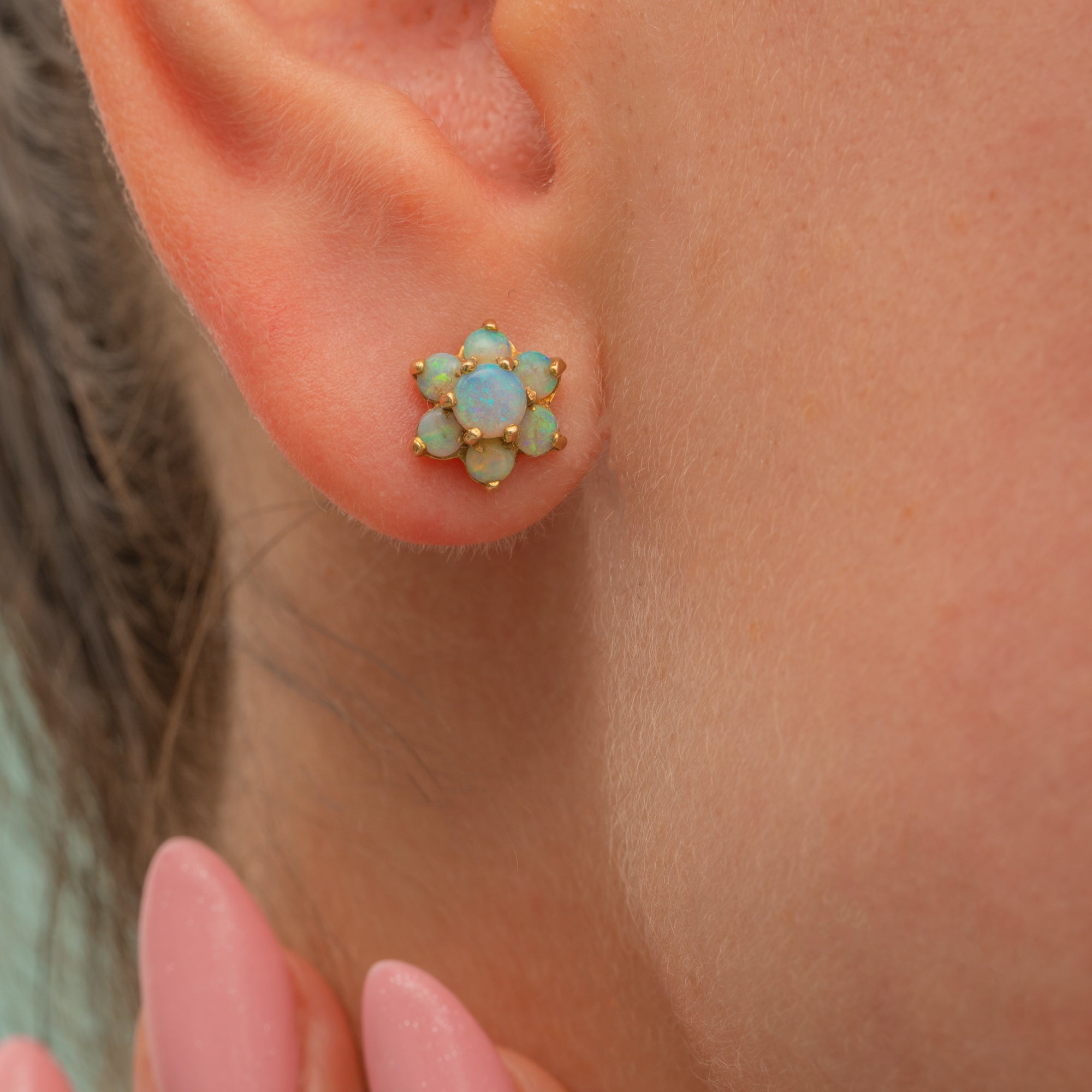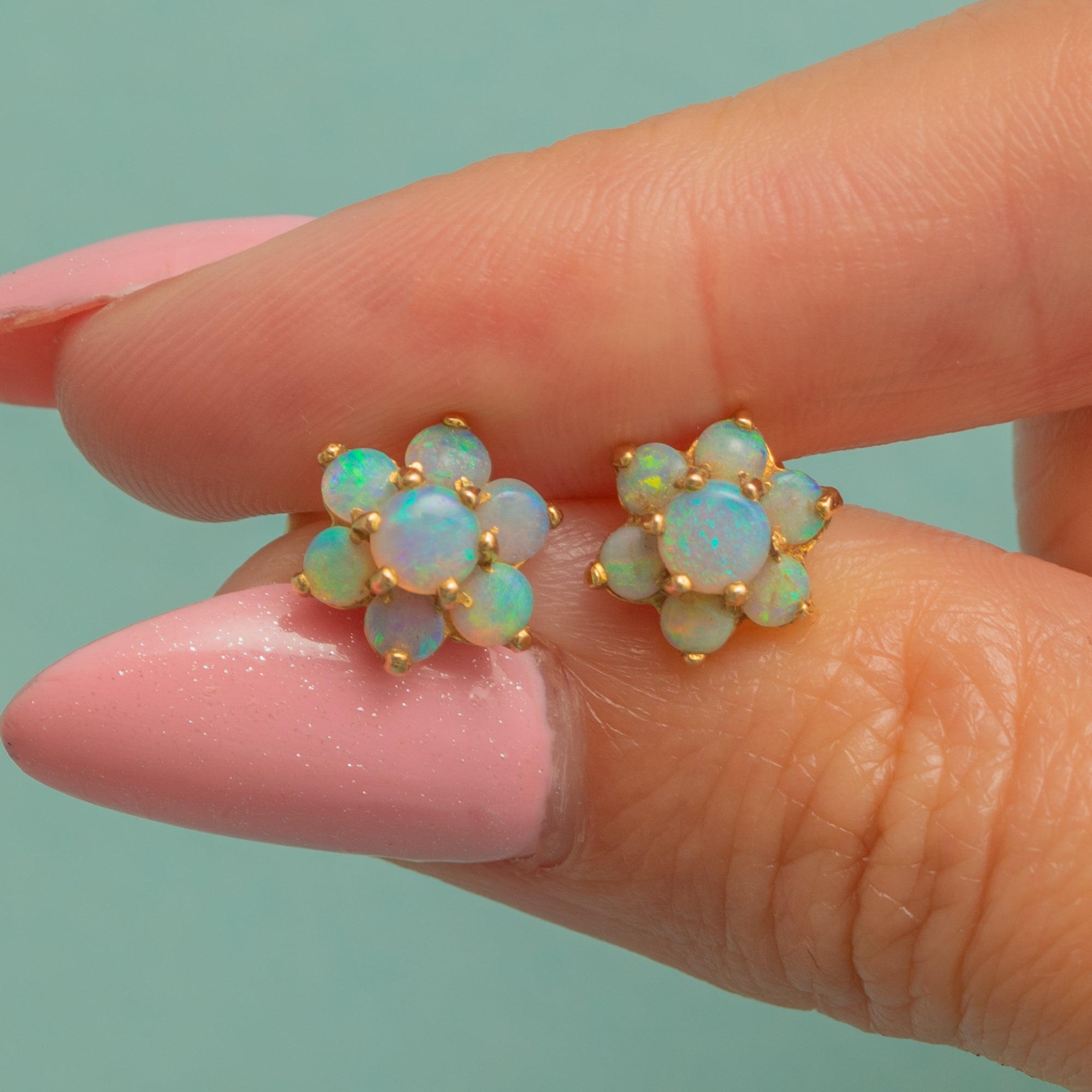 These 9ct Gold Opal flower cluster stud earrings embody springtime delight!