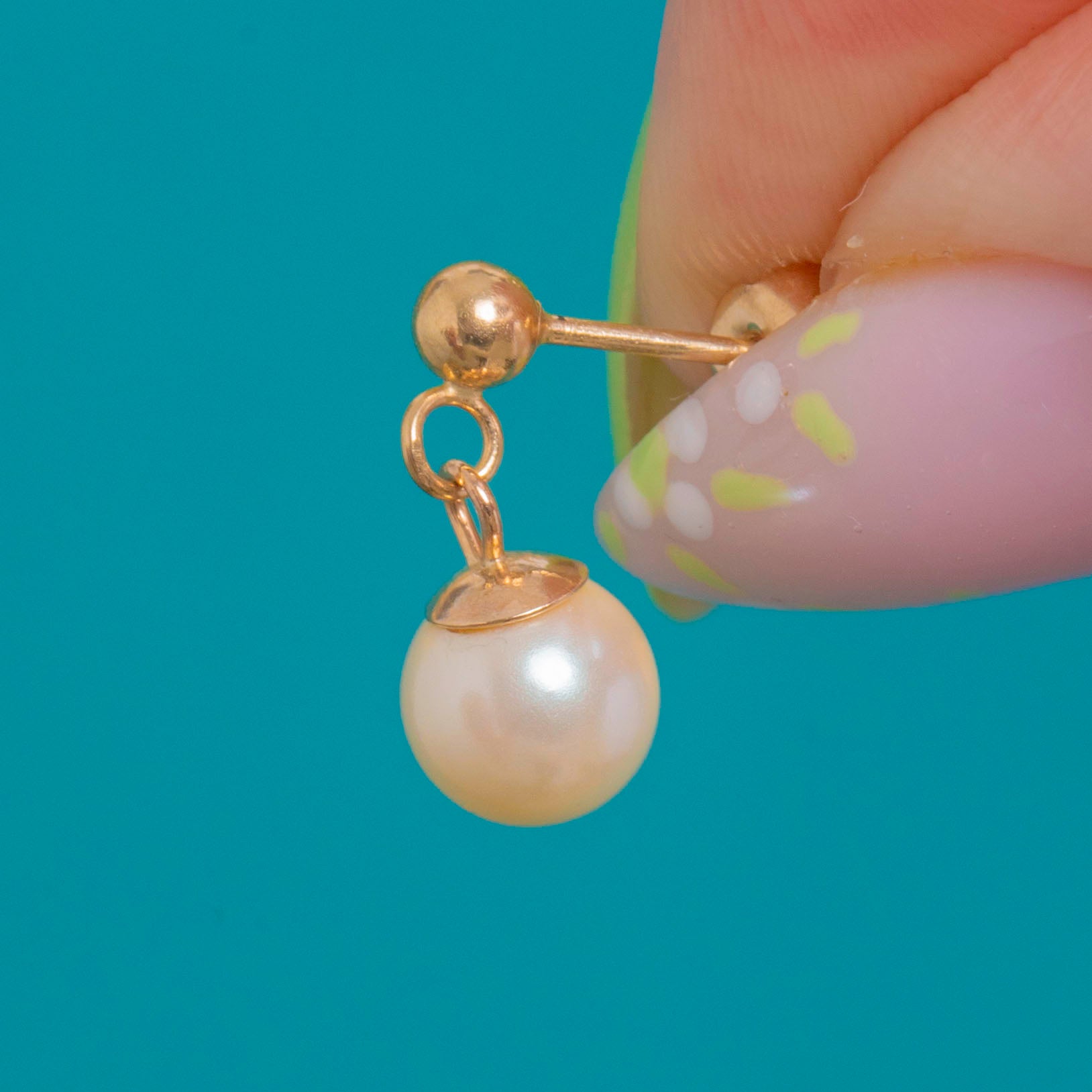 Understated and elegant, these Vintage Pearl drop studs are crafted in 9ct Gold with a classic ball stud that suspends a single creamy-white Pearl. A short articulated link lends subtle movement, while a neat domed cap finishes each Pearl with finesse.