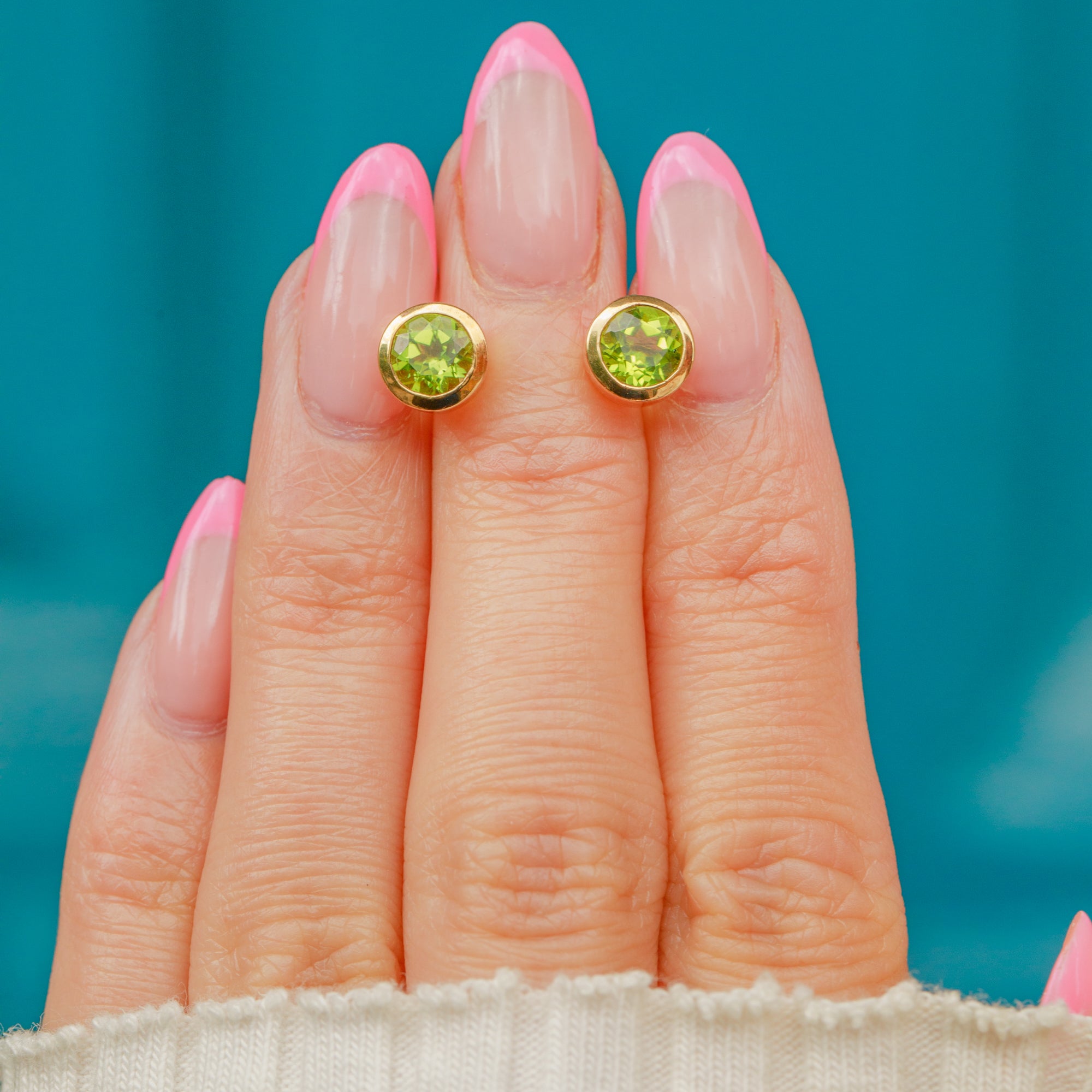 Peridots are 4.5mm in diameter, weighing approx. 1.40ct combined.