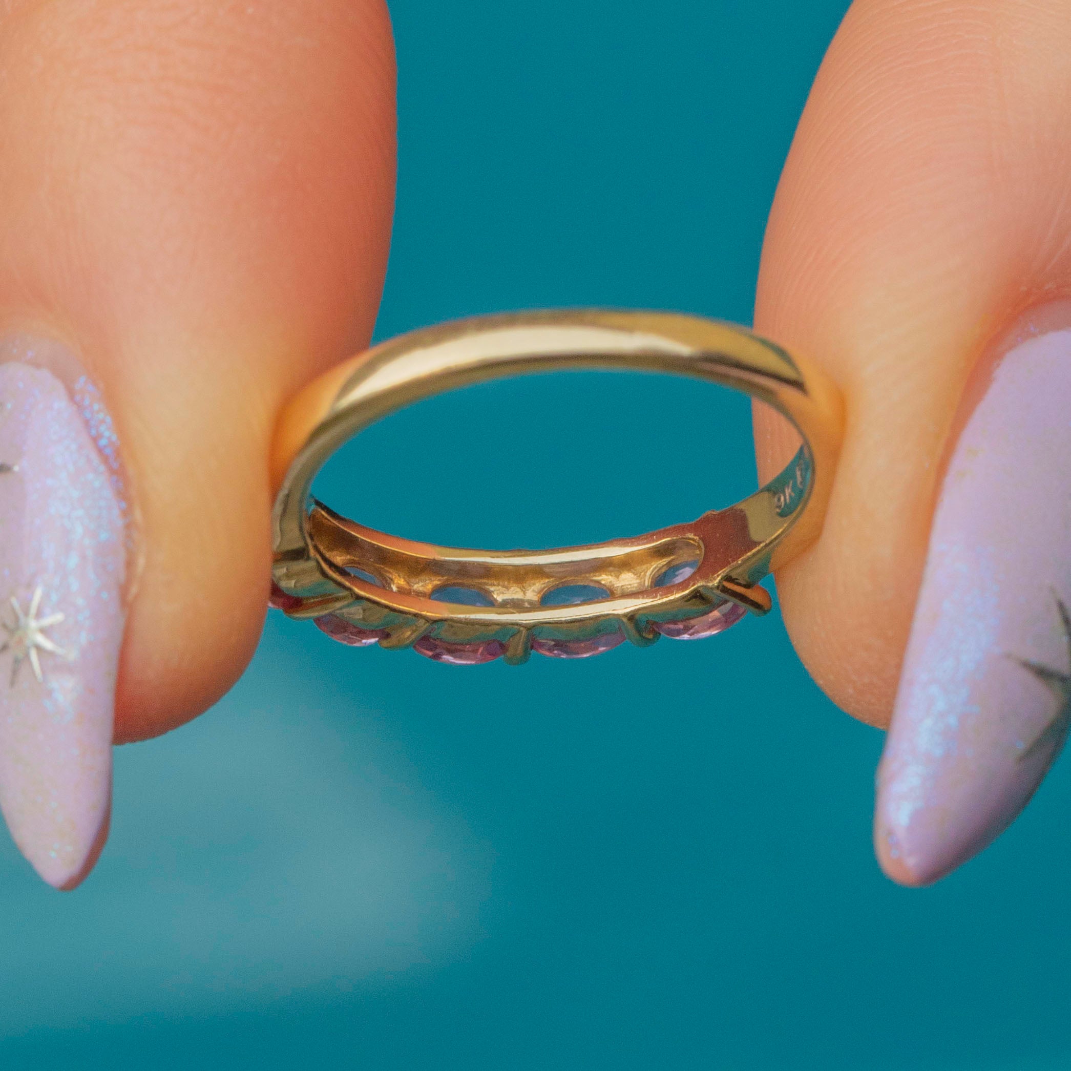 Add a pop of pastel to your collection with this 9ct Gold pink Sapphire eternity ring!