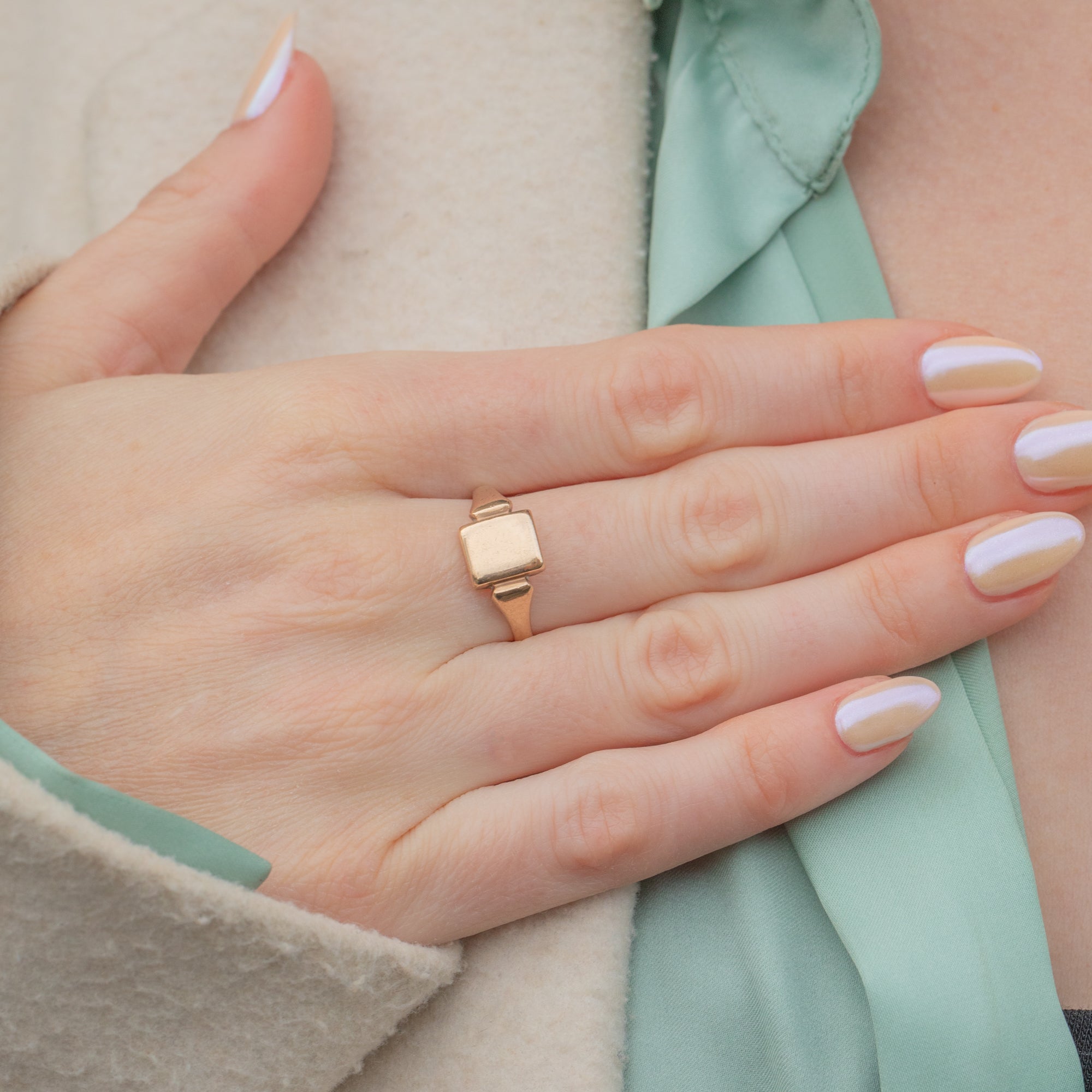 This Art Deco 9ct Gold square signet ring will incorporate seamlessly into your everyday jewellery wardrobe.