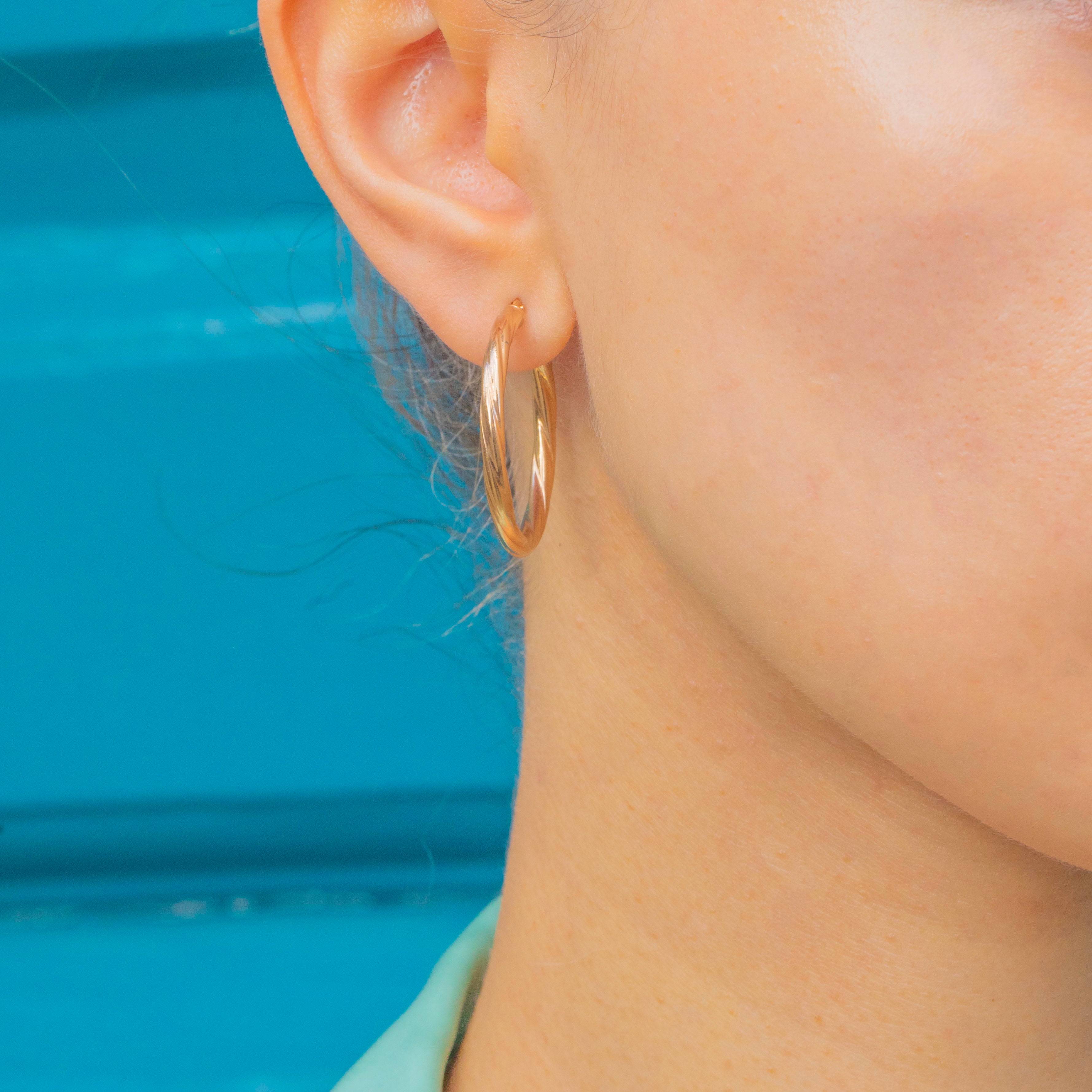 EXCELLENT: Hoops are bright and well-polished with no dings, scratches, or dents visible. The twisted Gold design is crisp, and the posts and clasps close securely.