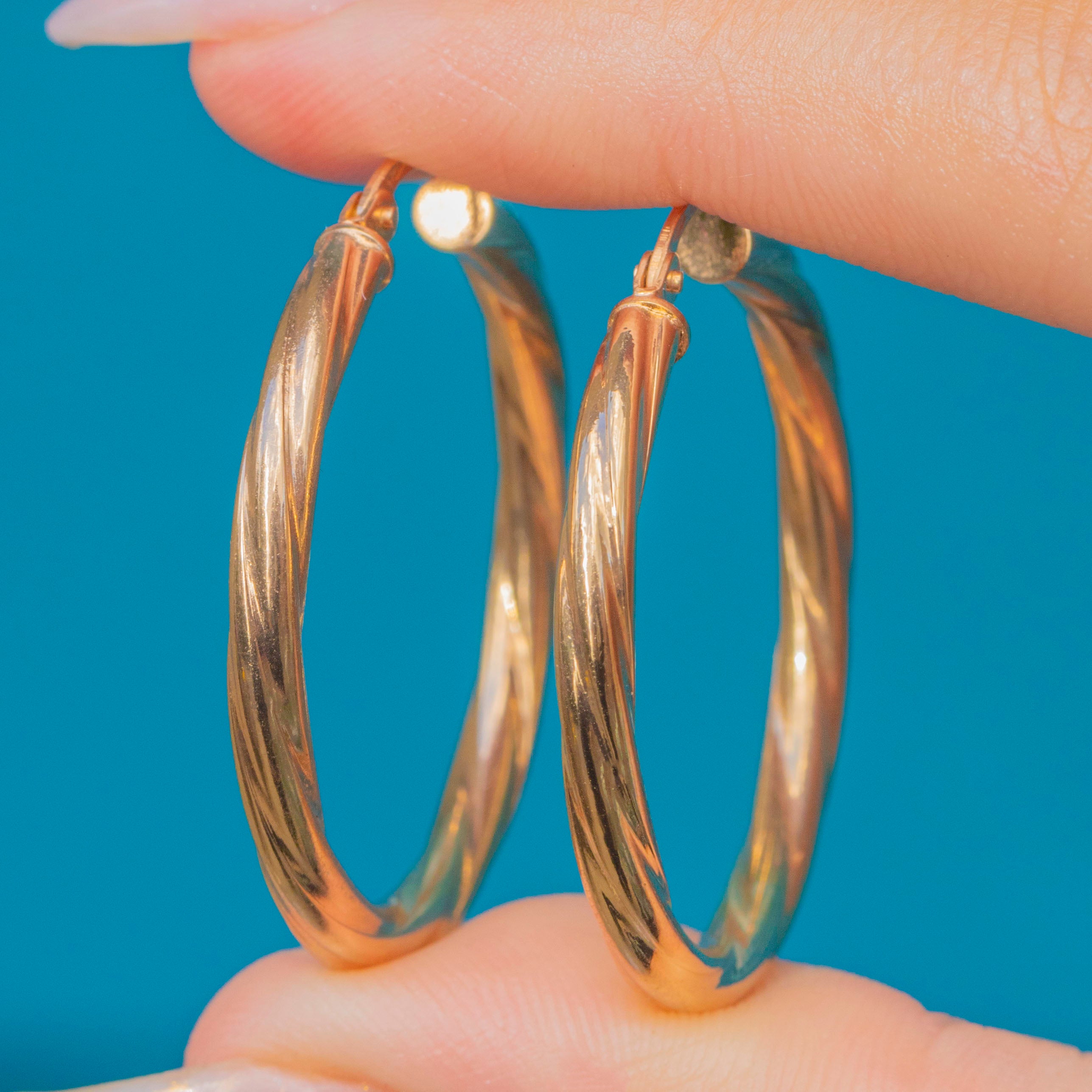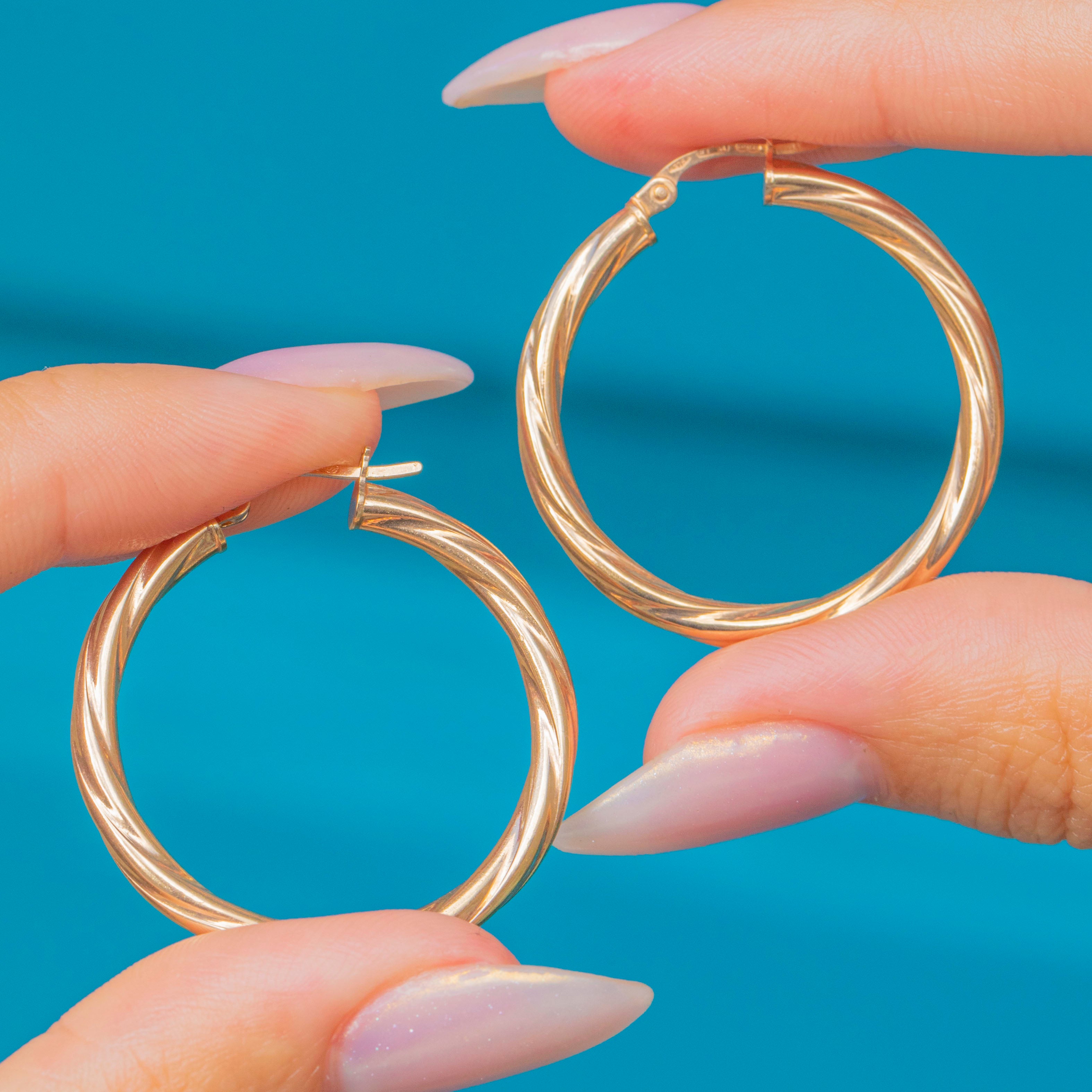 A timeless pair of Vintage hoop earrings, crafted in 9ct Gold with an elegant twisted design. Measuring 30mm across, these hoops have just the right amount of presence—sleek enough for everyday wear, yet refined for more polished looks.