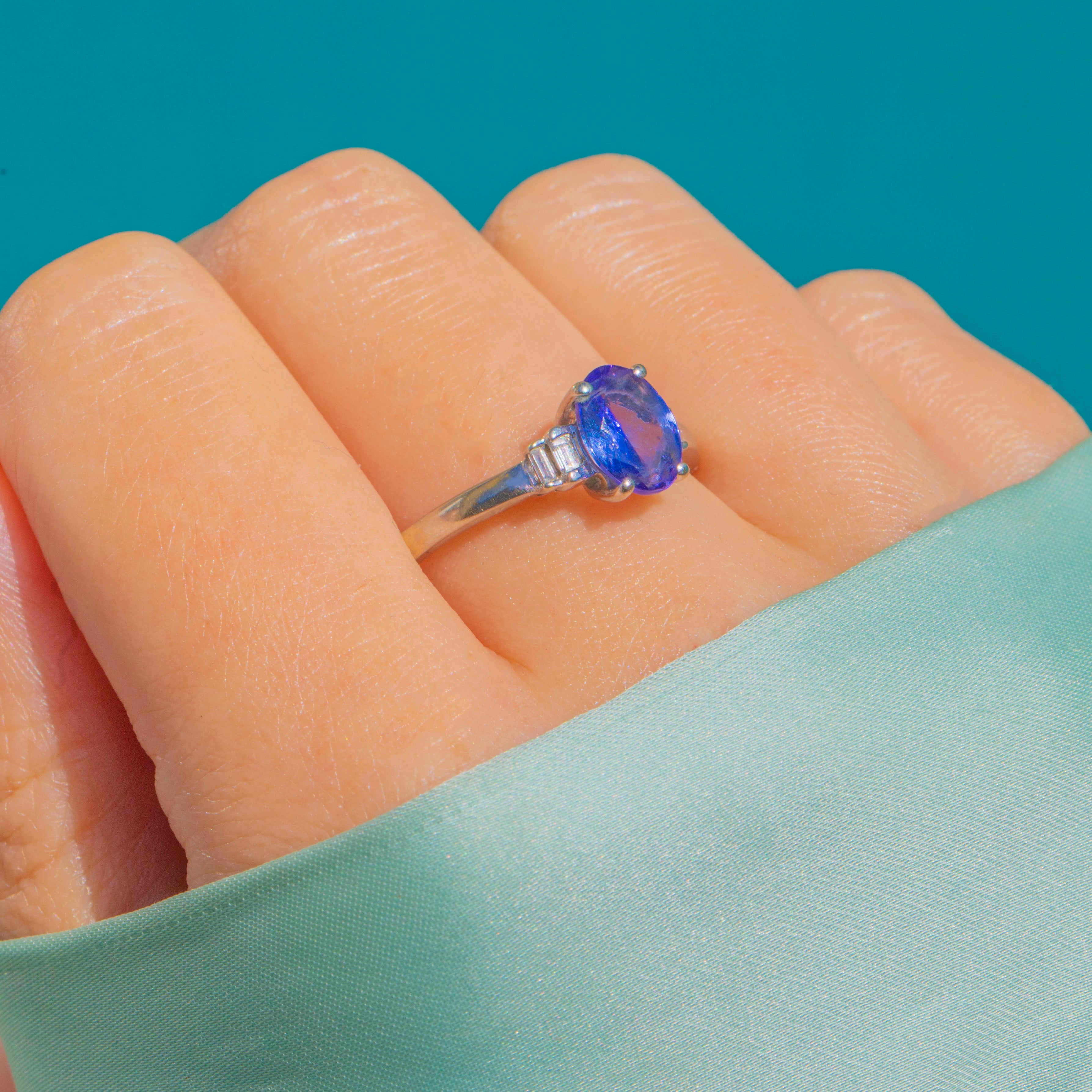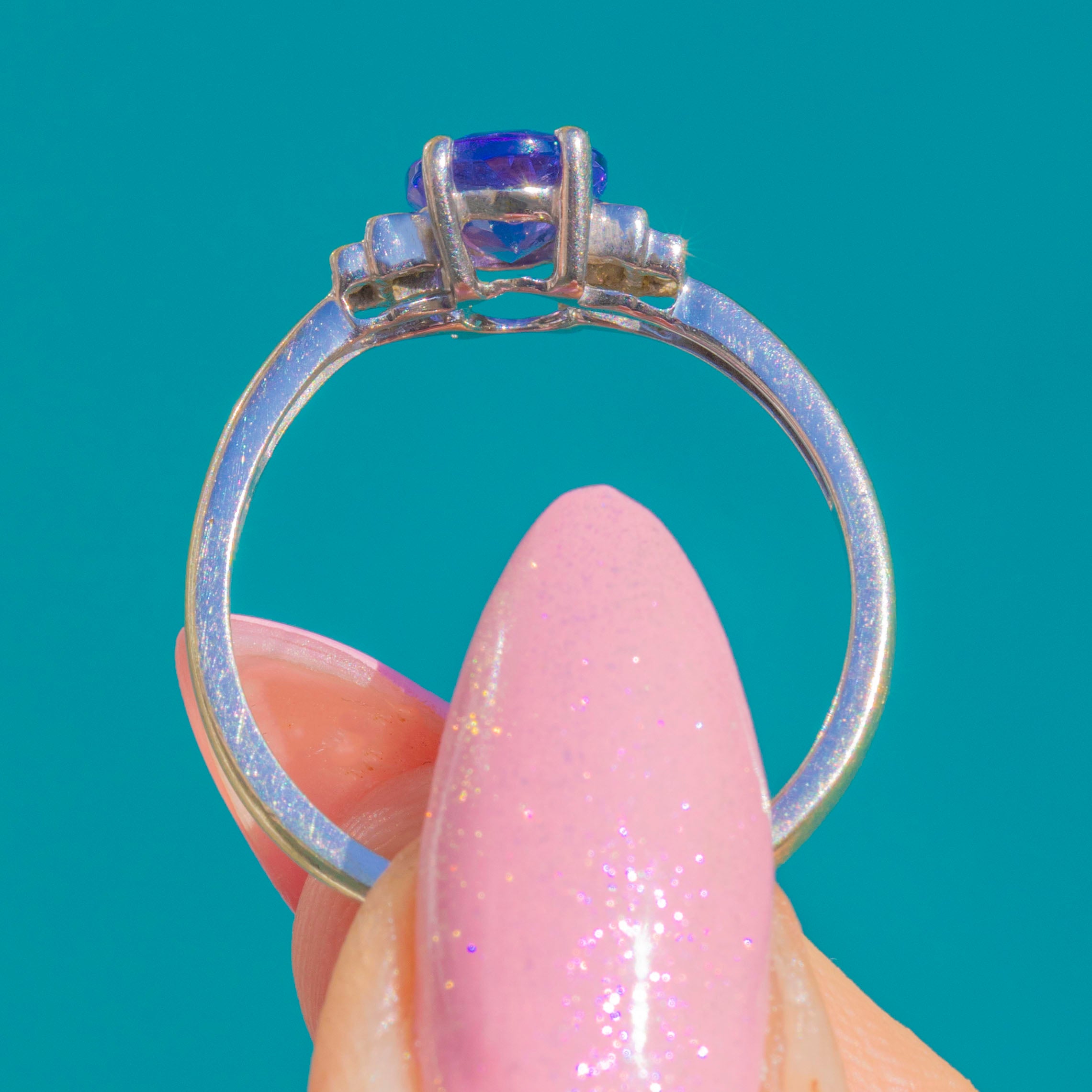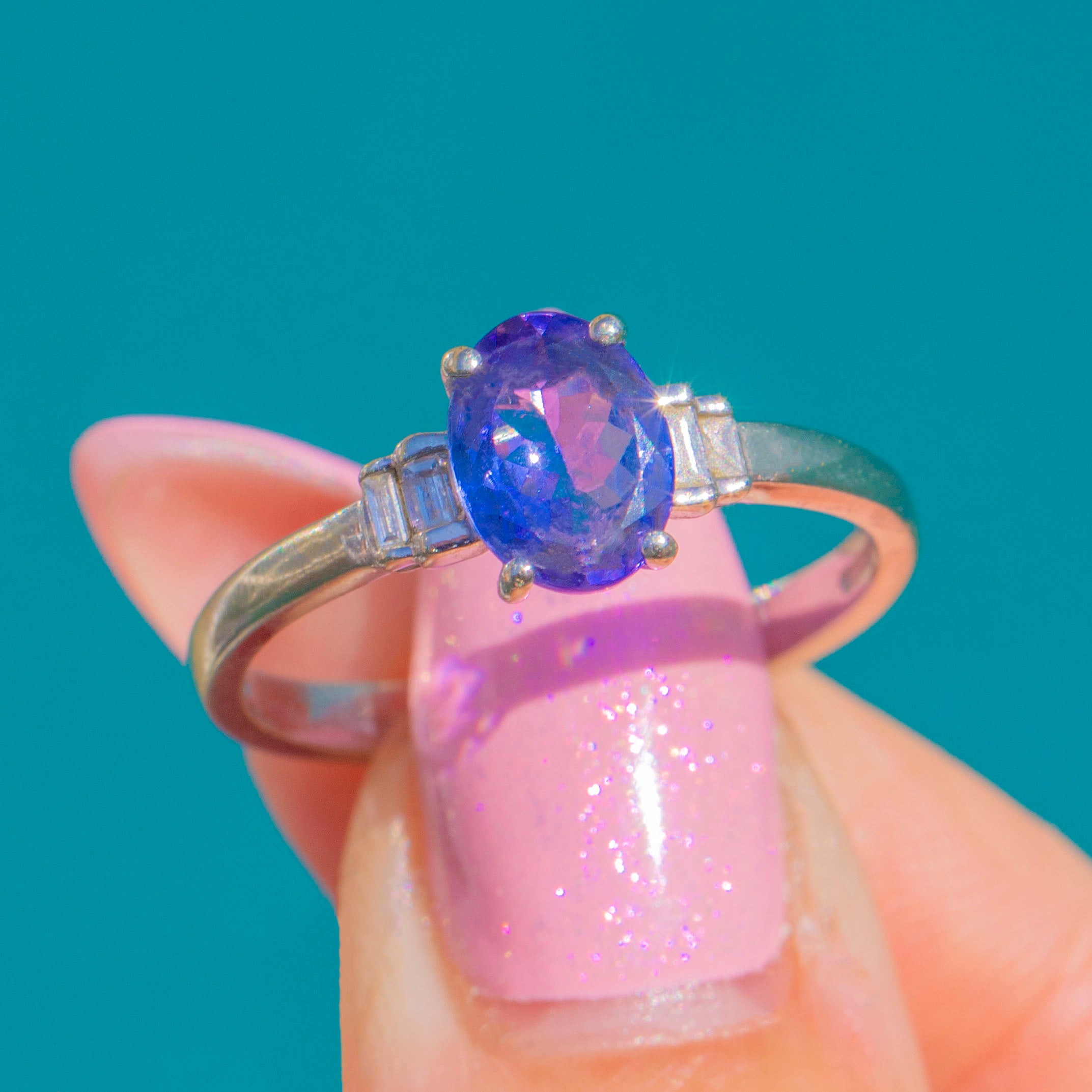9ct White Gold 1.20ct Tanzanite Ring Baguette Diamond Shoulders