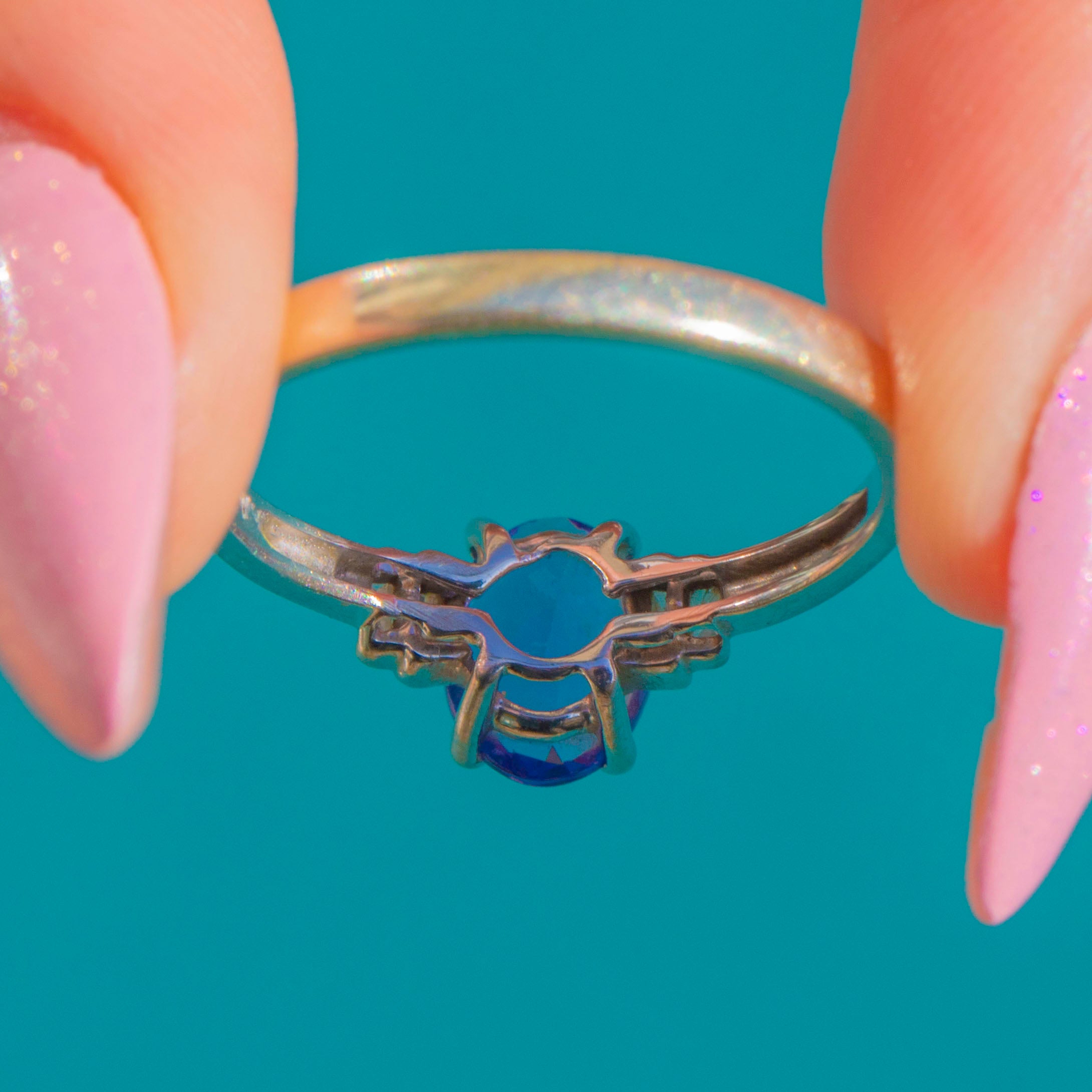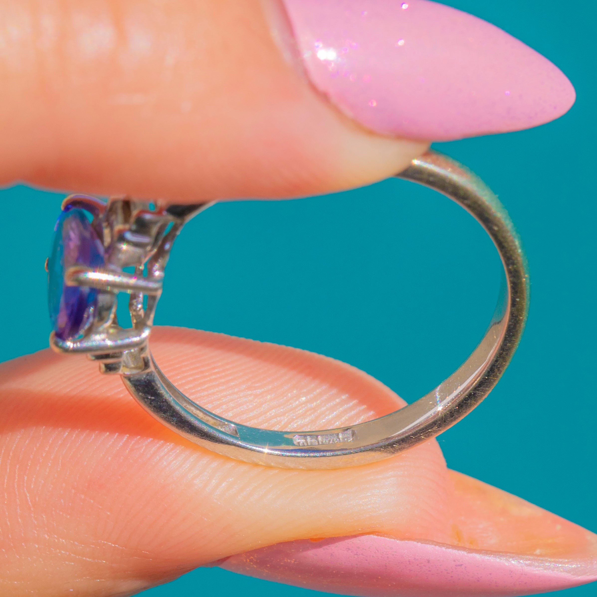 MATERIALS: Tests as 9ct White Gold, Tanzanite (0.85ct), Diamond (0.02ct).
