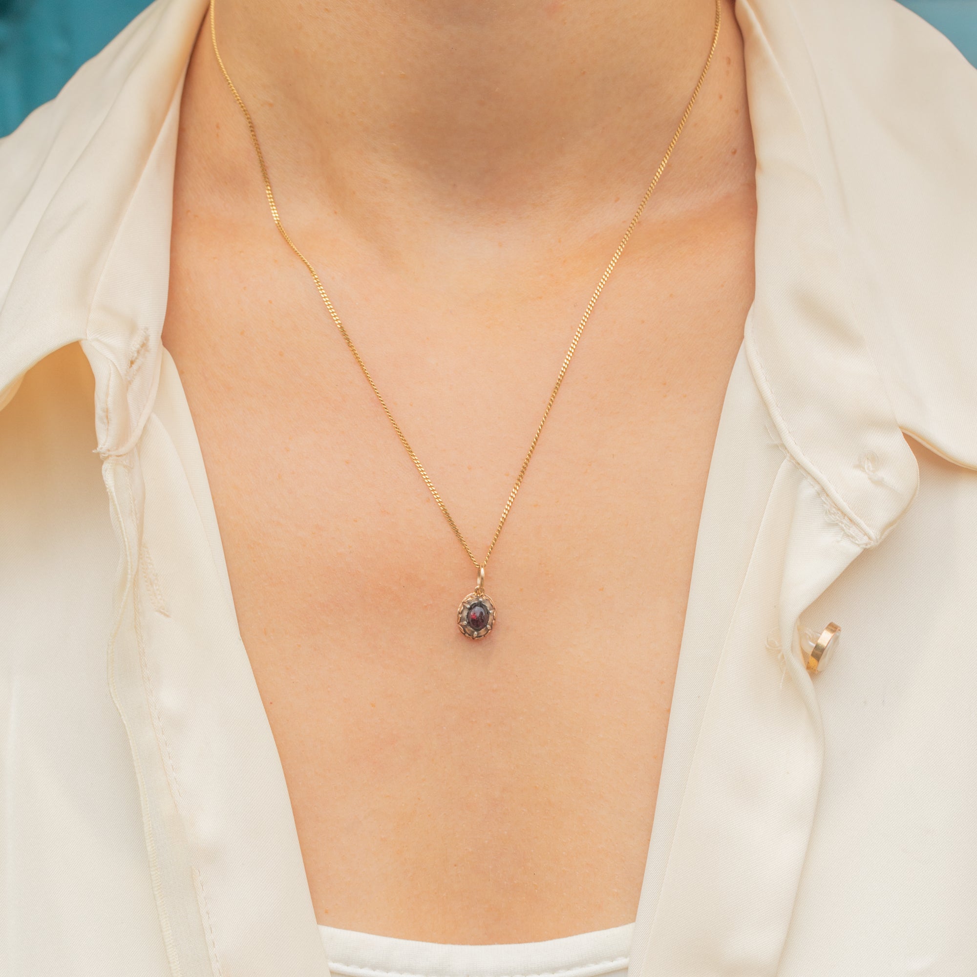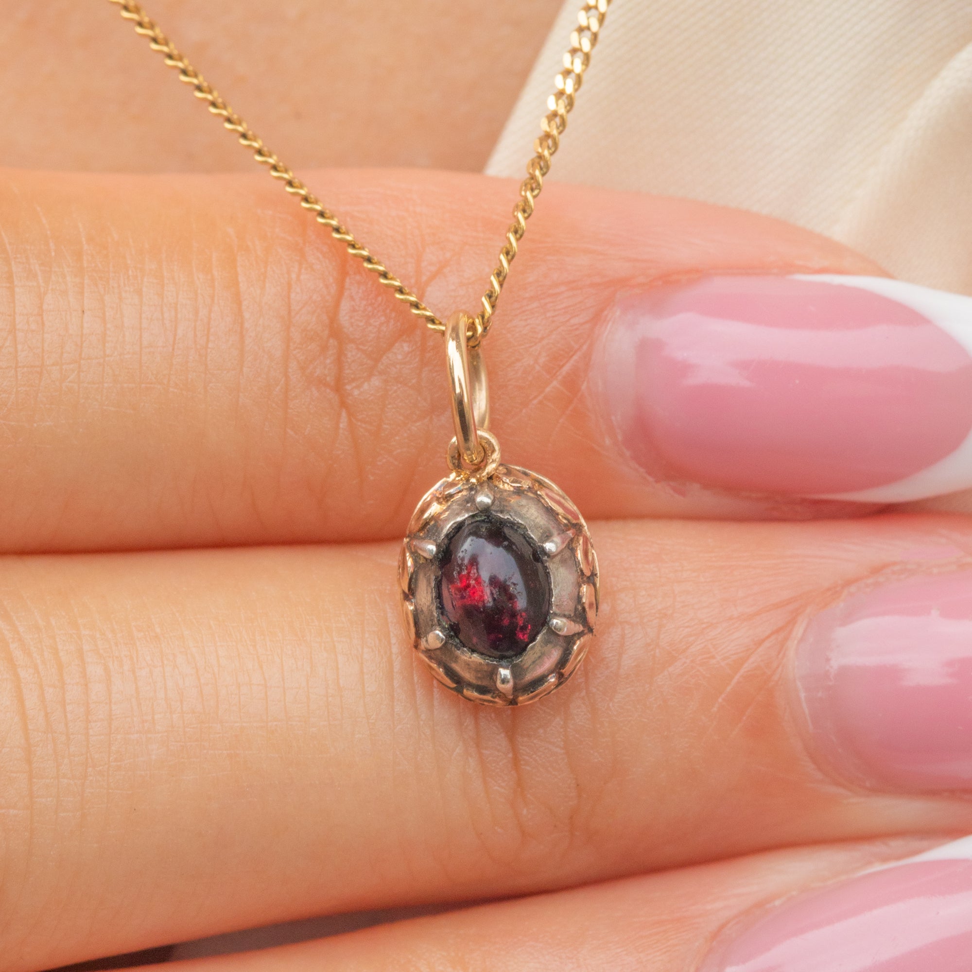 Aesthetic antique Garnet Paste Cabochon Charm , 9ct & Silver Collets