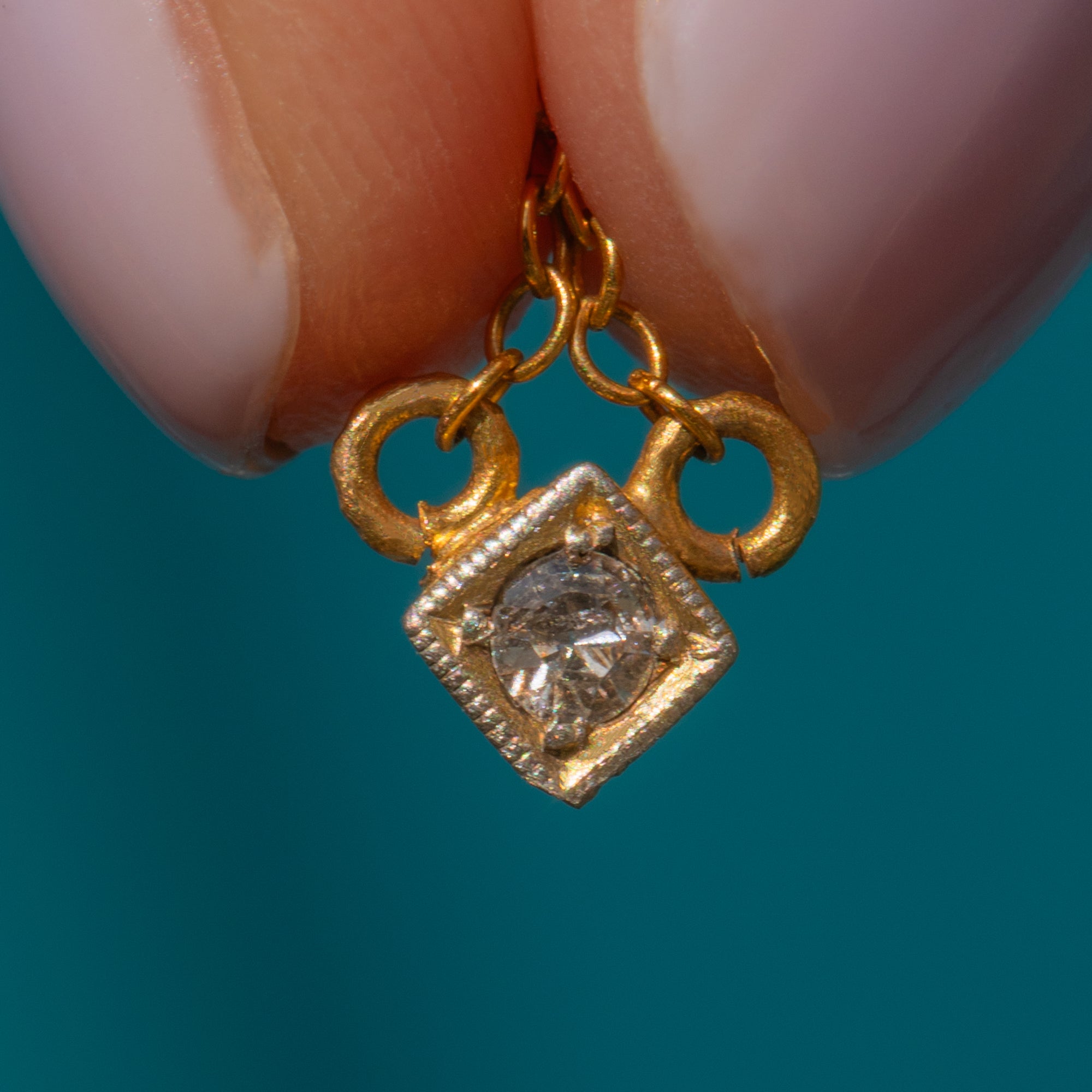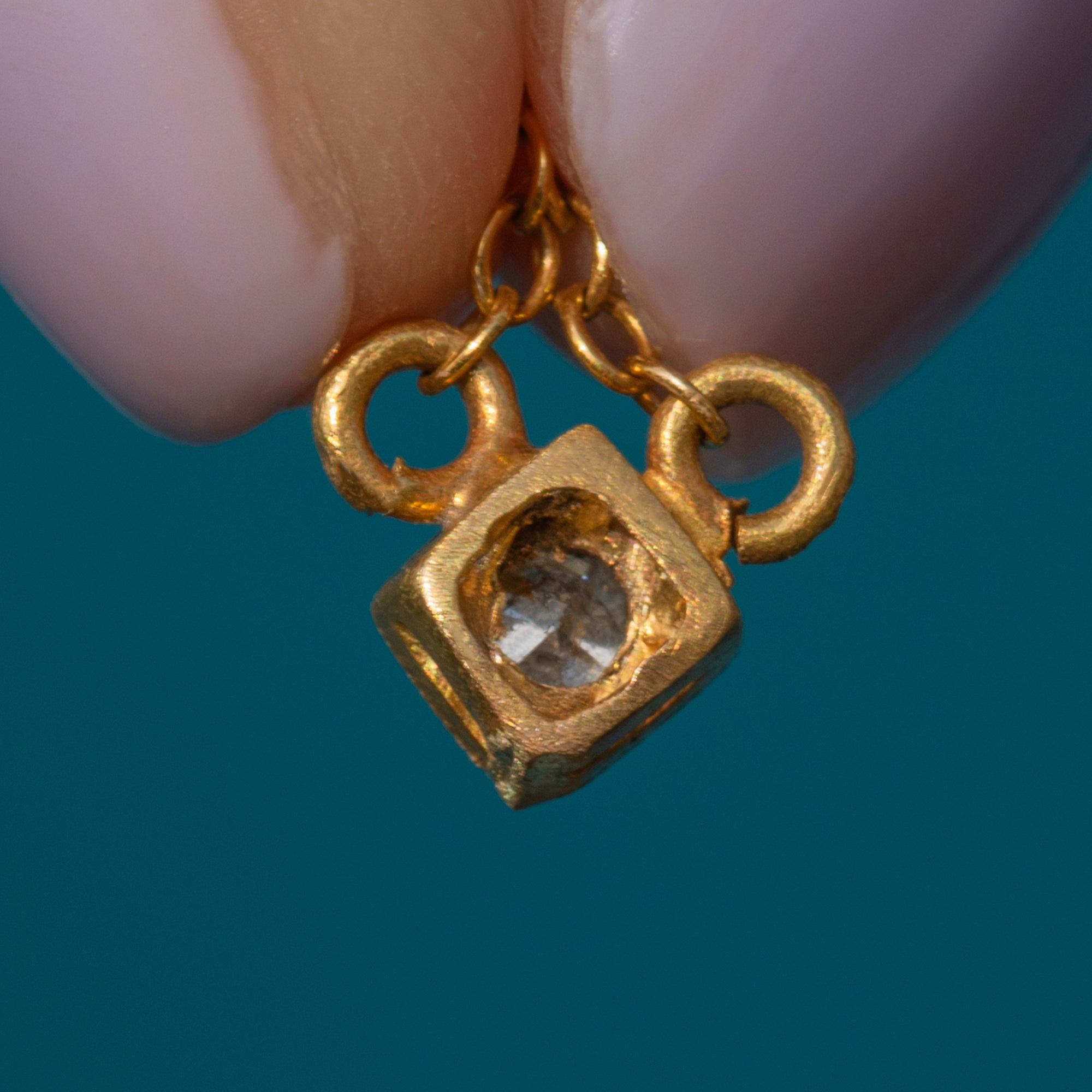 MATERIALS: Tests as 14ct Gold & Platinum Diamond setting, Old-Mine Cut Diamonds.