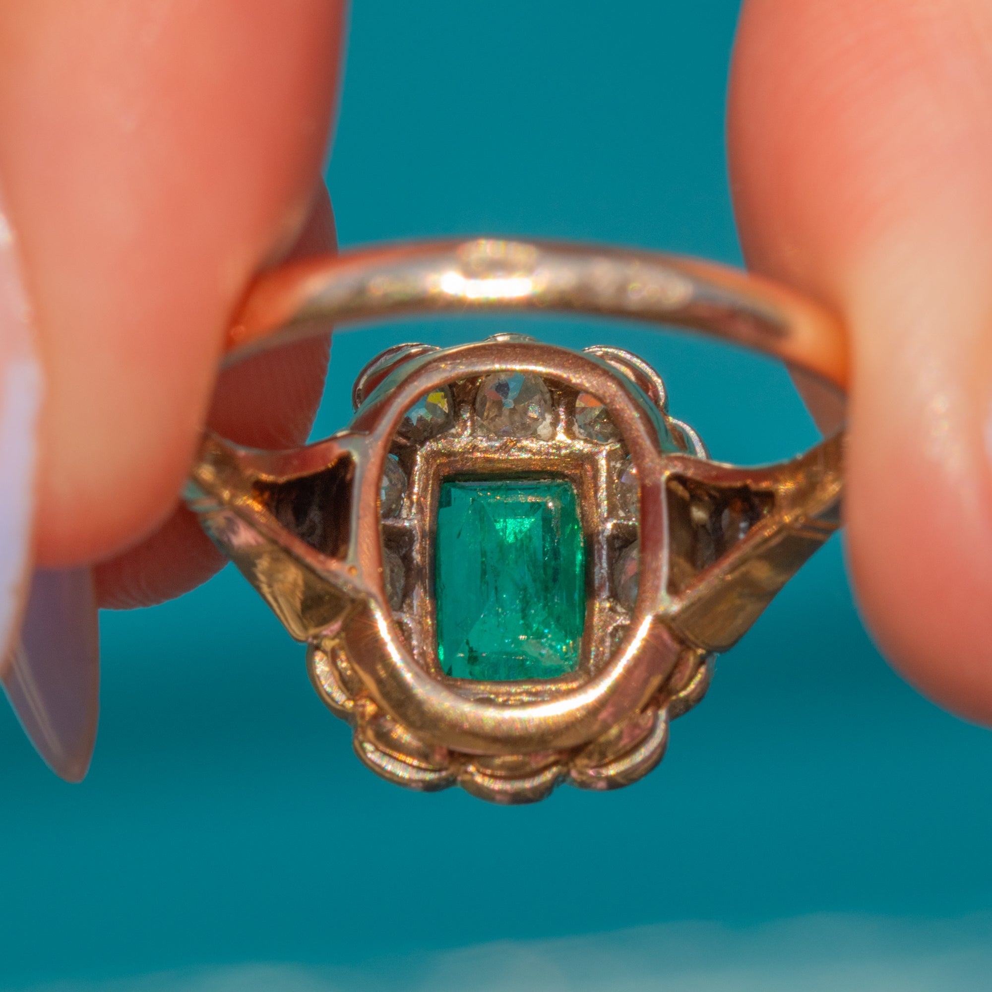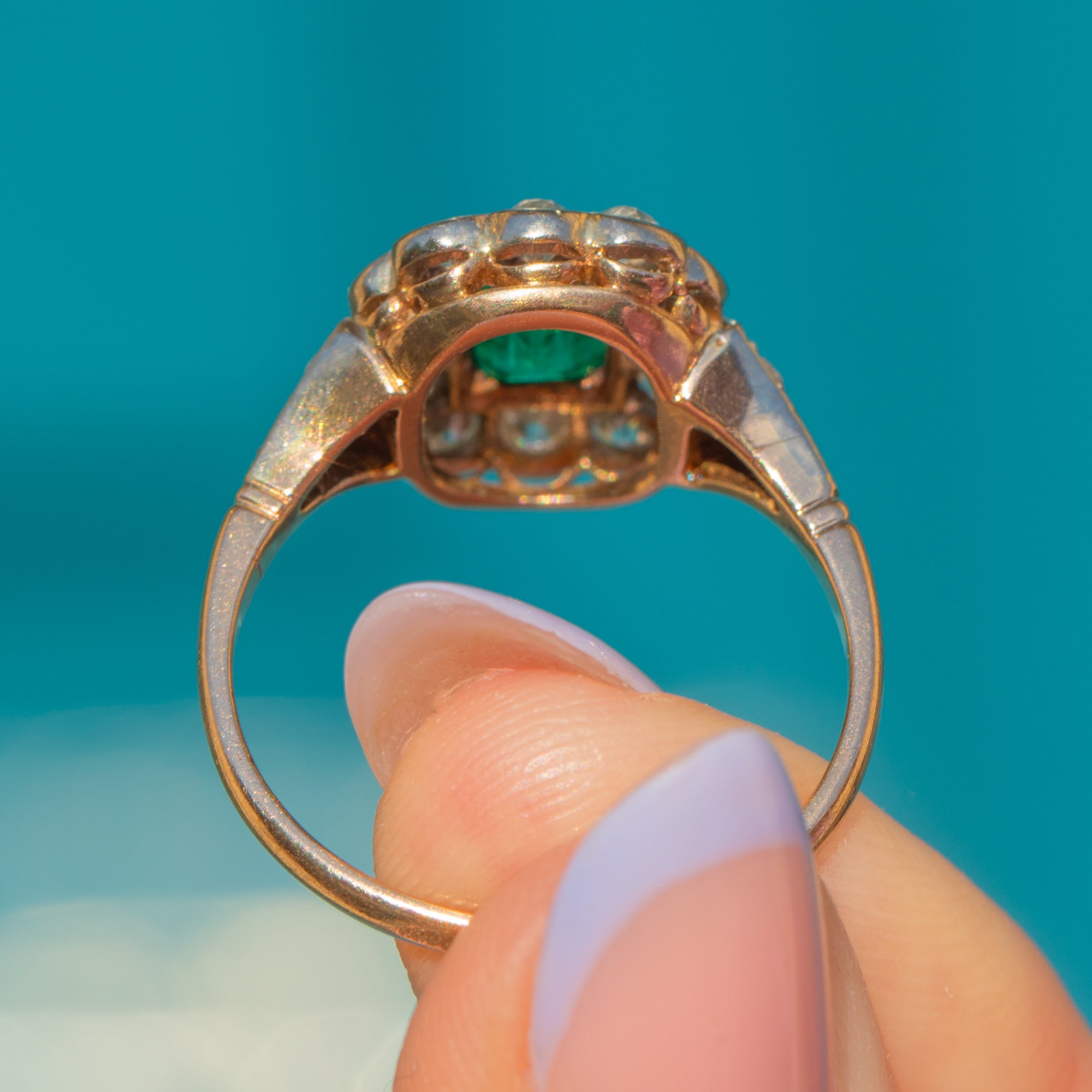 Antique 14ct Gold Emerald Diamond Cluster Ring, 0.70ct Emerald Item added