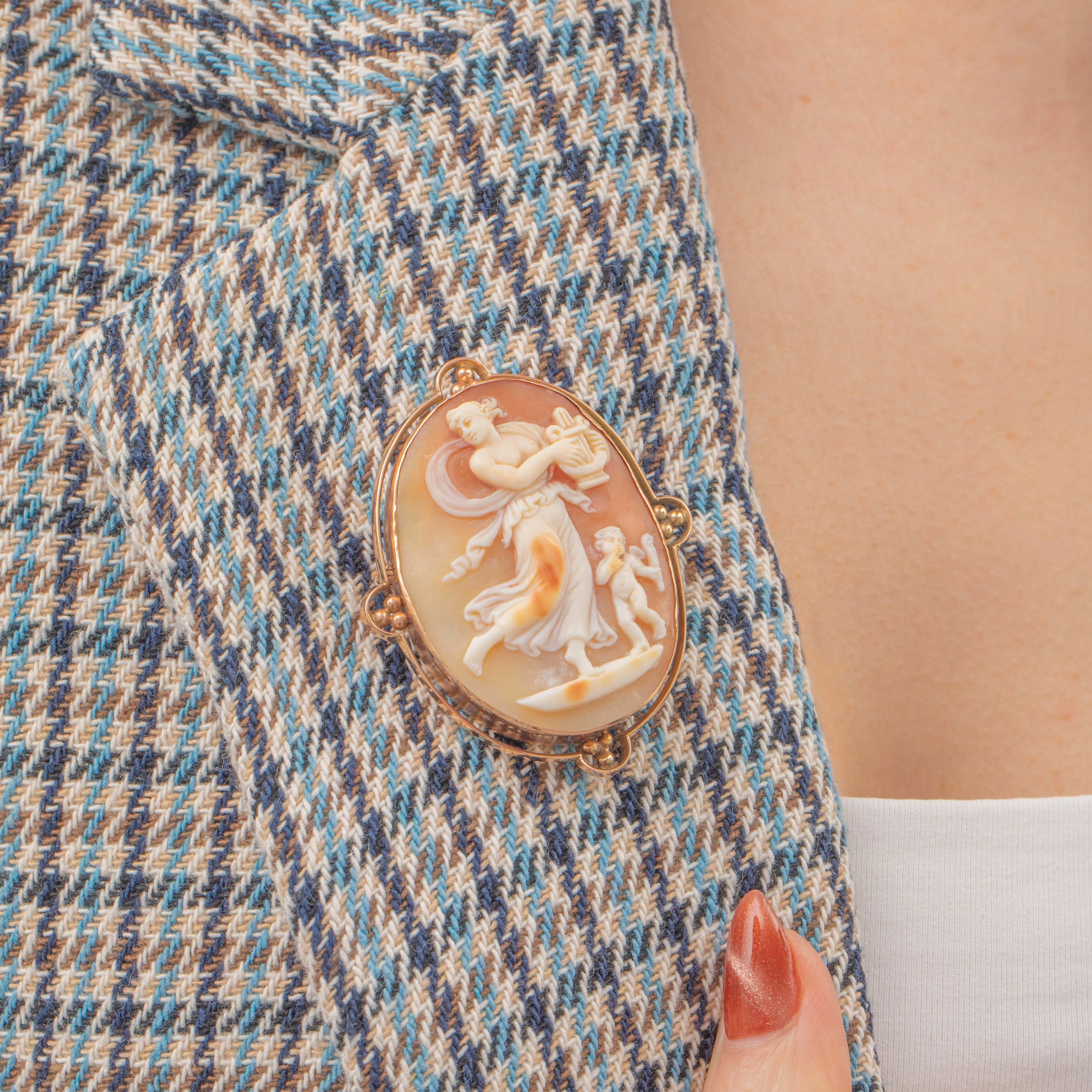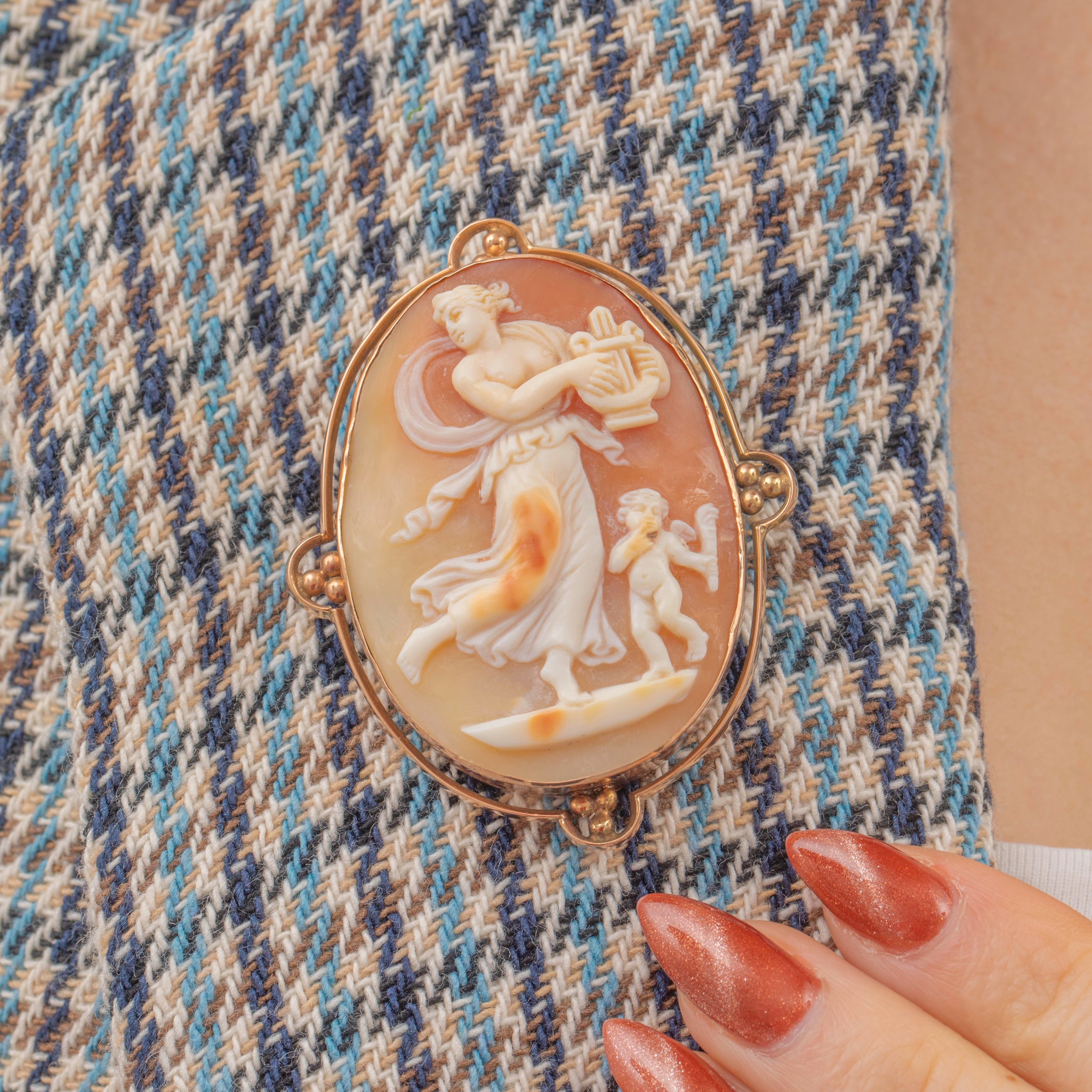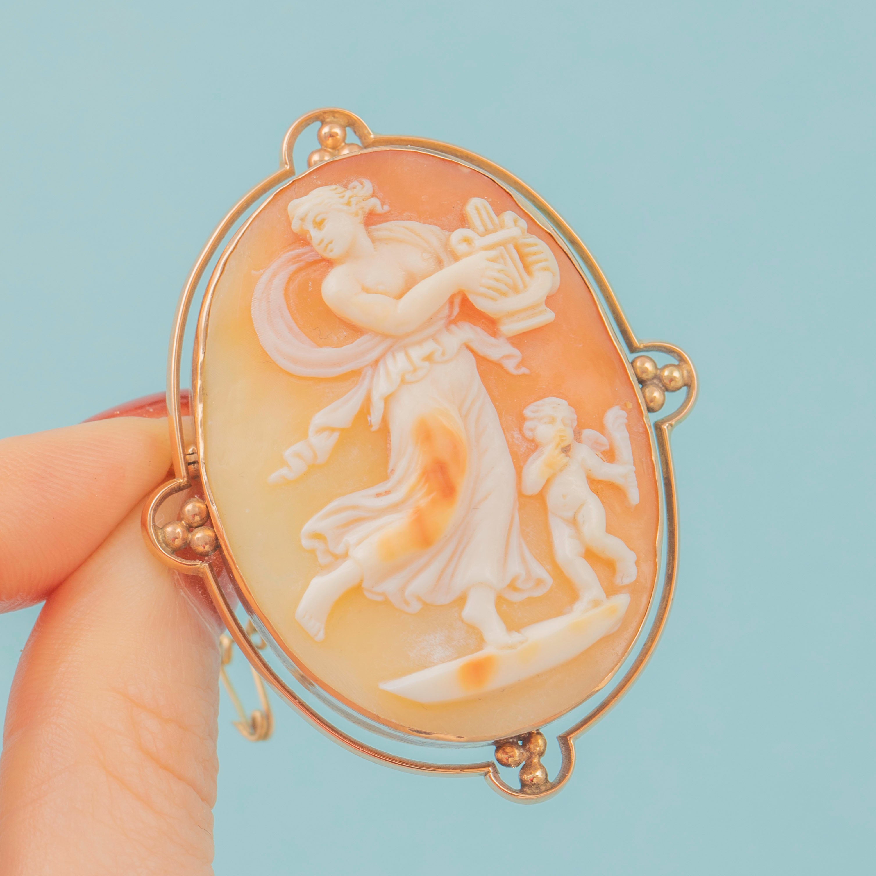 Antique 15ct Gold Cameo Brooch, Greek Goddess Erato