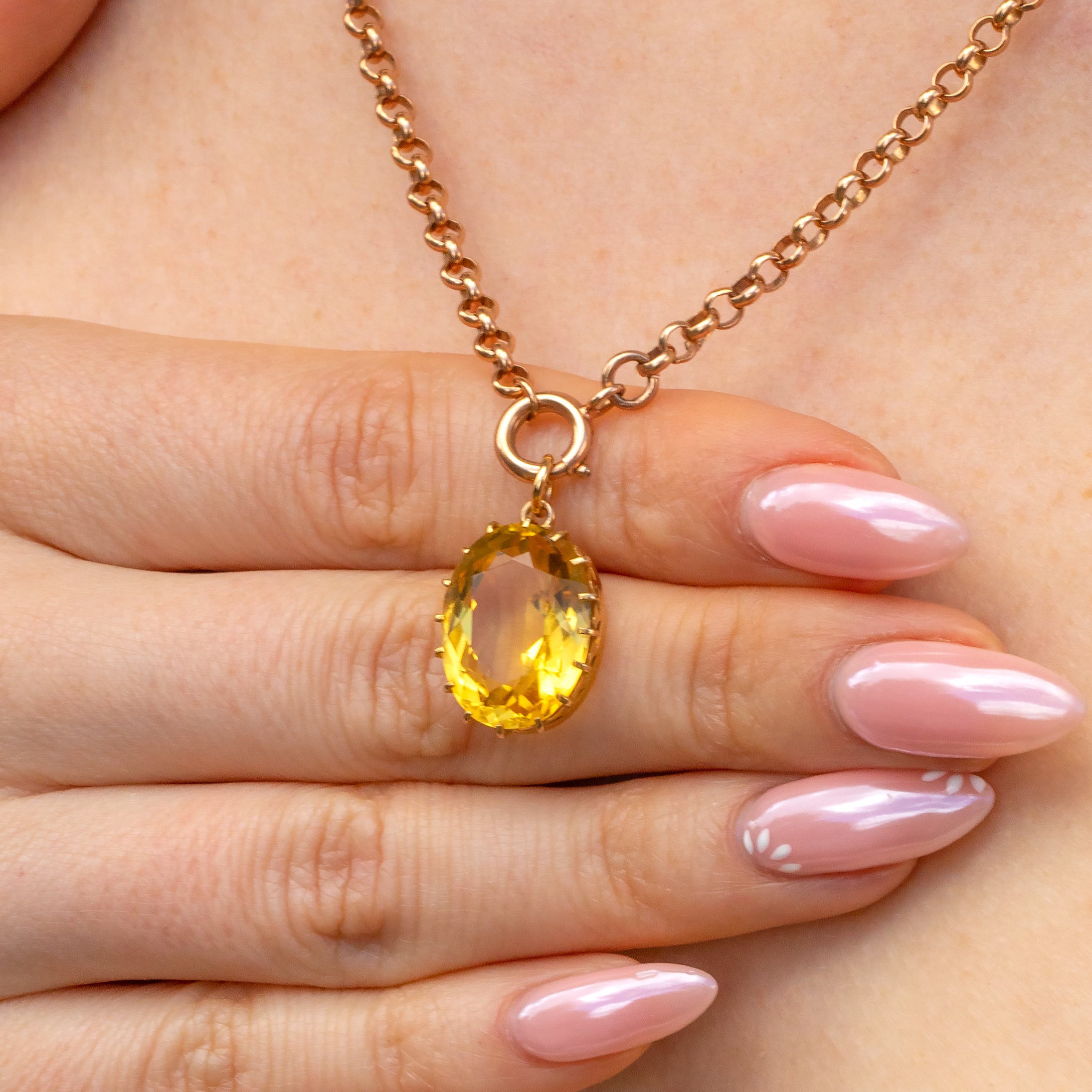 This antique 15ct Gold Citrine pendant will brighten even the darkest of days! Akin to a lemon sherbet sweet, 7.00cts of zesty hues dance across the fabulously faceted form of this Victorian Citrine pendant, thriving beneath the sunlight.