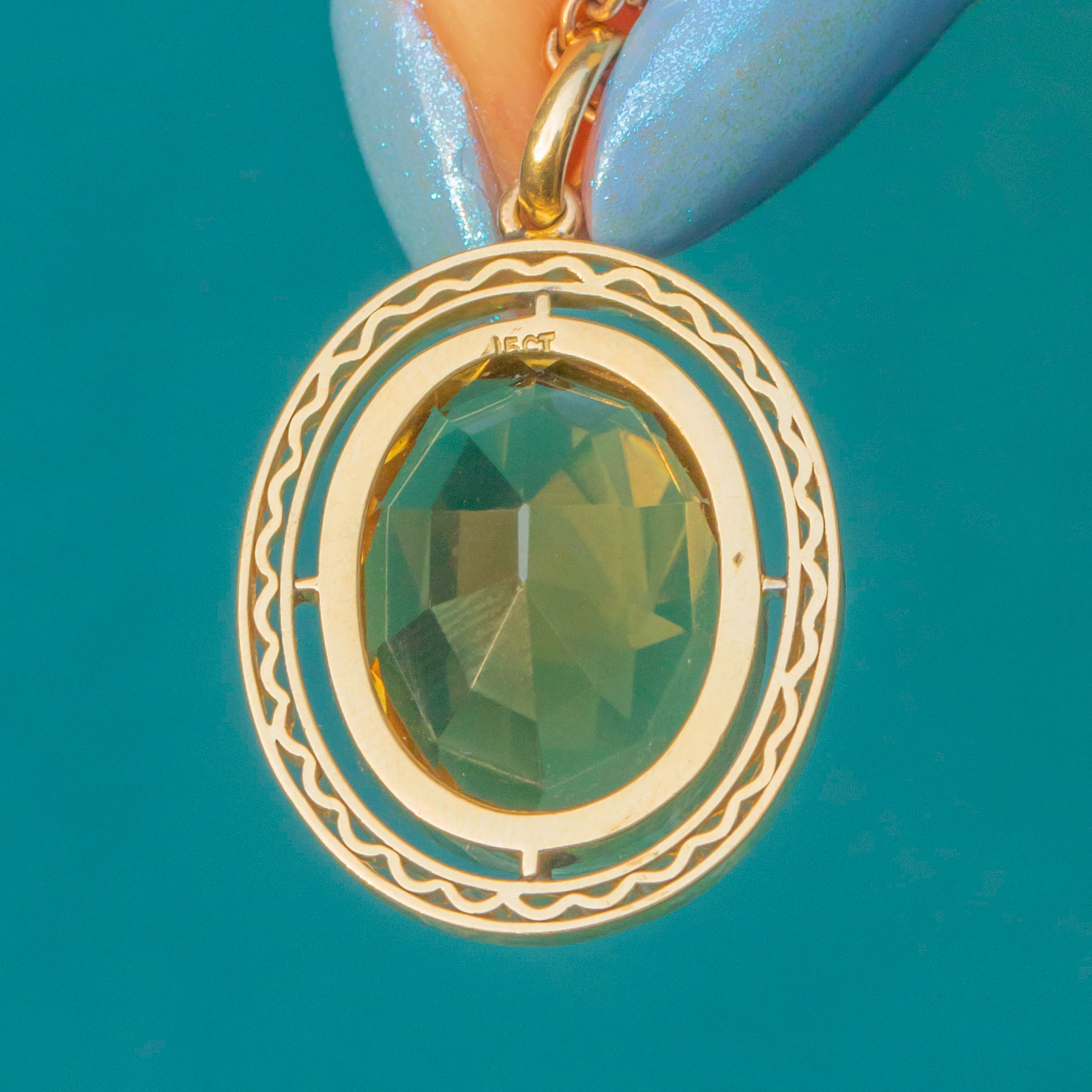 STAMPS: 15CT on back of pendant.
