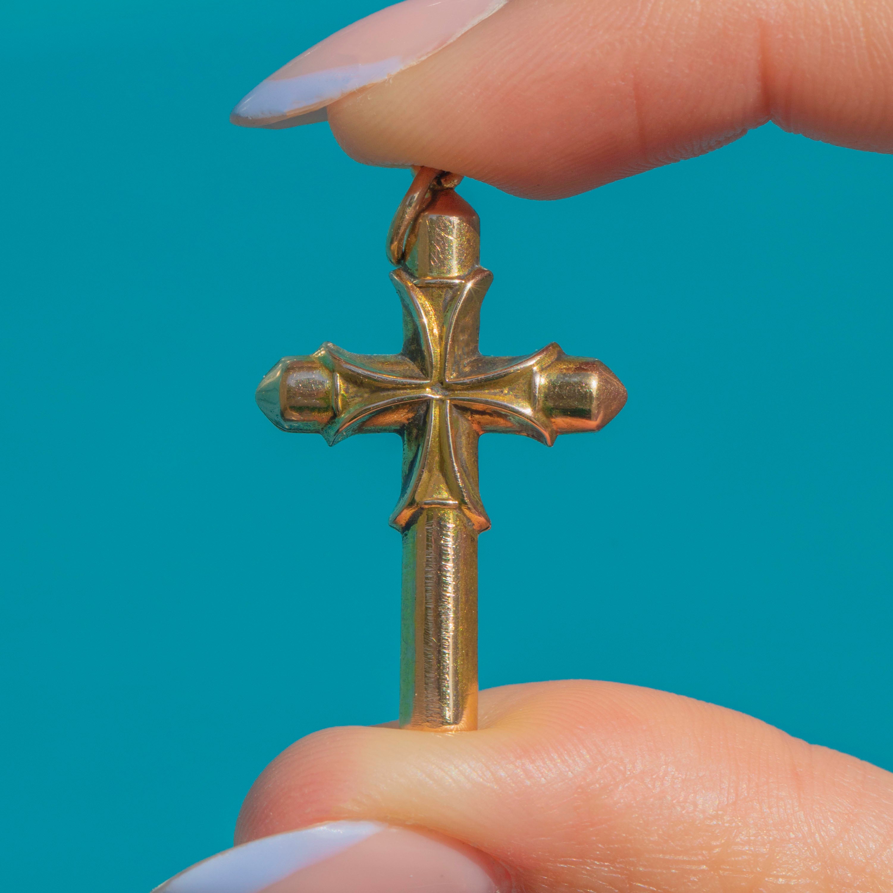 A beautiful charm, this Victorian cross pendant would look exquisite affixed to a fine Gold chain. Whether you are religious or simply love gothic jewellery, this antique cross would make a fine addition to your collection!