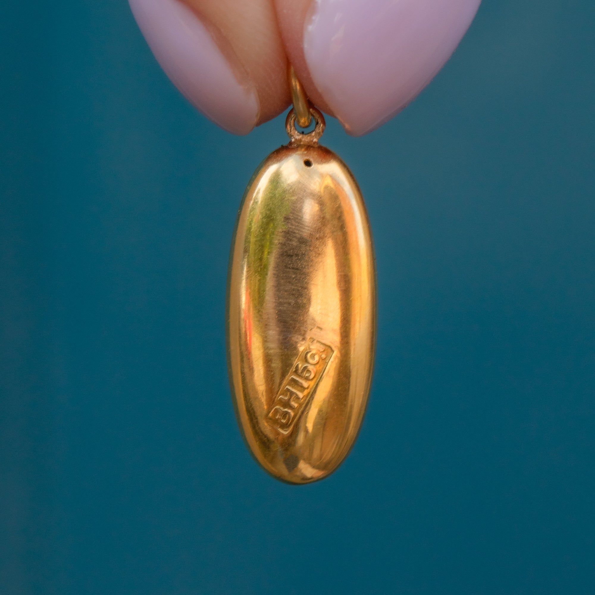 VERY GOOD-EXCELLENT. This antique 15ct Gold engraved lozenge pendant is in wonderful condition. Her engravings are crisp and her lozenge form has stood to the test of time. The Gold is saturated and although there is some differentiation of colour on the back, this cannot be seen when worn. With a soldered jump-ring, this antique Gold pendant can be worn with confidence!
