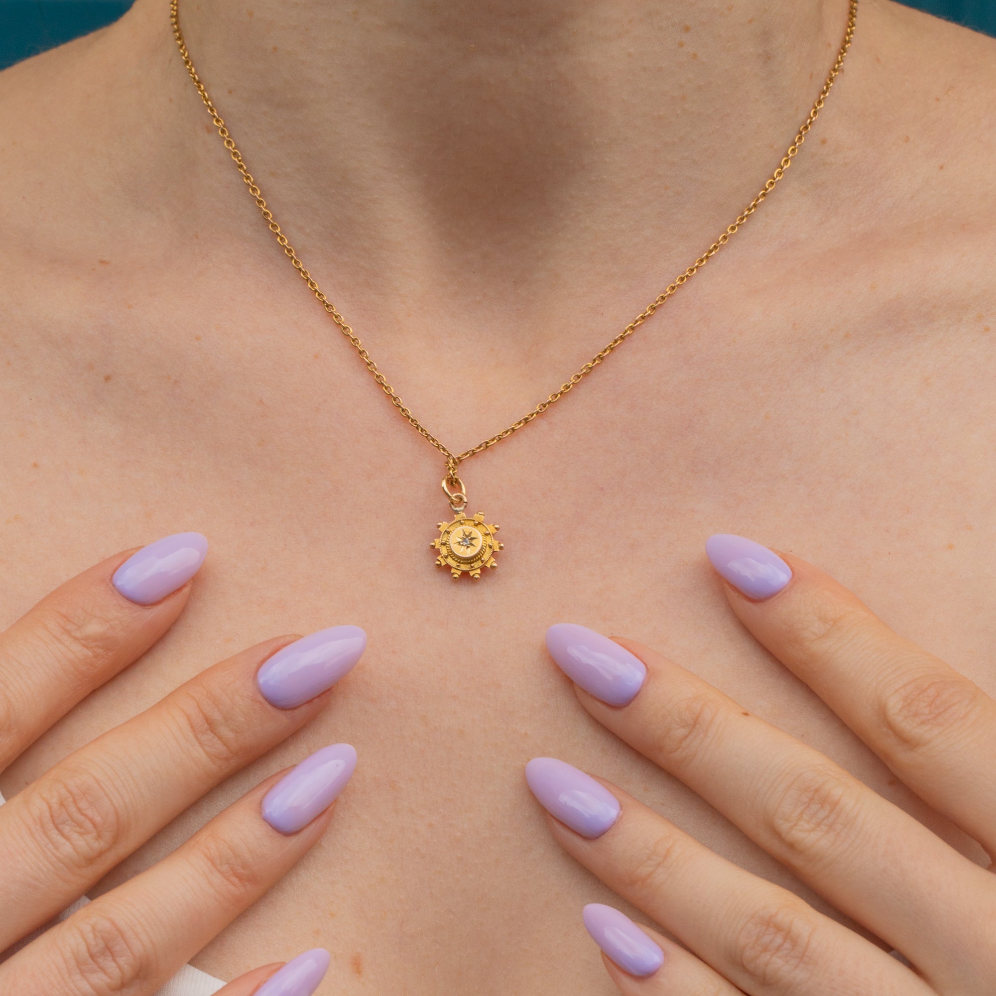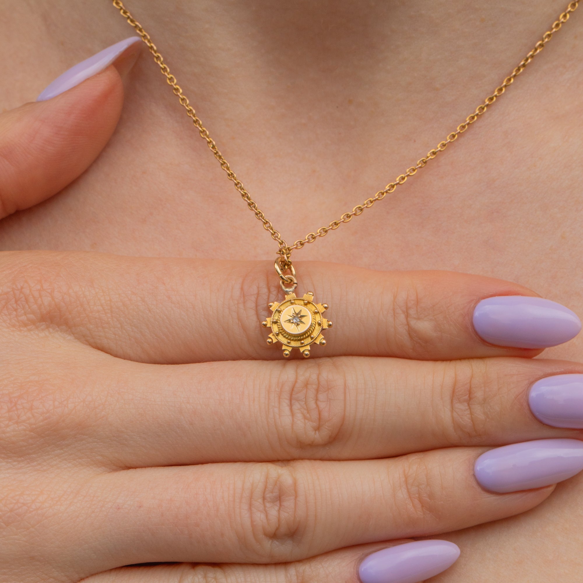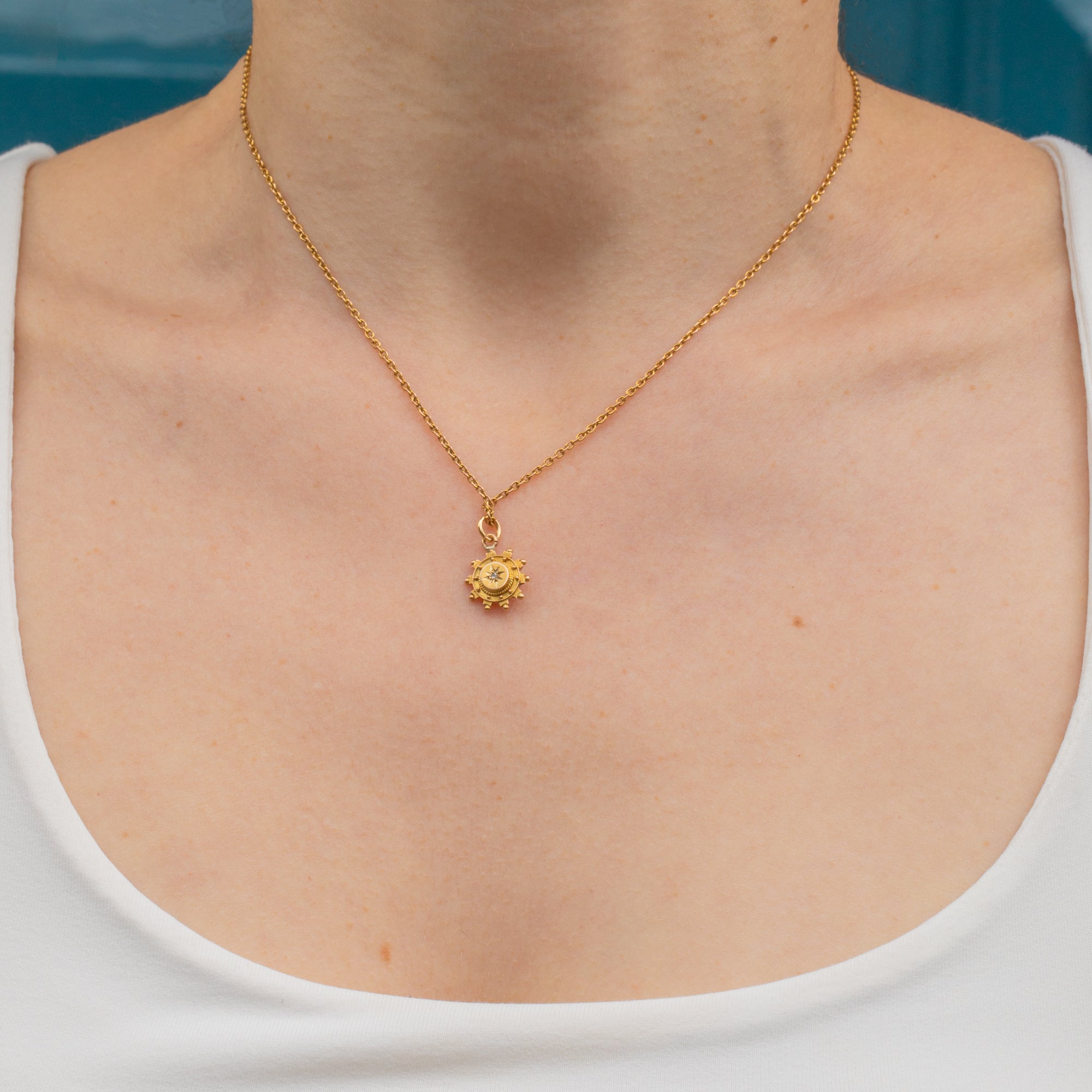 Nestled at the centre of this Victorian Gold charm is a dainty Diamond, adding a sparkling accent against the Gold. Her delicate size makes her an easy everyday pendant option; she is bound to become your new go-to piece!