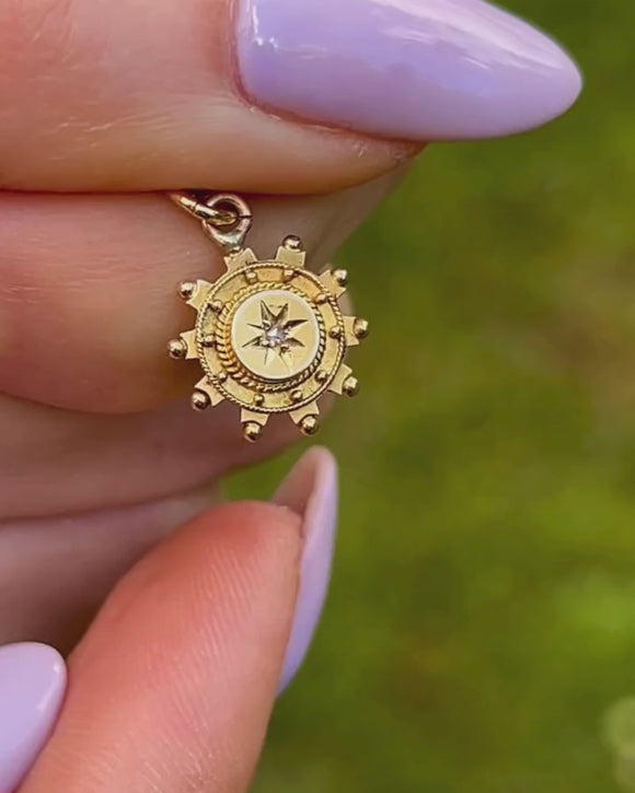 Antique 15ct Gold Etruscan Round Diamond Charm
