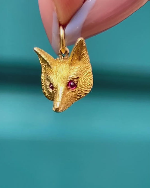 Antique 15ct Gold Fox Head Charm with Ruby Eyes