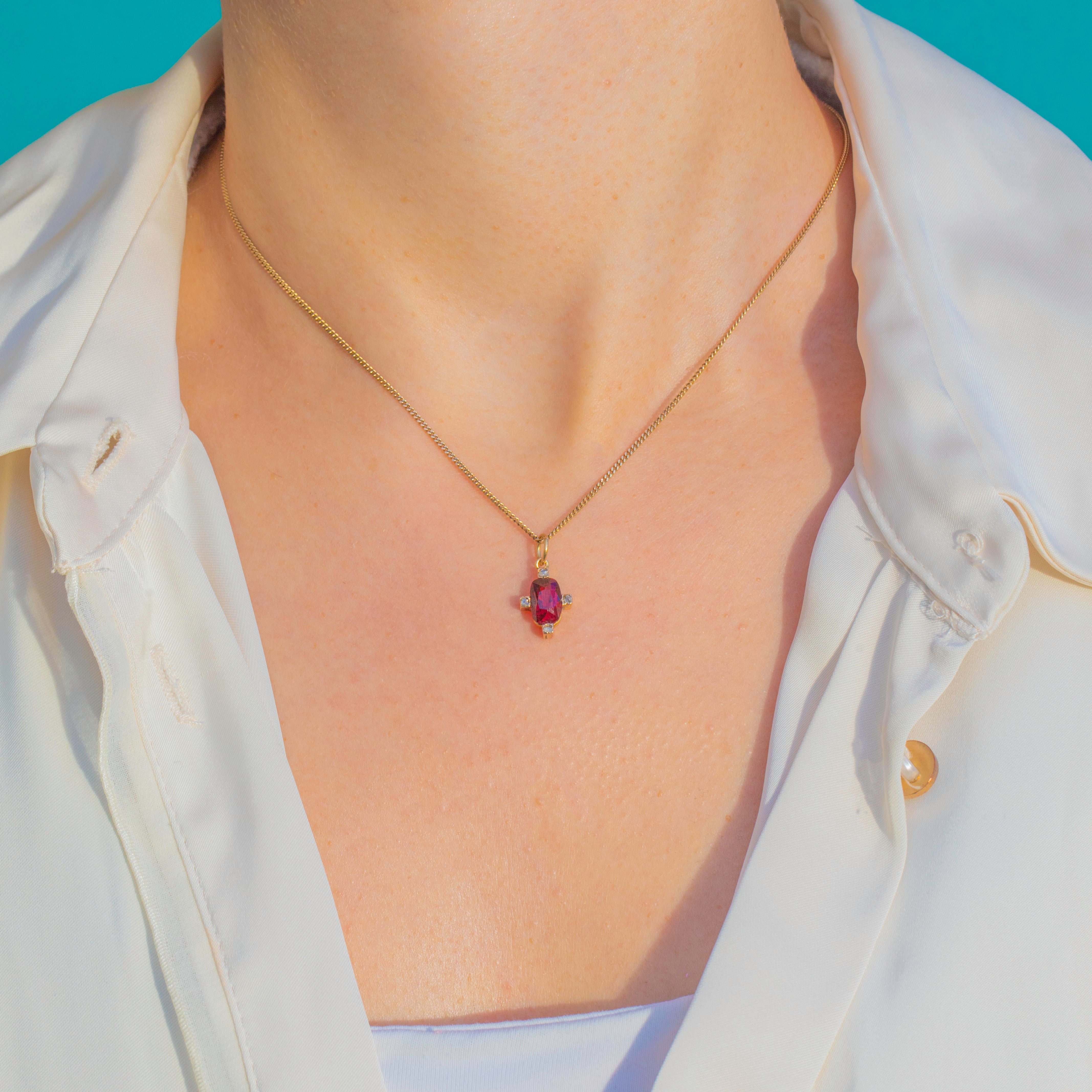 This sweet late Victorian charm features a deep red Garnet illuminated by twinkling Diamond accents, all set in rich 15ct Gold. Compact yet full of antique character, it’s the perfect pop of colour to add to a bracelet, pendant chain or charm stack.