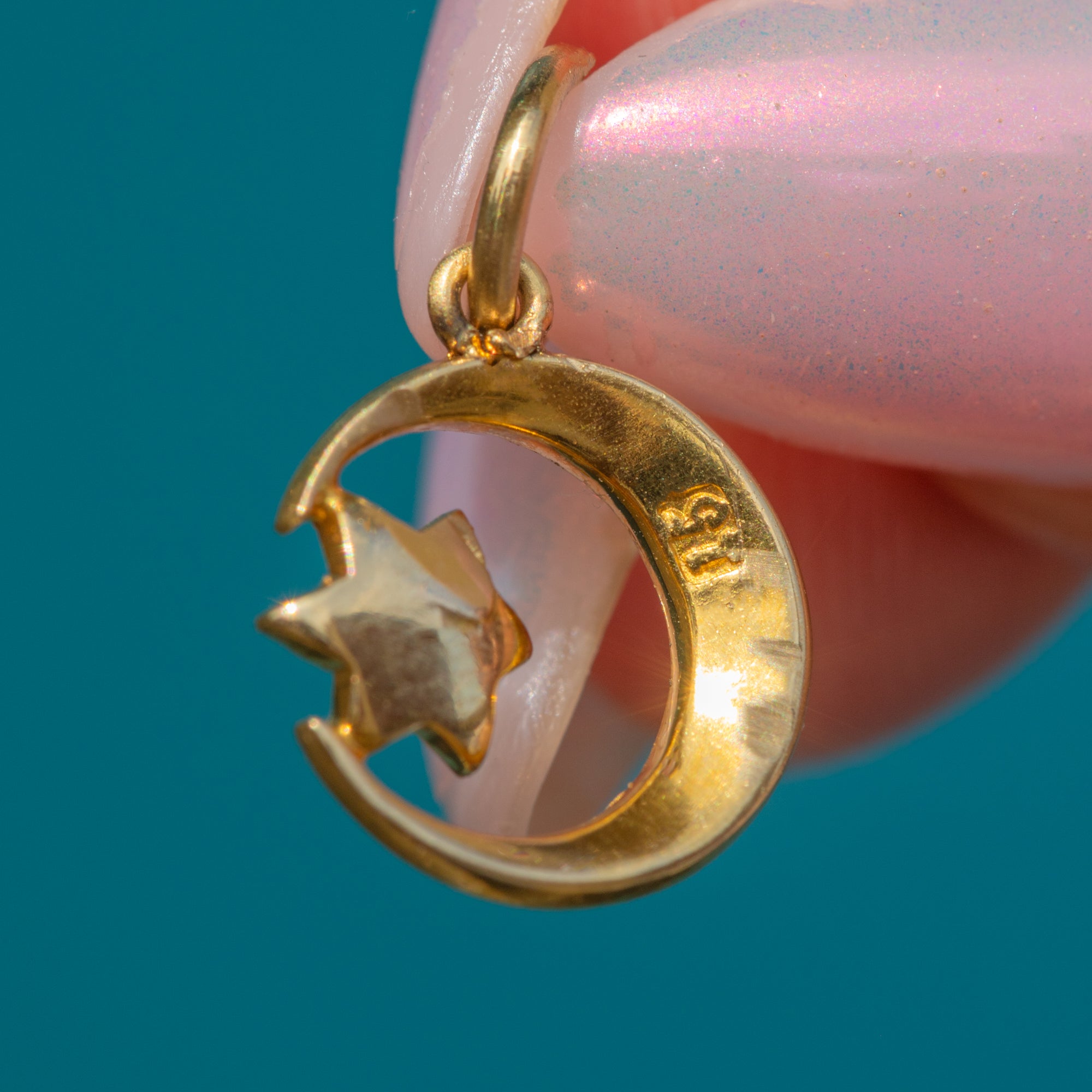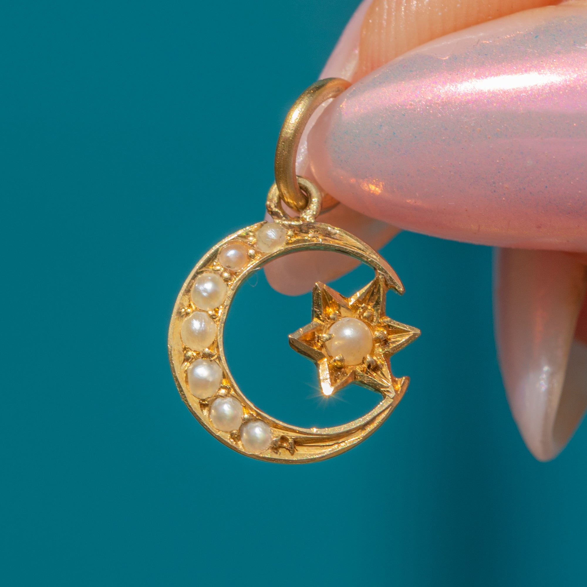 Antique 15ct Gold Pearl Crescent Moon & Star Charm