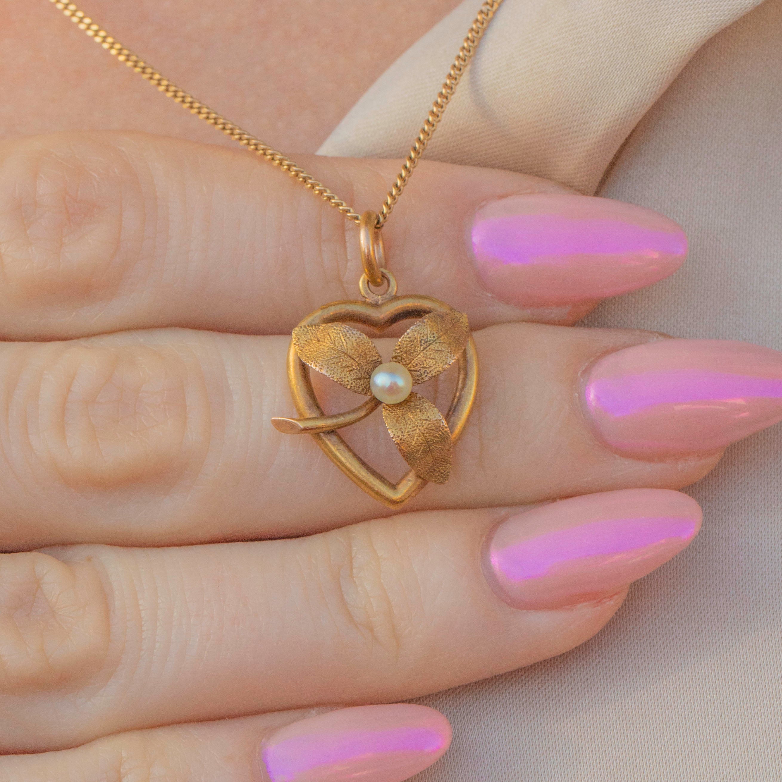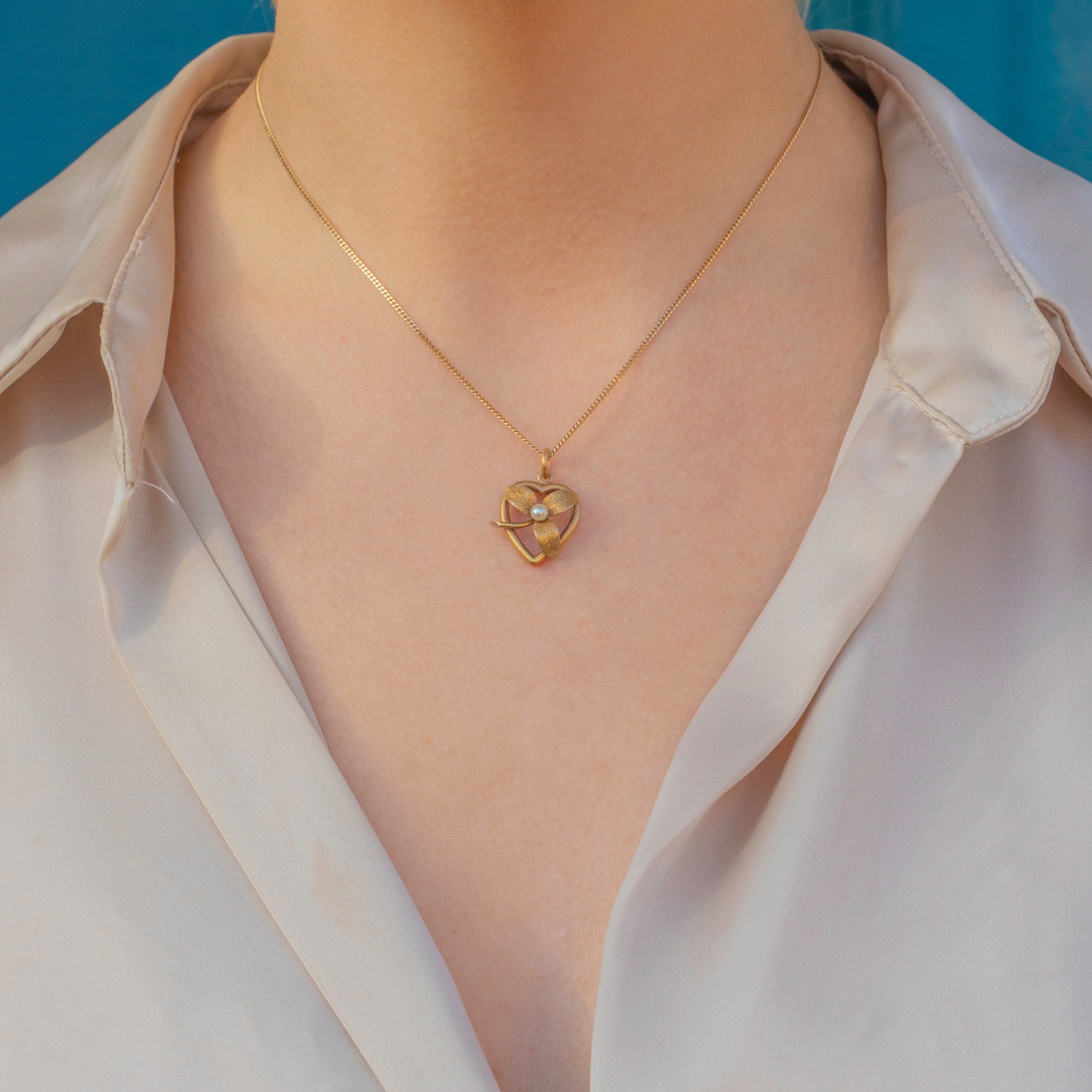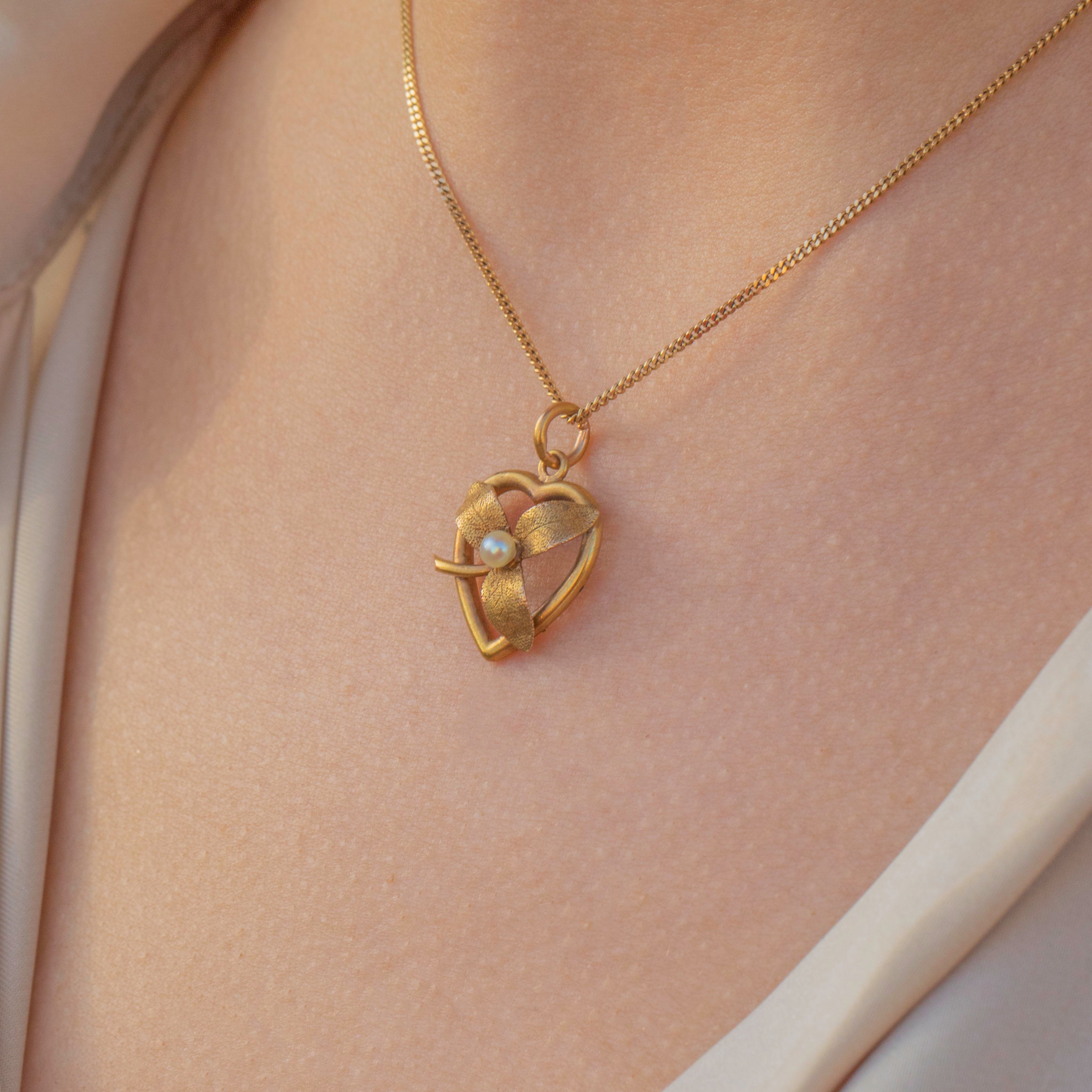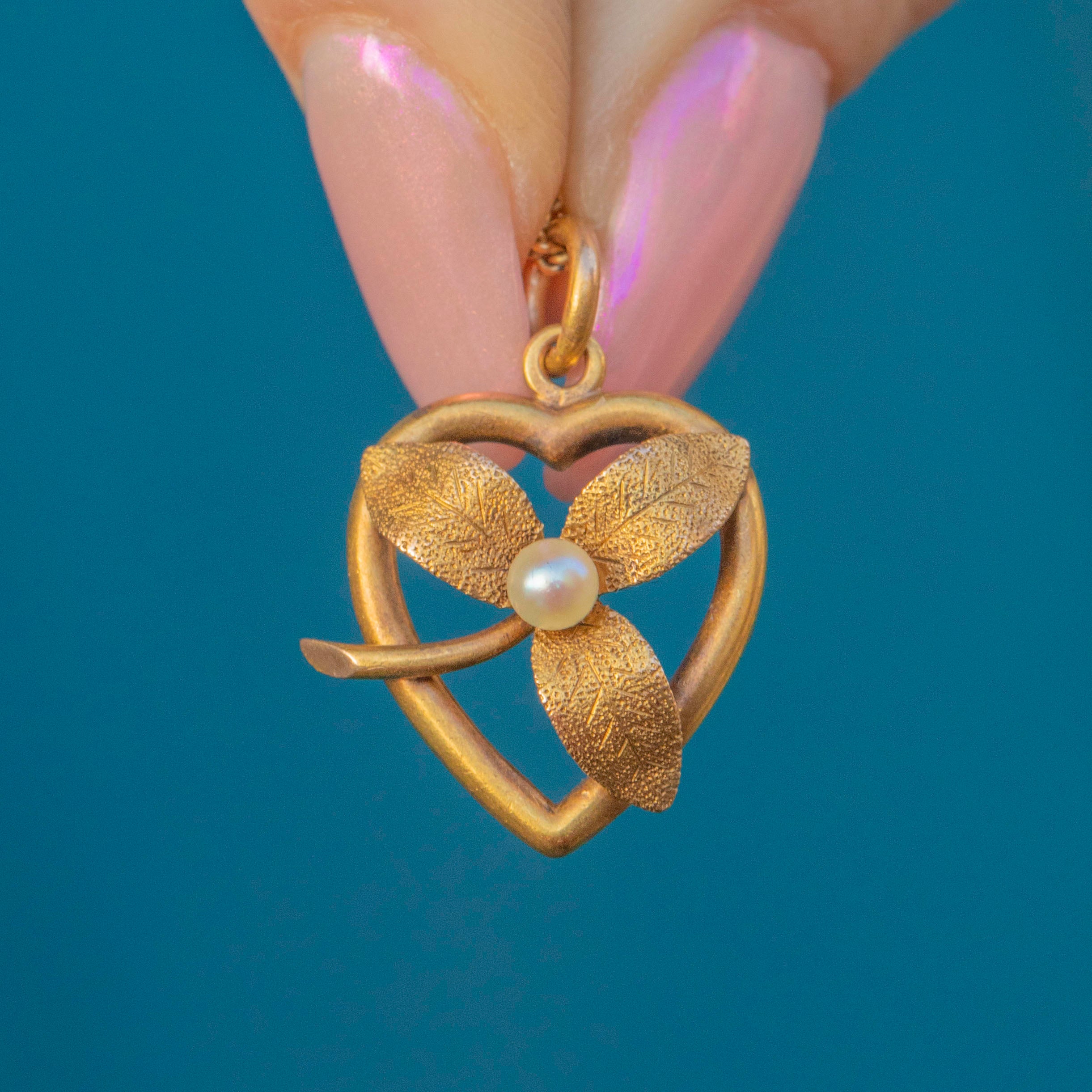 Add a touch of Victorian charm to your collection with this antique 15ct Gold Pearl heart pendant!