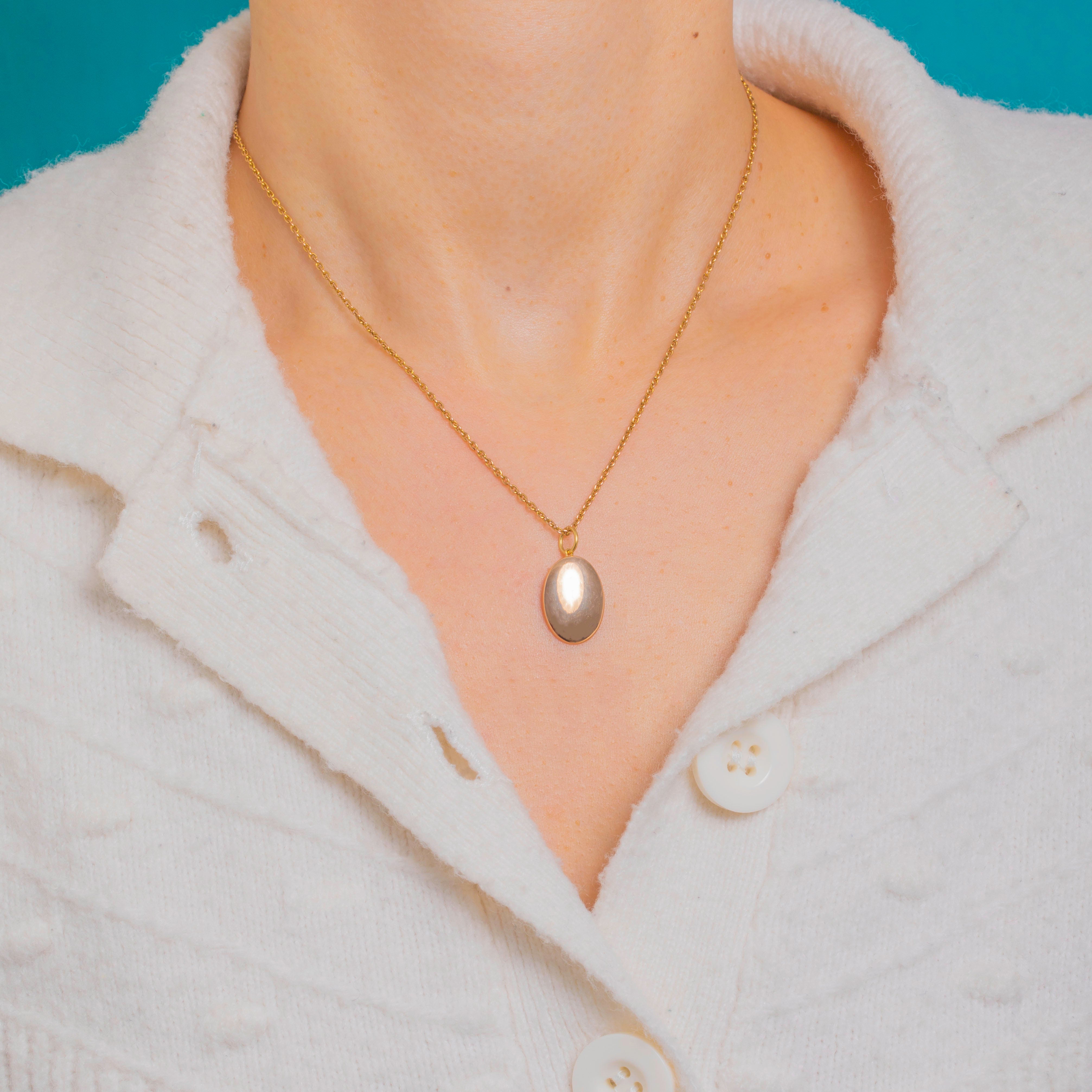 EXCELLENT: Light surface wear commensurate with age, including fine hairline scratches and subtle polishing marks visible under magnification. The domed shell and closed back are free from dents, and the hasp and jump ring are secure.