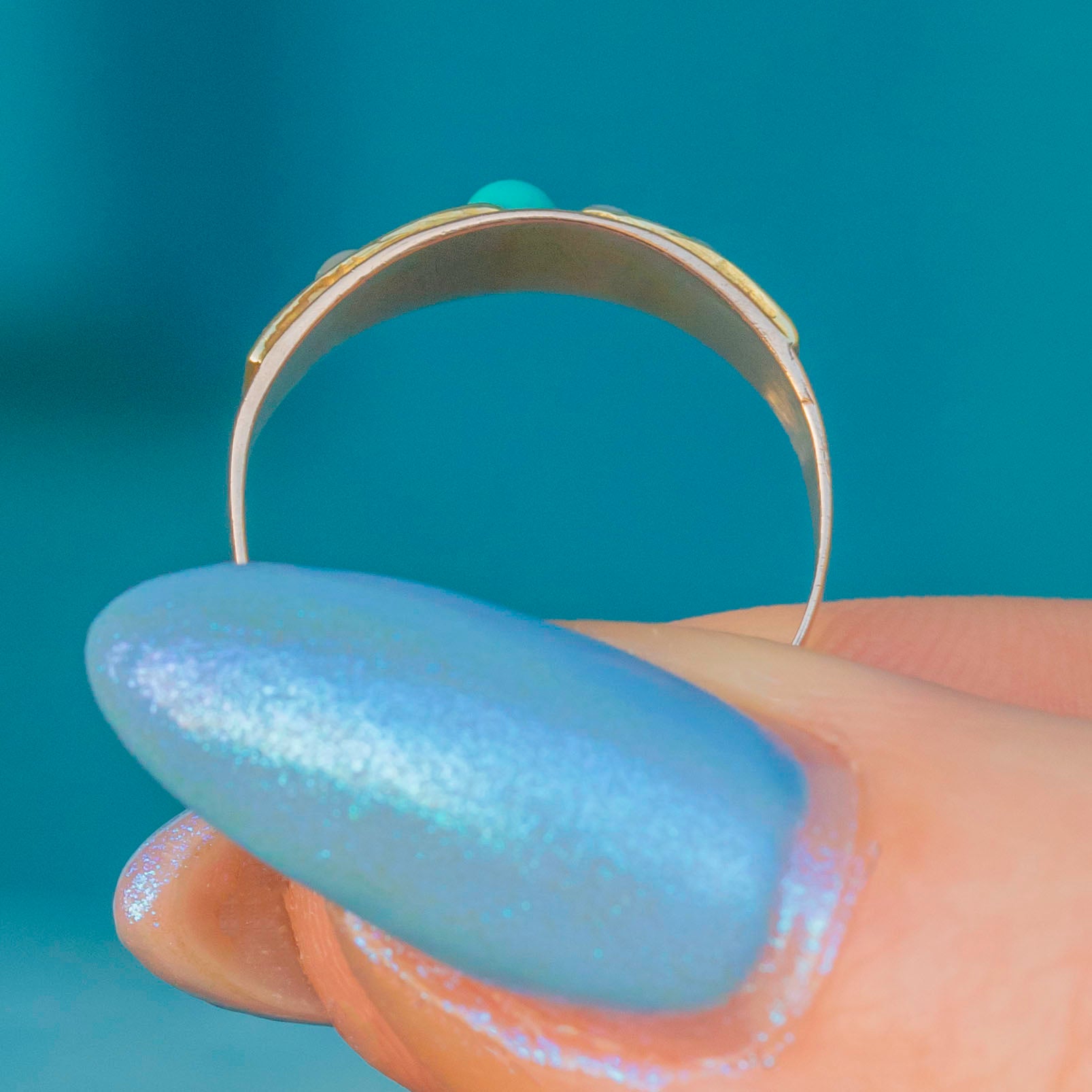 Victorian 15ct Gold Turquoise Pearl Stacking Ring c.1880
