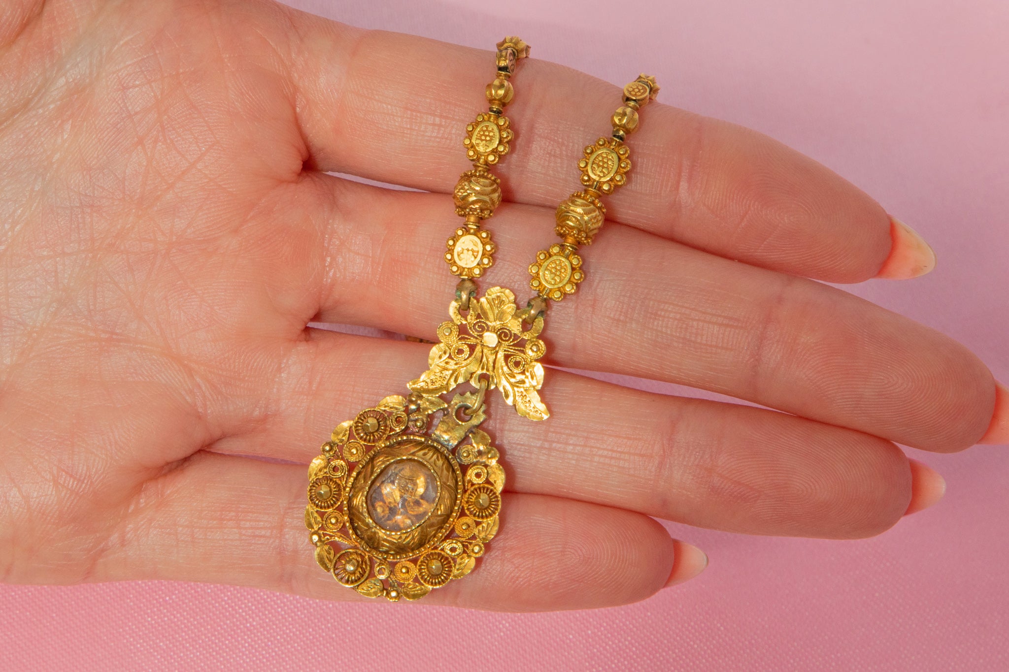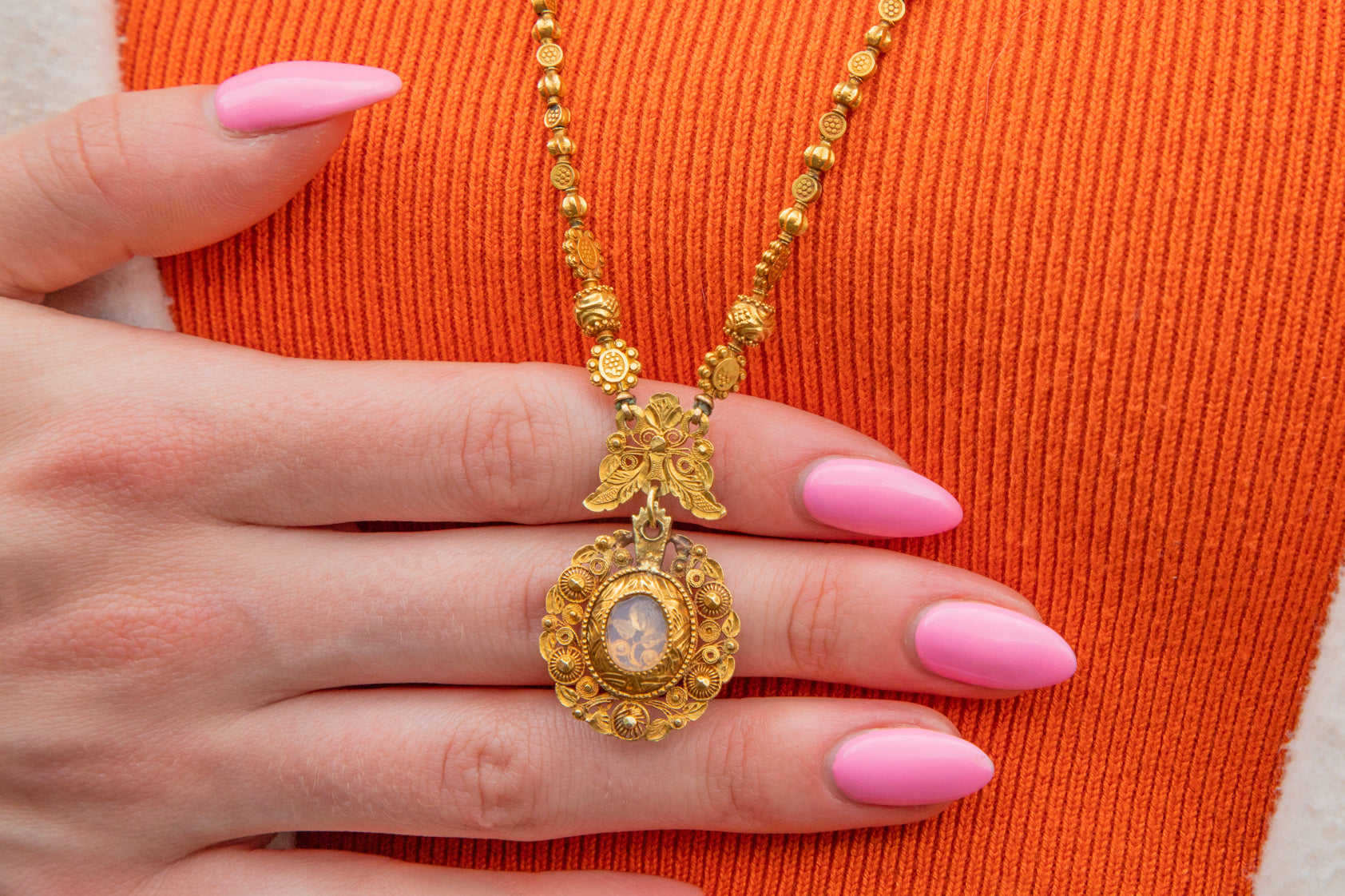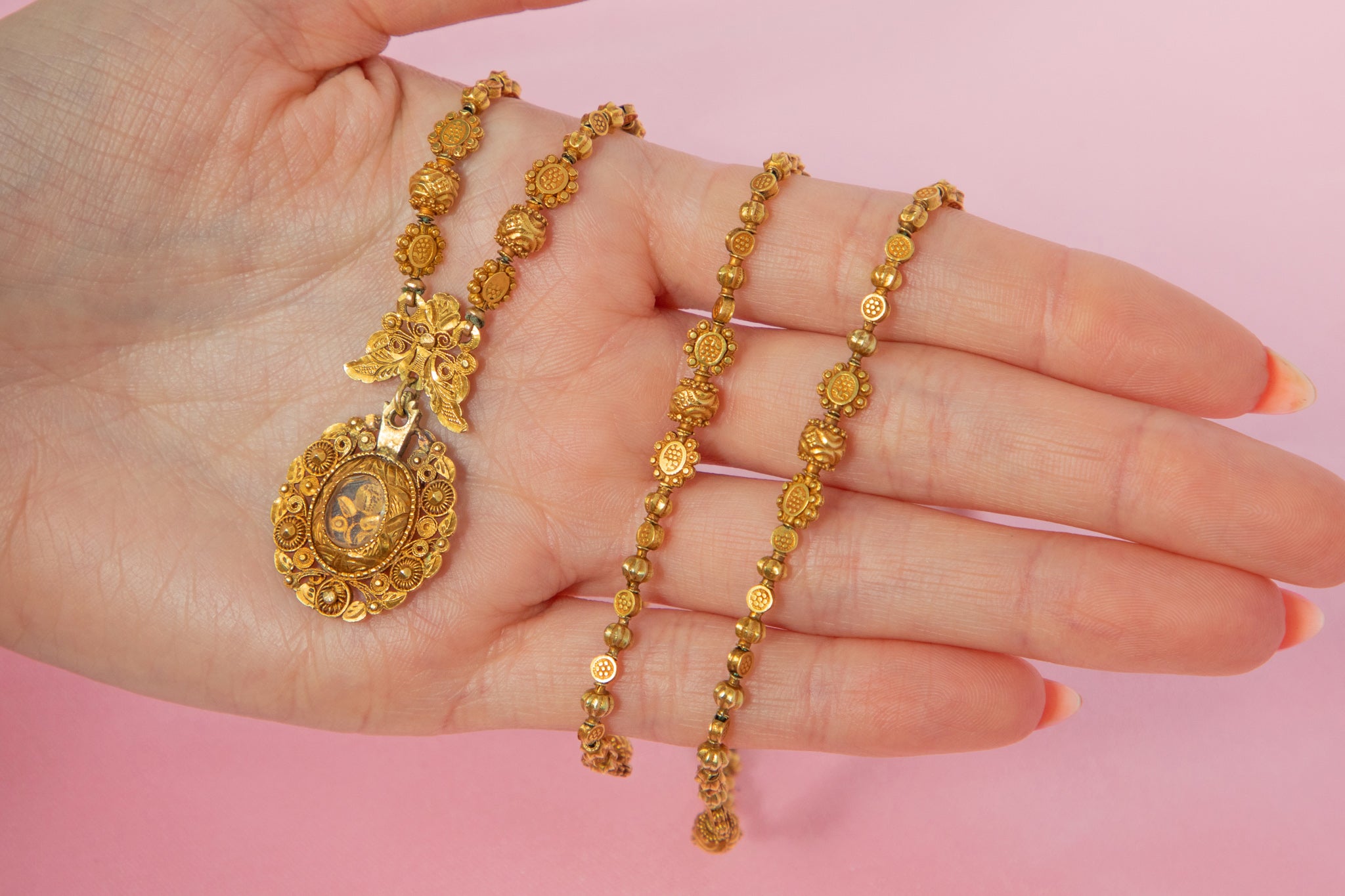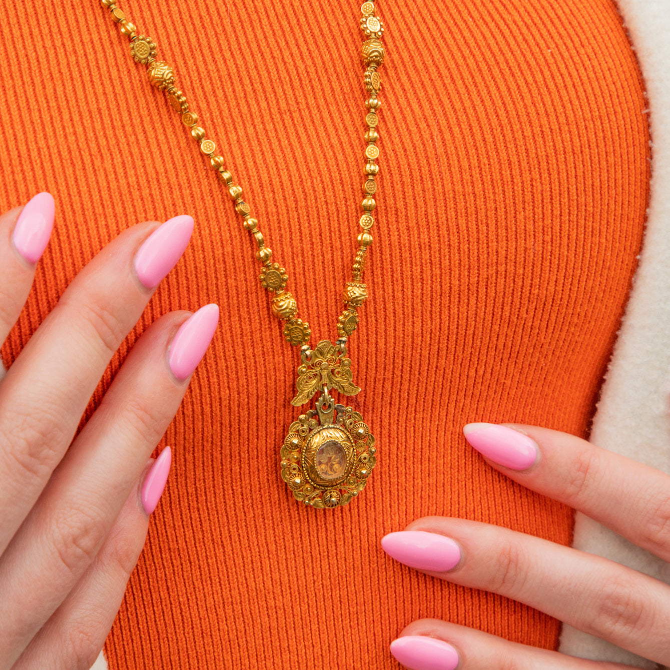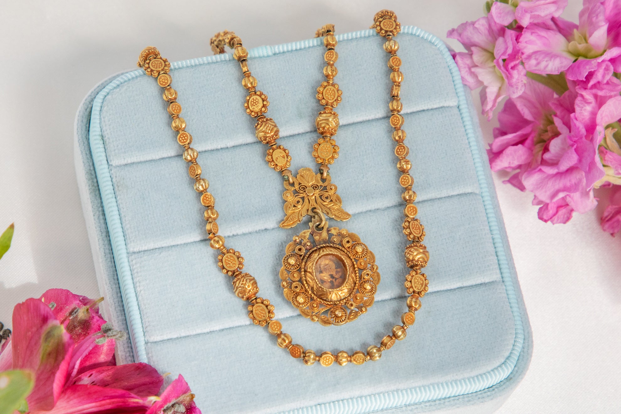 If you're looking for a timeless piece that exemplifies the beauty of antique jewellery, then this Georgian 18ct Gold beaded Tambourine necklace is definitely a necessary addition to your collection.