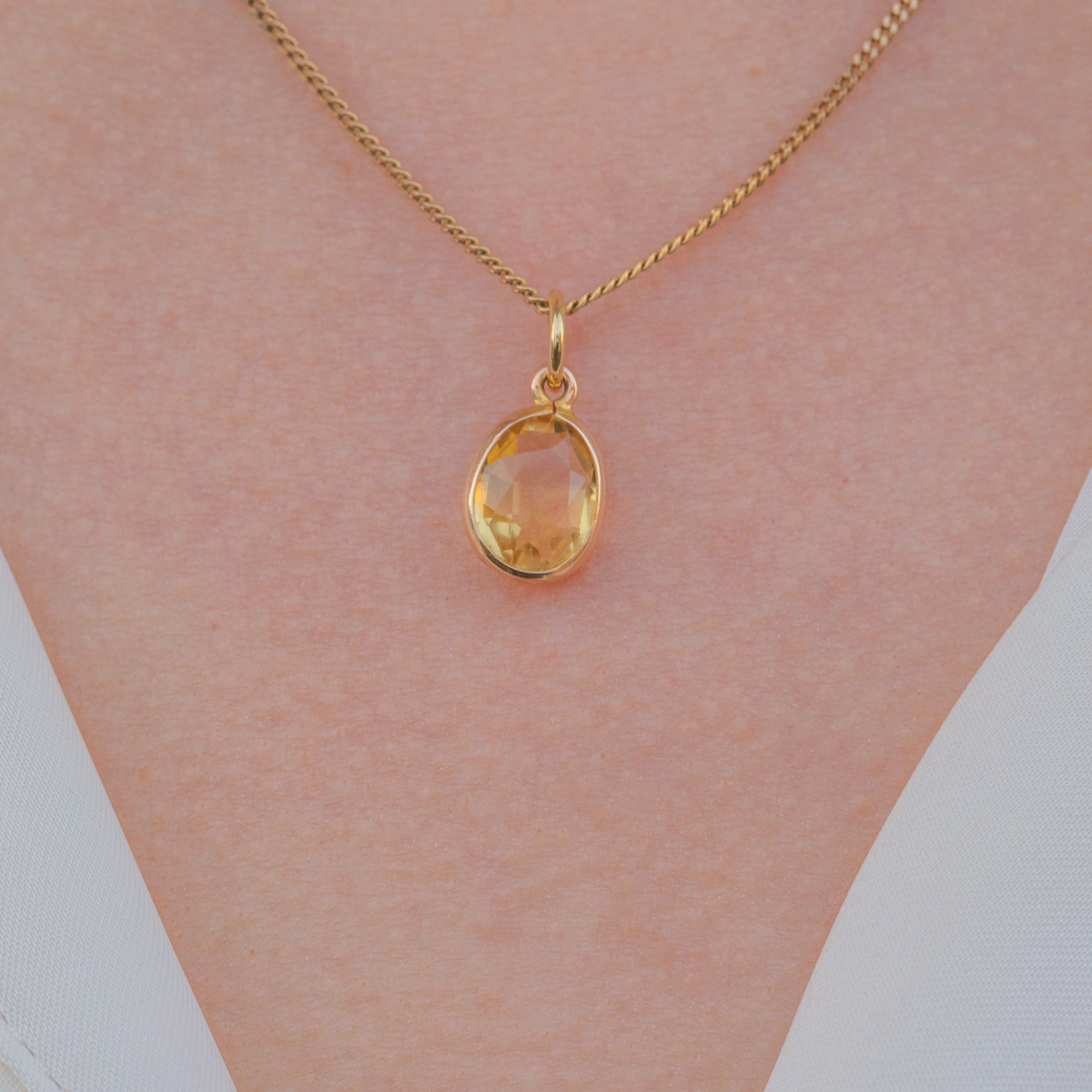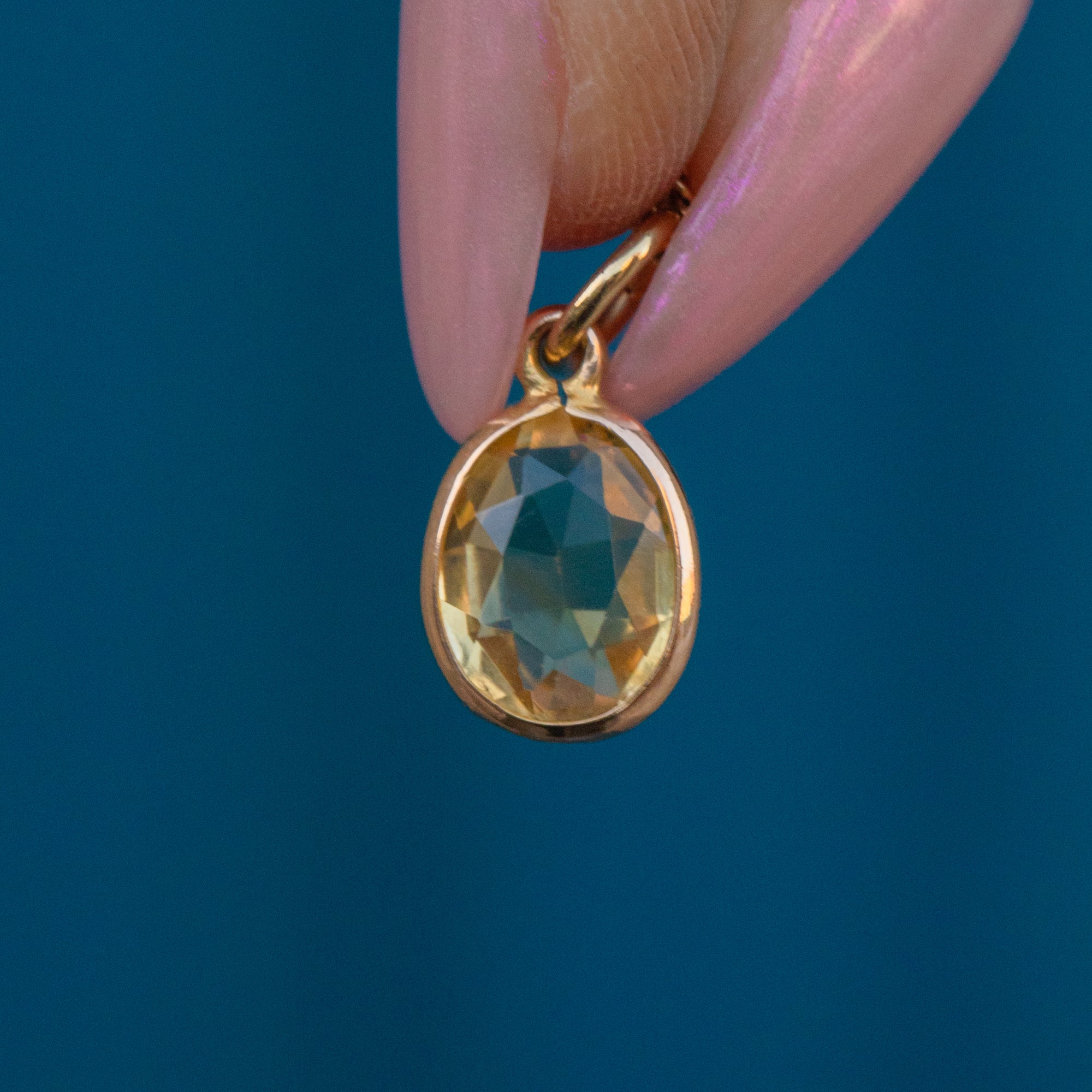 EXCELLENT. This antique 18ct Gold Citrine bezel set charm is presented in excellent condition. Her dewy honey-toned Citrine is perfectly faceted with no signs of dents or scuffs to note. Securely set in a saturated 18ct Gold, she's a delightful little treat!