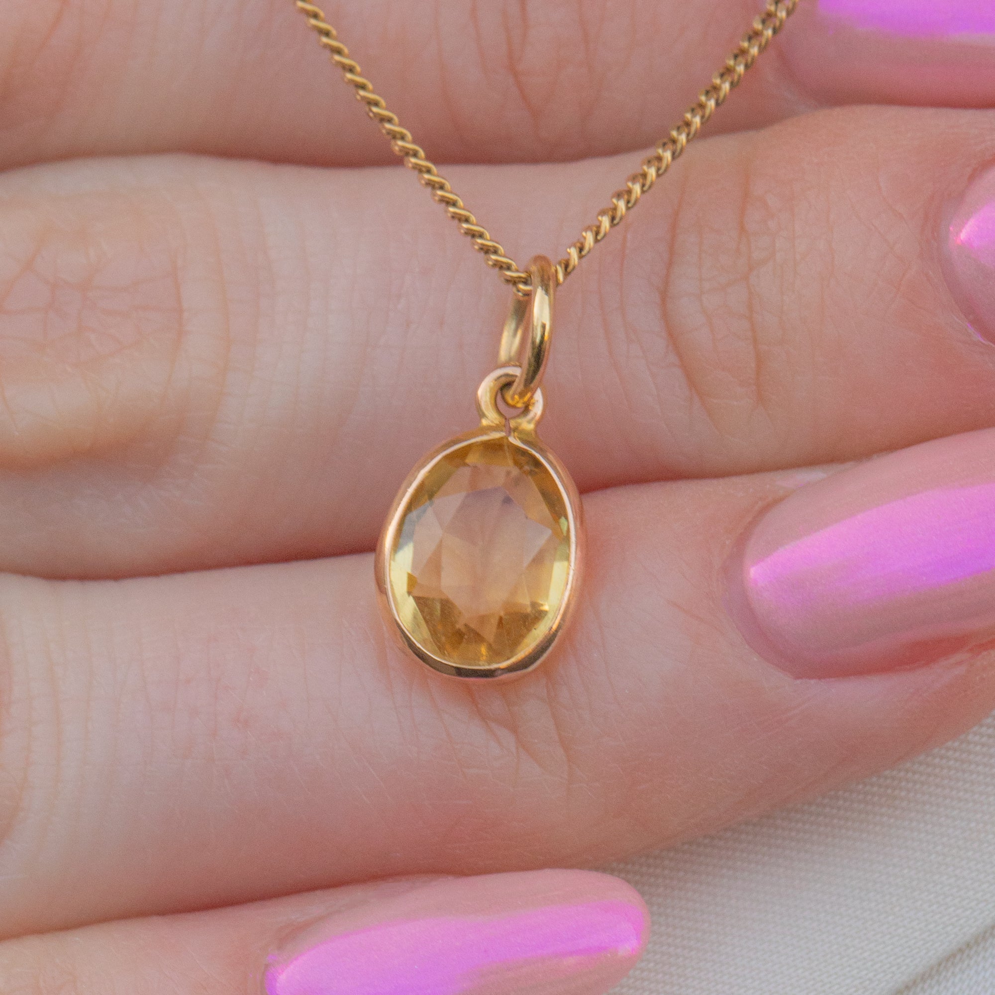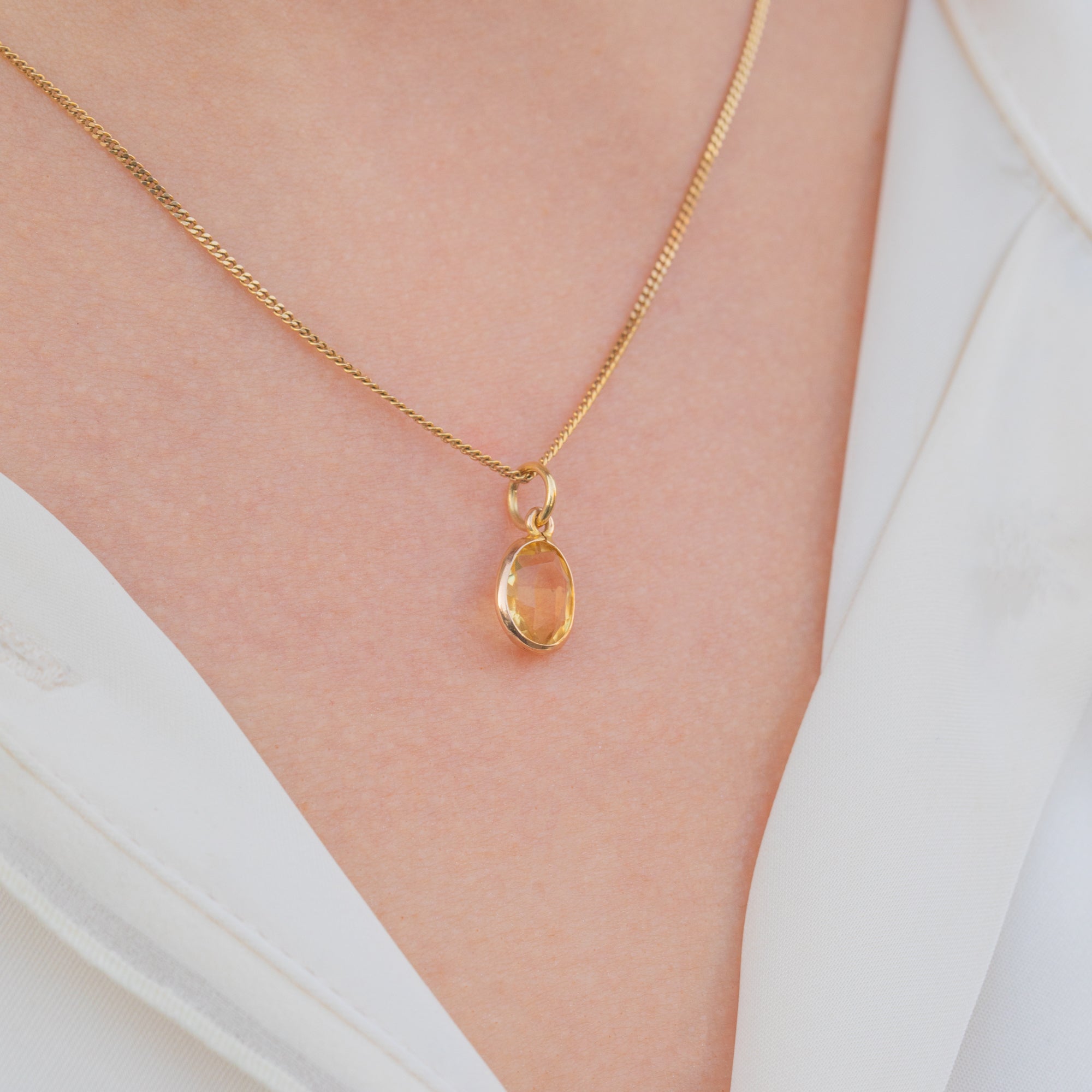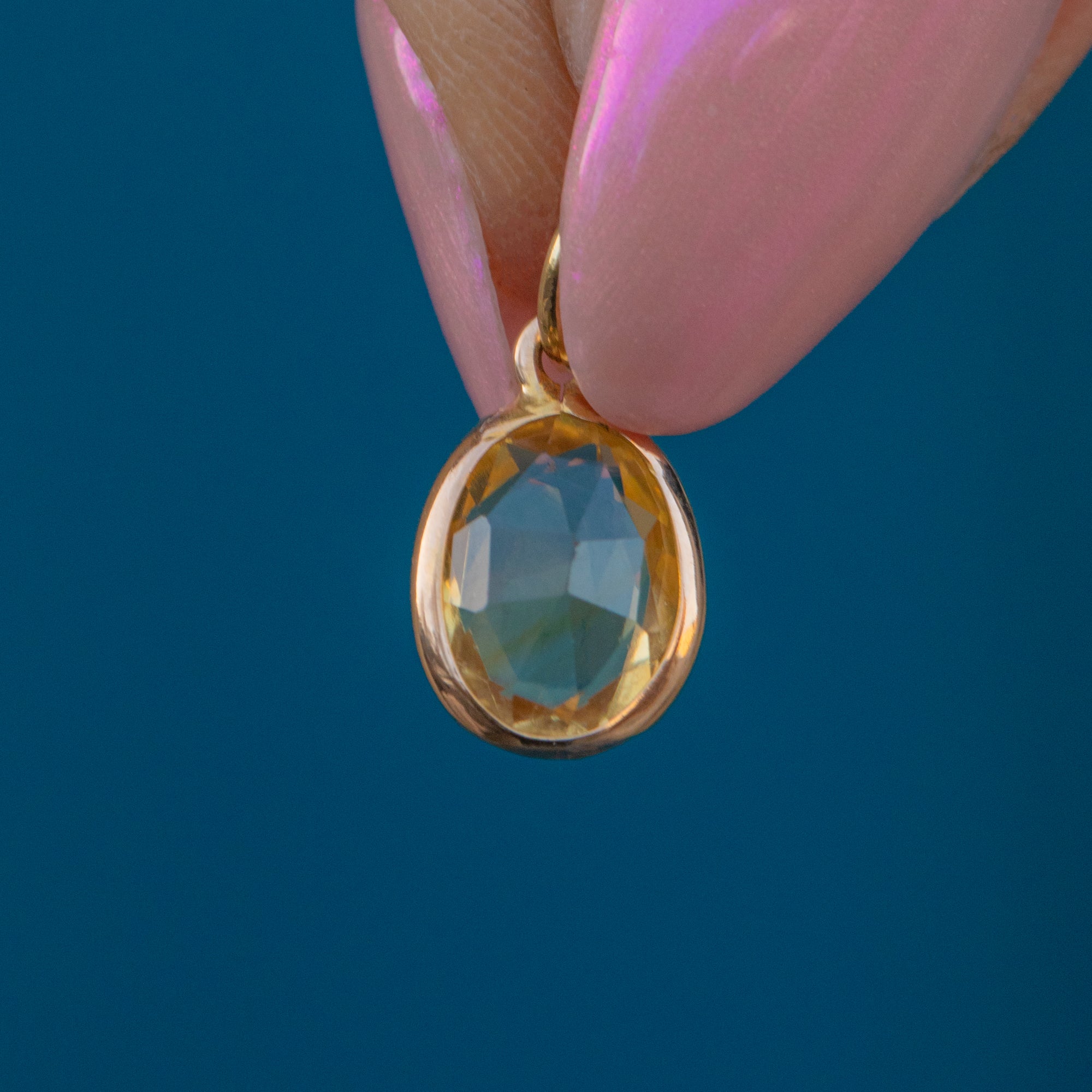 The warm and syrupy antique Citrine is crisp clear and nestled securely within her 18ct Gold bezel settings. She's a sweet dainty charm that will quickly become a favourite!