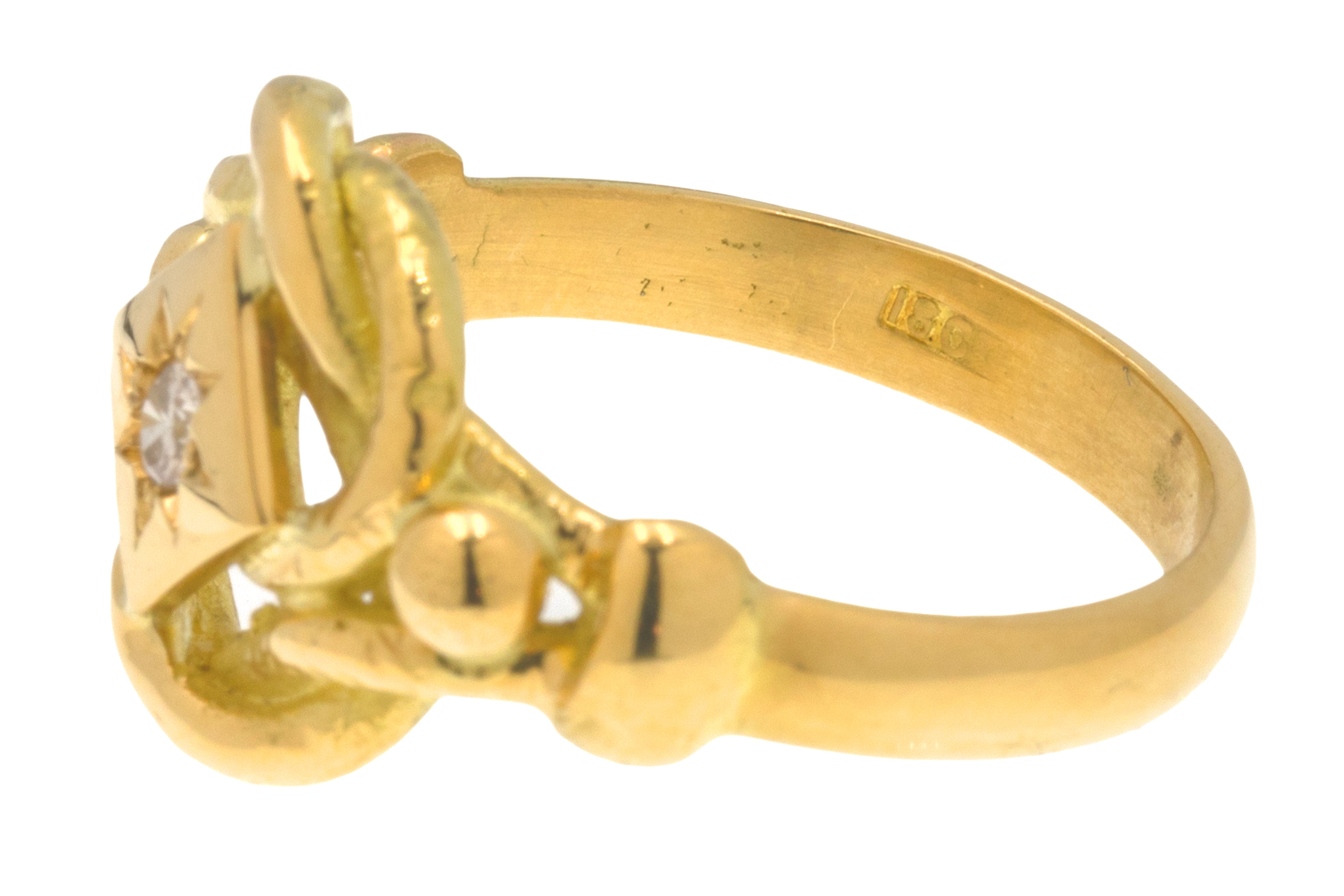 Heavy Antique 18ct Gold Diamond Lover's Knot Ring