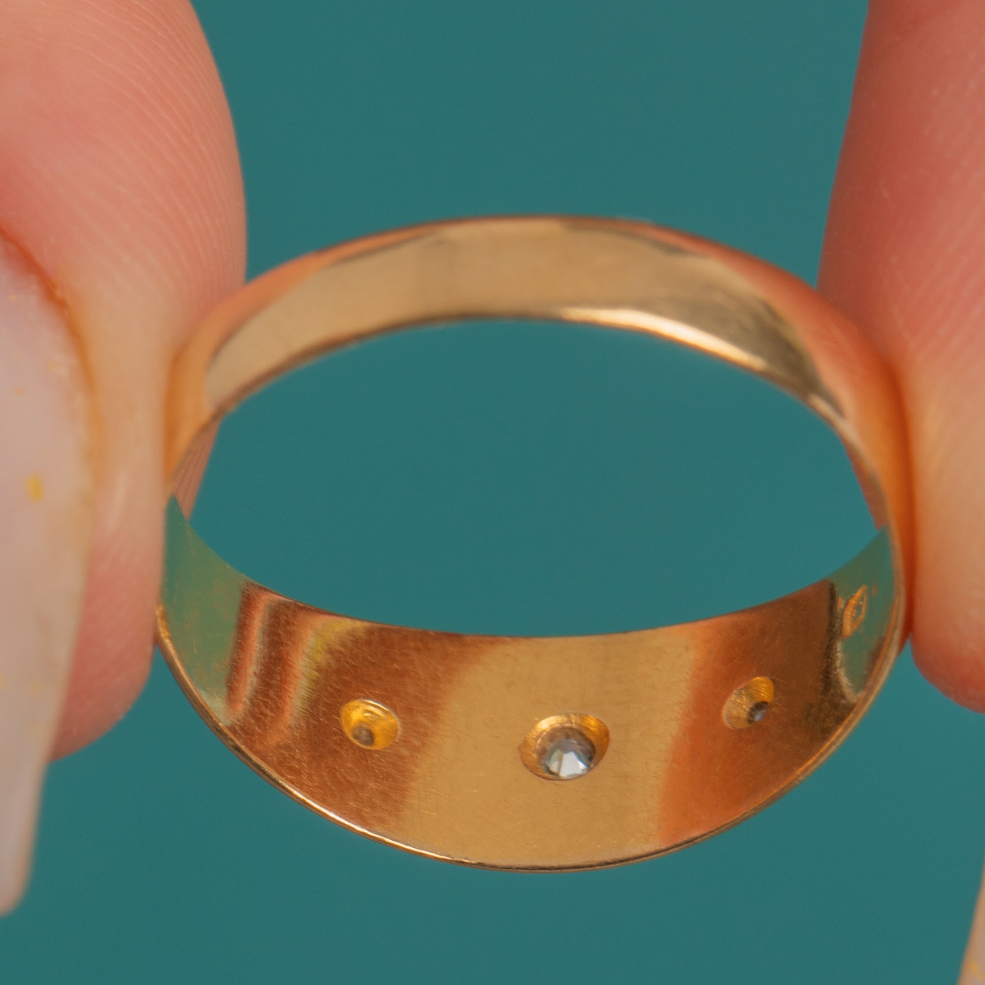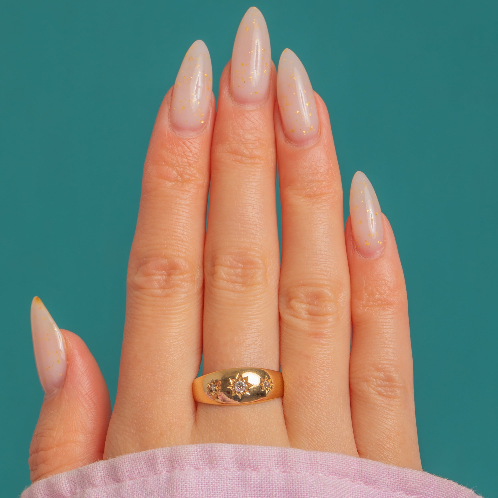 Antique 18ct Gold Domed Profile Diamond Stars Trilogy Stacking Ring Item added