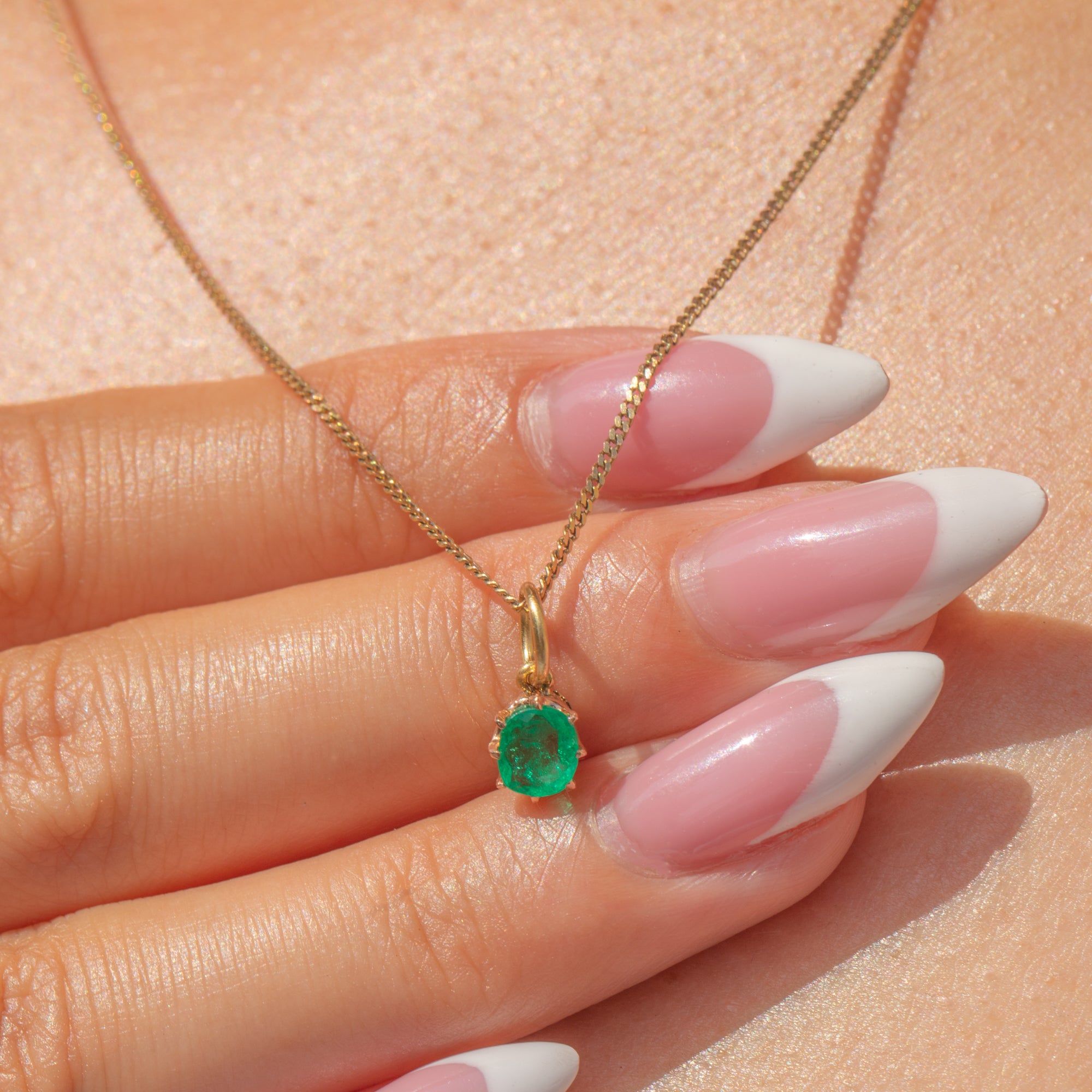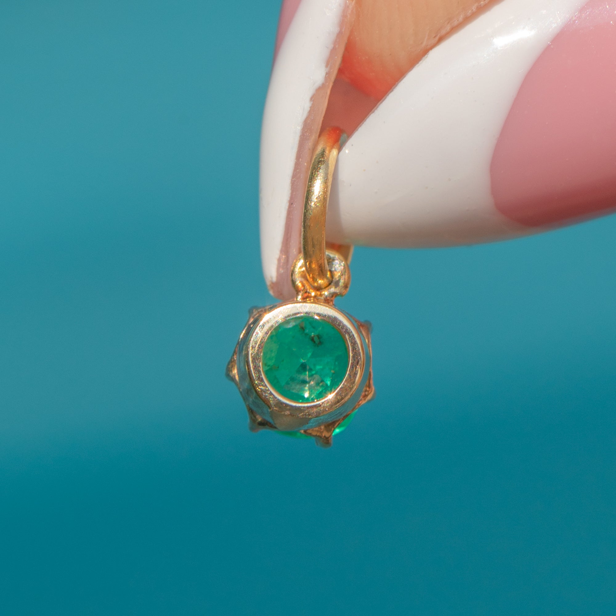 EXCELLENT: The Emerald is secure with bright, even colour. The Gold claw setting is in excellent condition, and the charm has been carefully preserved.