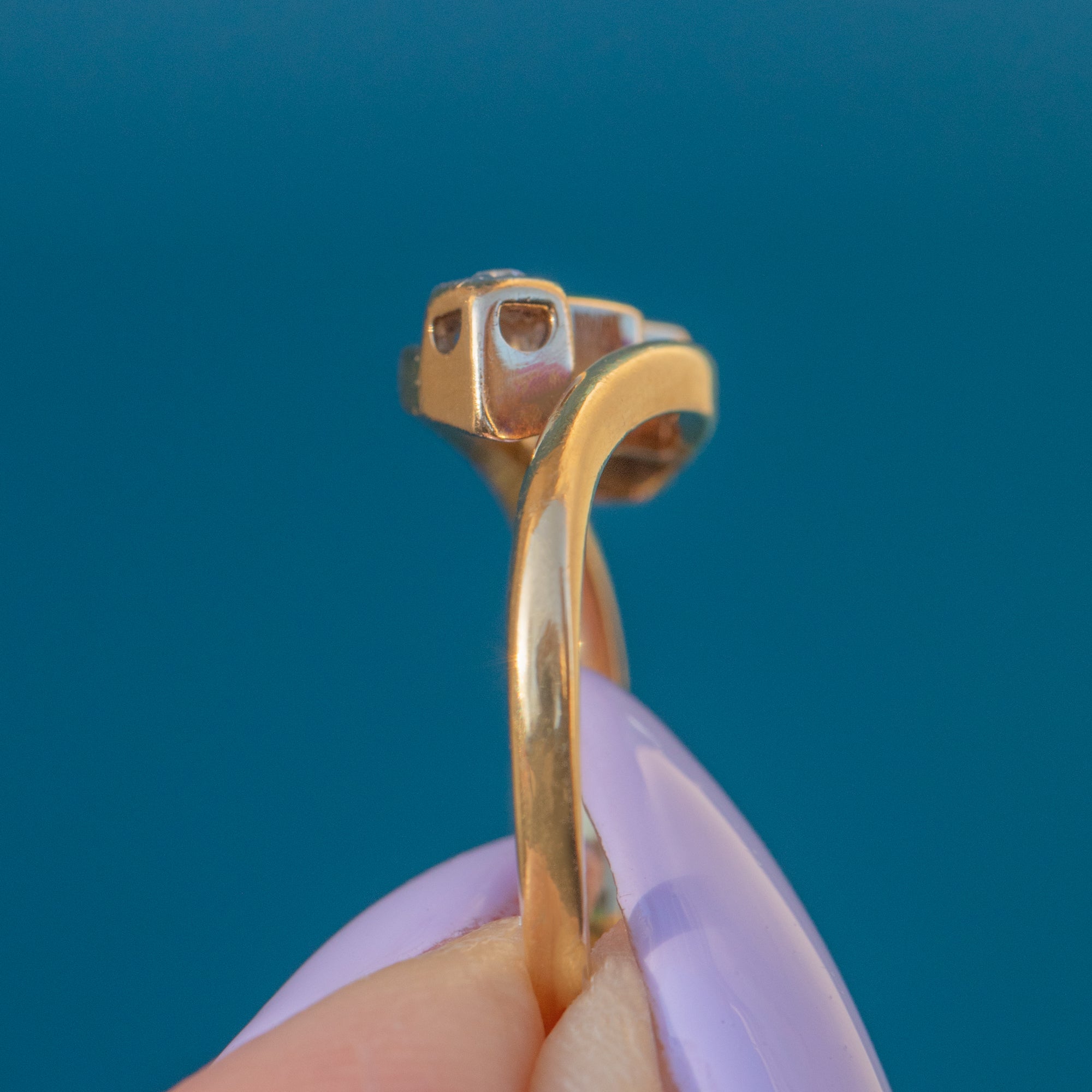 Antique 18ct Gold Emerald Diamond Bypass Ring