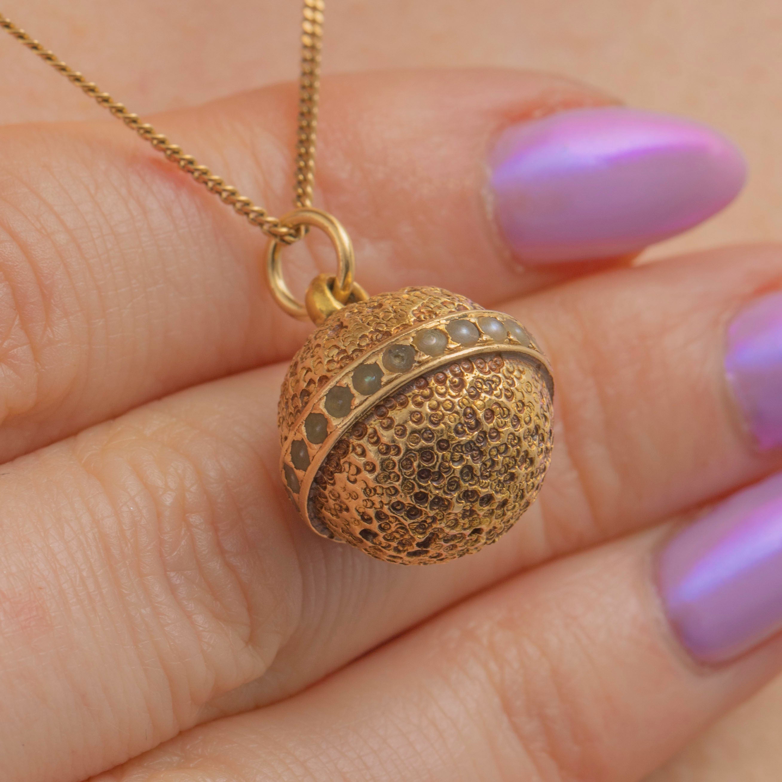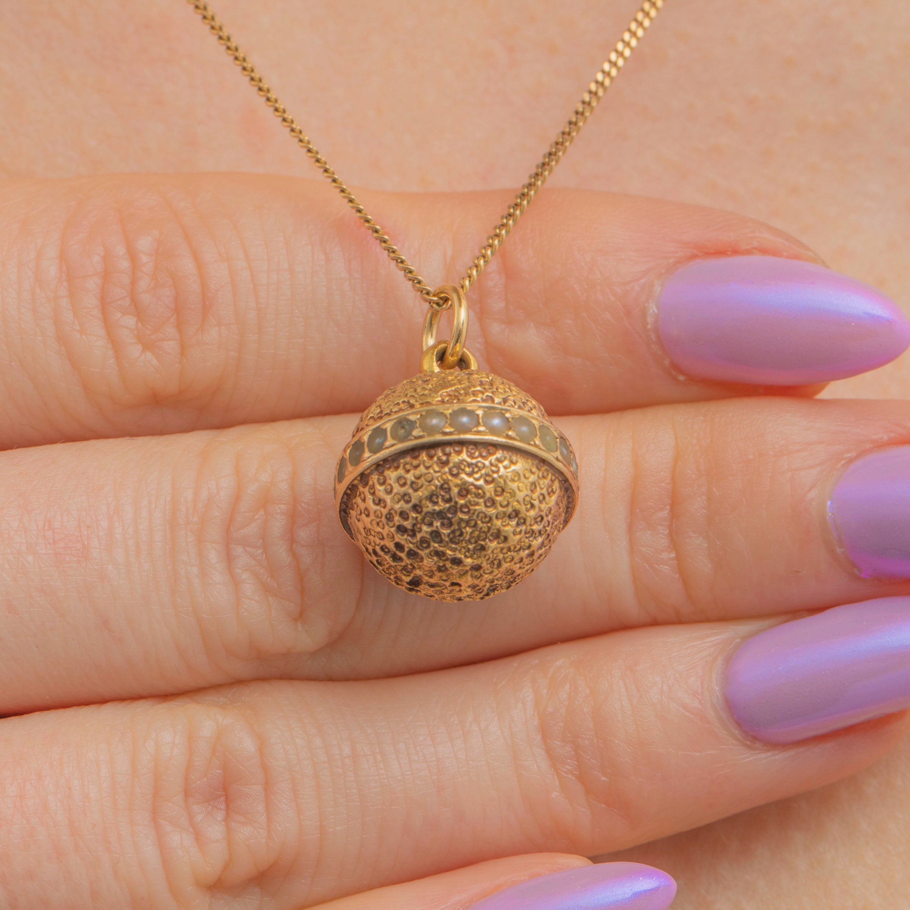 Add a drop of Victorian luxury to your collection with this antique 18ct Gold engraved Pearl orb pendant!