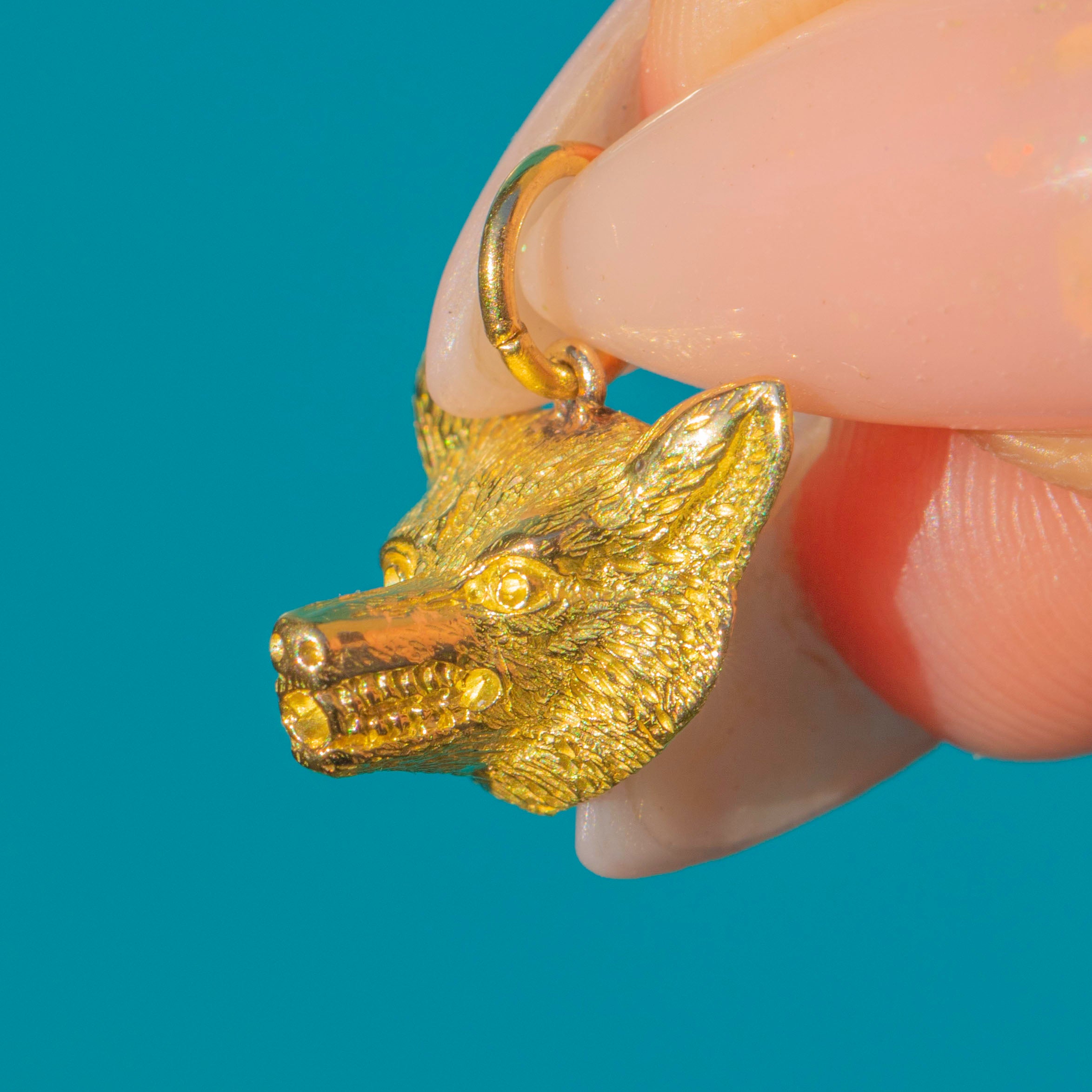 Weighing 3.9g, it has a reassuring heft for its size, and measures 13.5mm long including the jump ring. A superb charm to wear alone on a chain or as part of a curated antique bracelet, this fox is a true collector’s piece.