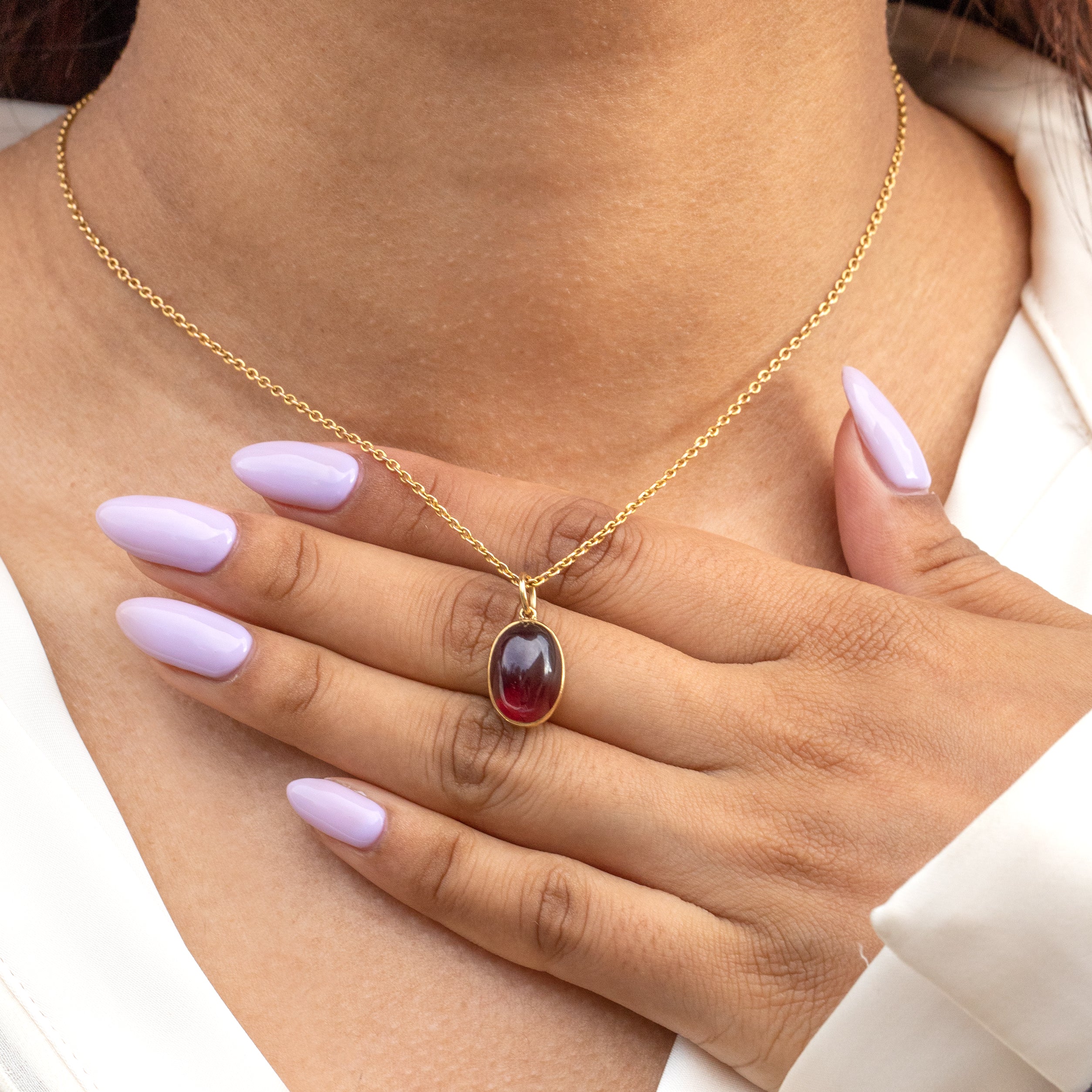 Transport yourself to the Victorian era with this exquisite antique 18ct Gold Garnet cabochon pendant! The deep and richly saturated 7.00ct Garnet is accentuated by the warm glow of the Gold, creating a captivating piece that almost looks good enough to eat!