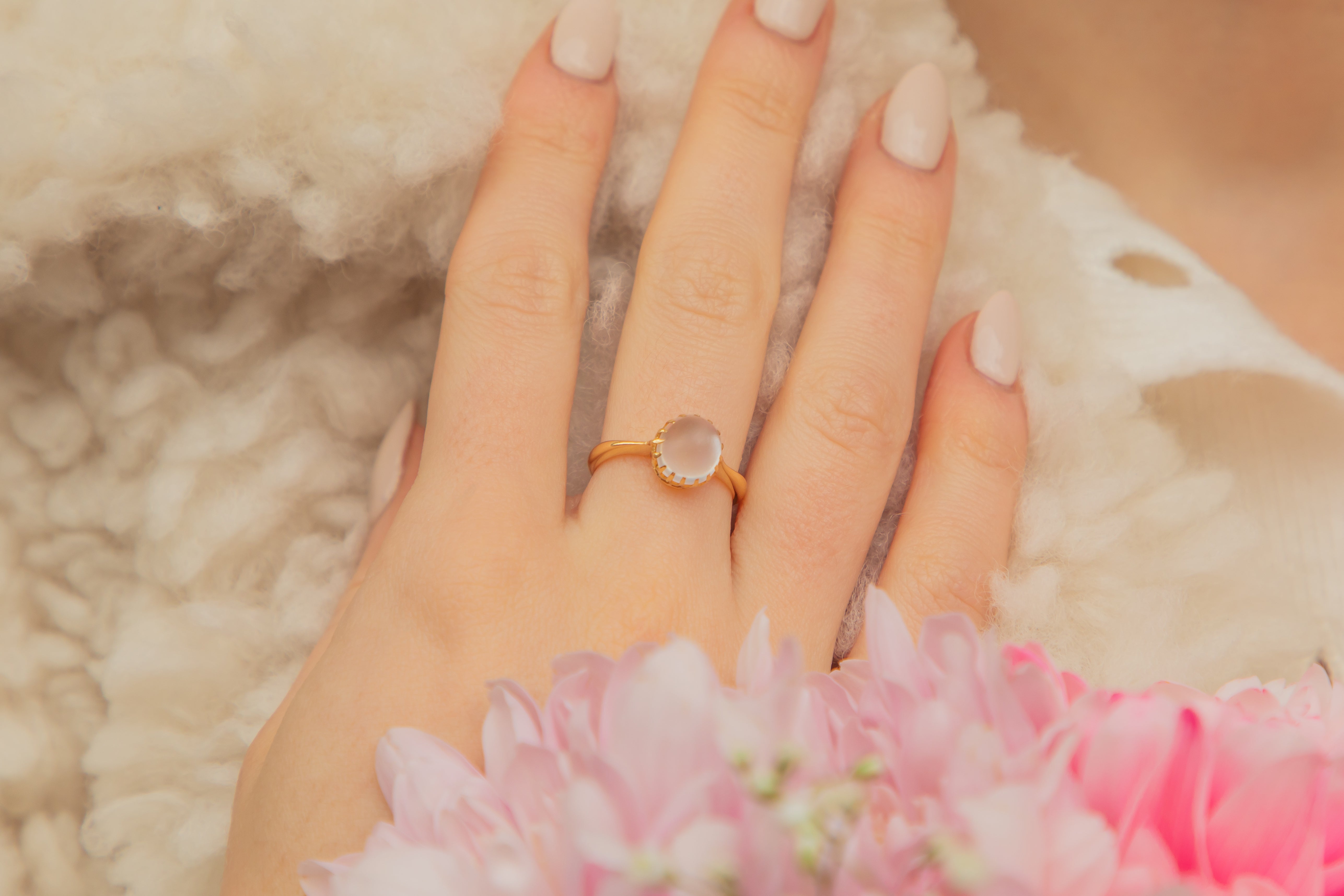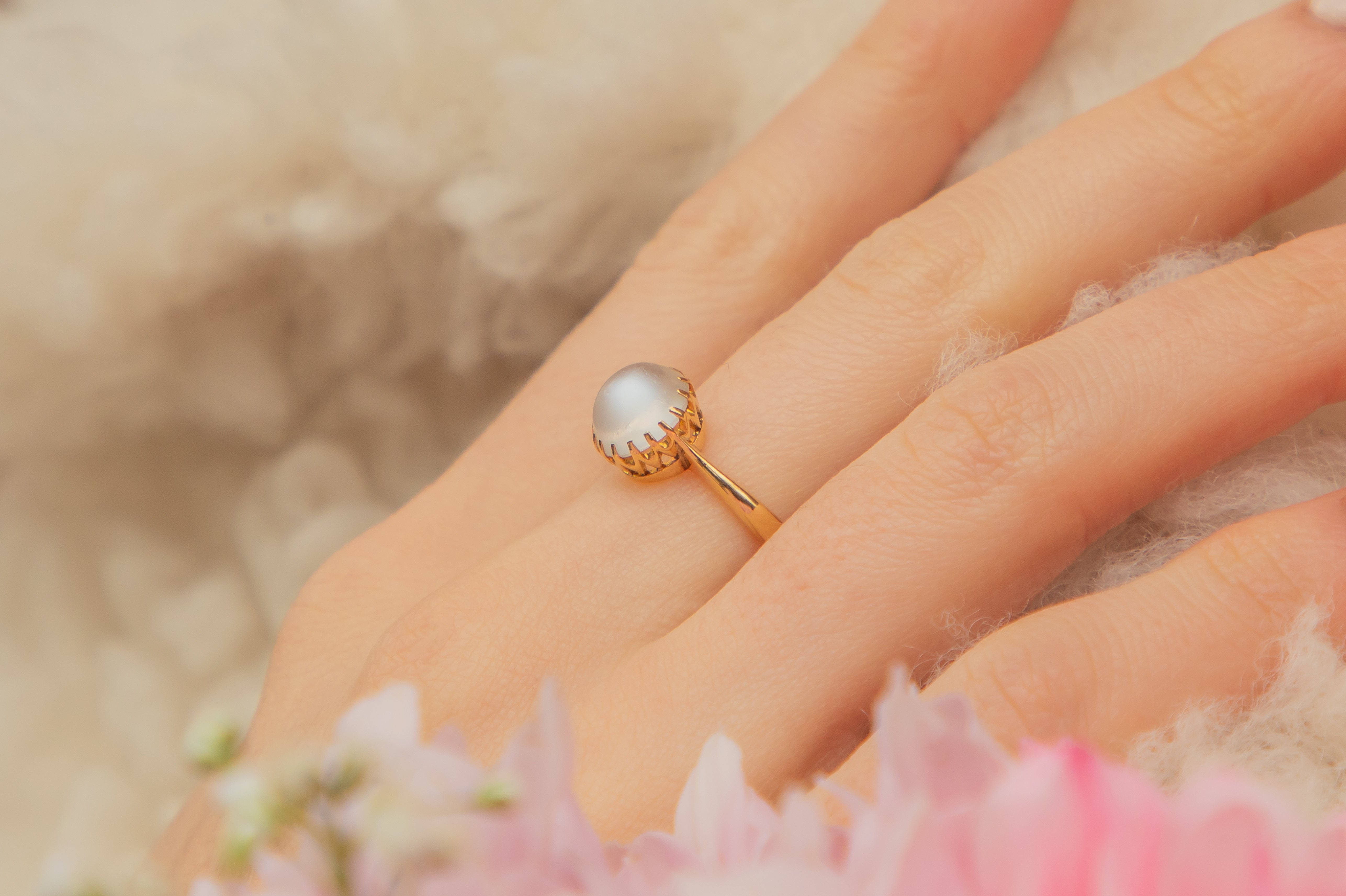 Resting effortlessly in 18ct Gold, this Moonstone doesn't fail to impress. Boasting a silvery adularescence only found in authentic antique Moonstones and r esting effortlessly in 18ct Gold, this Moonstone doesn't fail to impress.