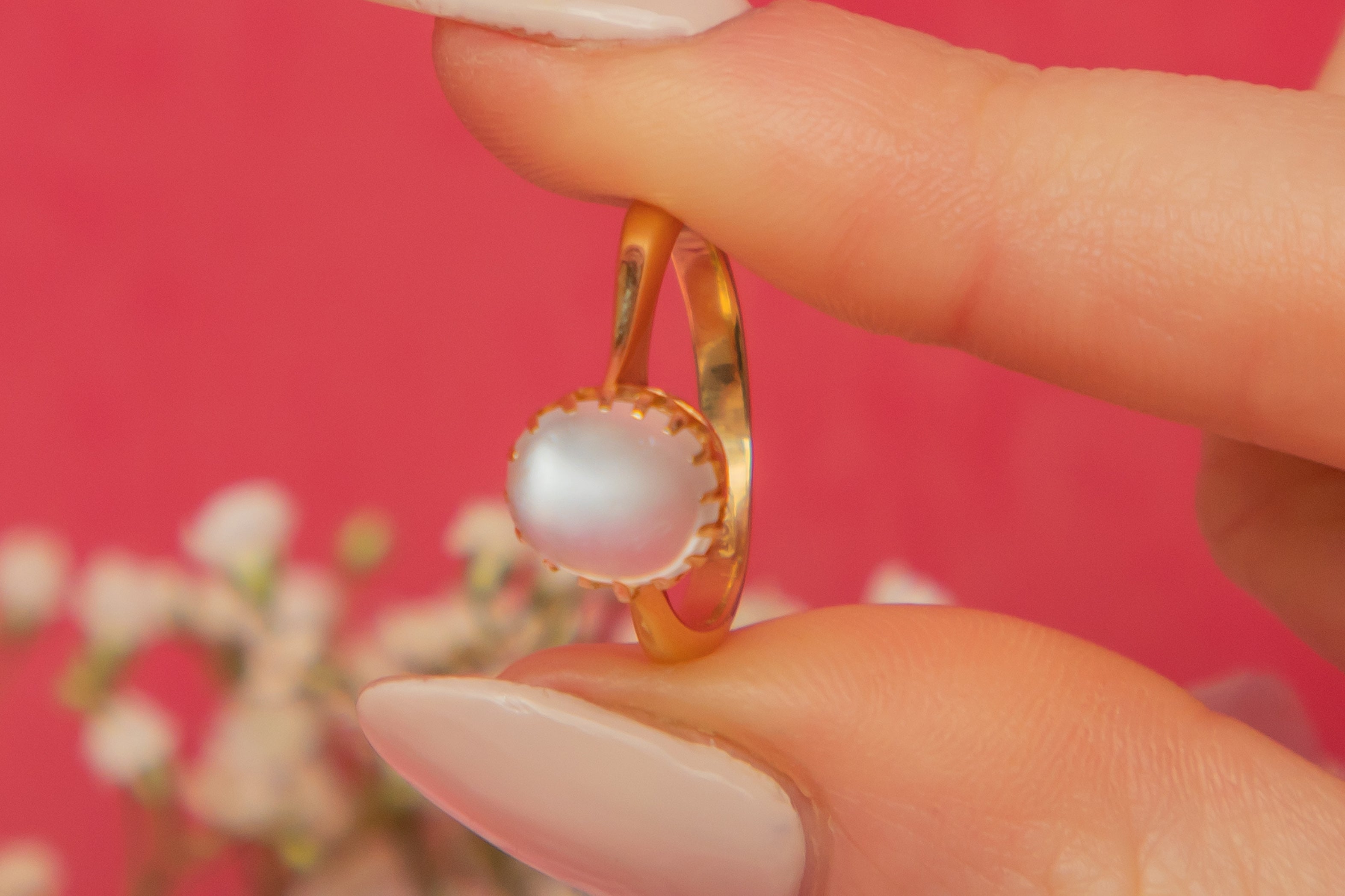 This is a gorgeous antique 18ct Gold cabochon ring fit for a princess! This ethereal piece fits the bill of magical and mystical, with one large cabochon-cut Moonstone at her centre!