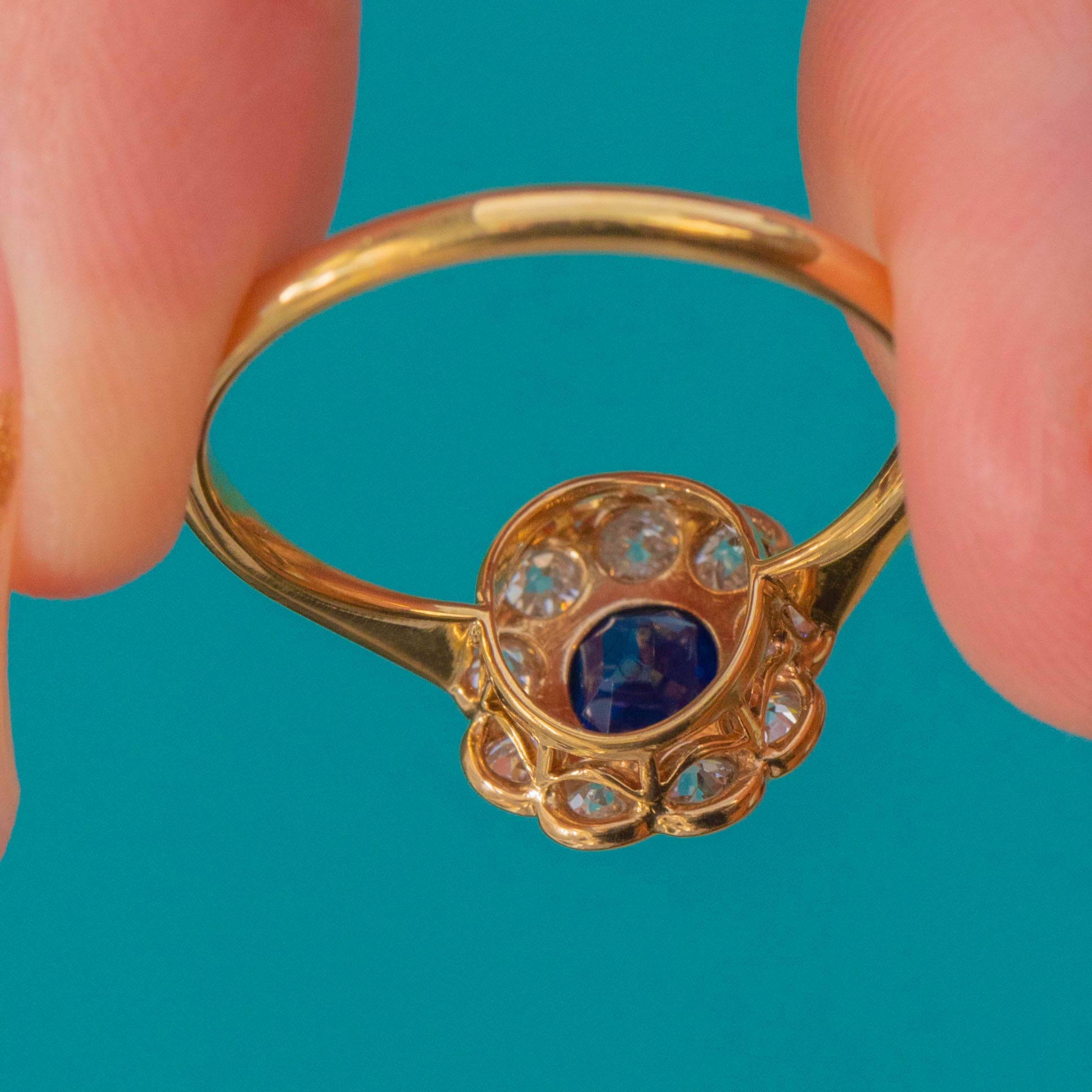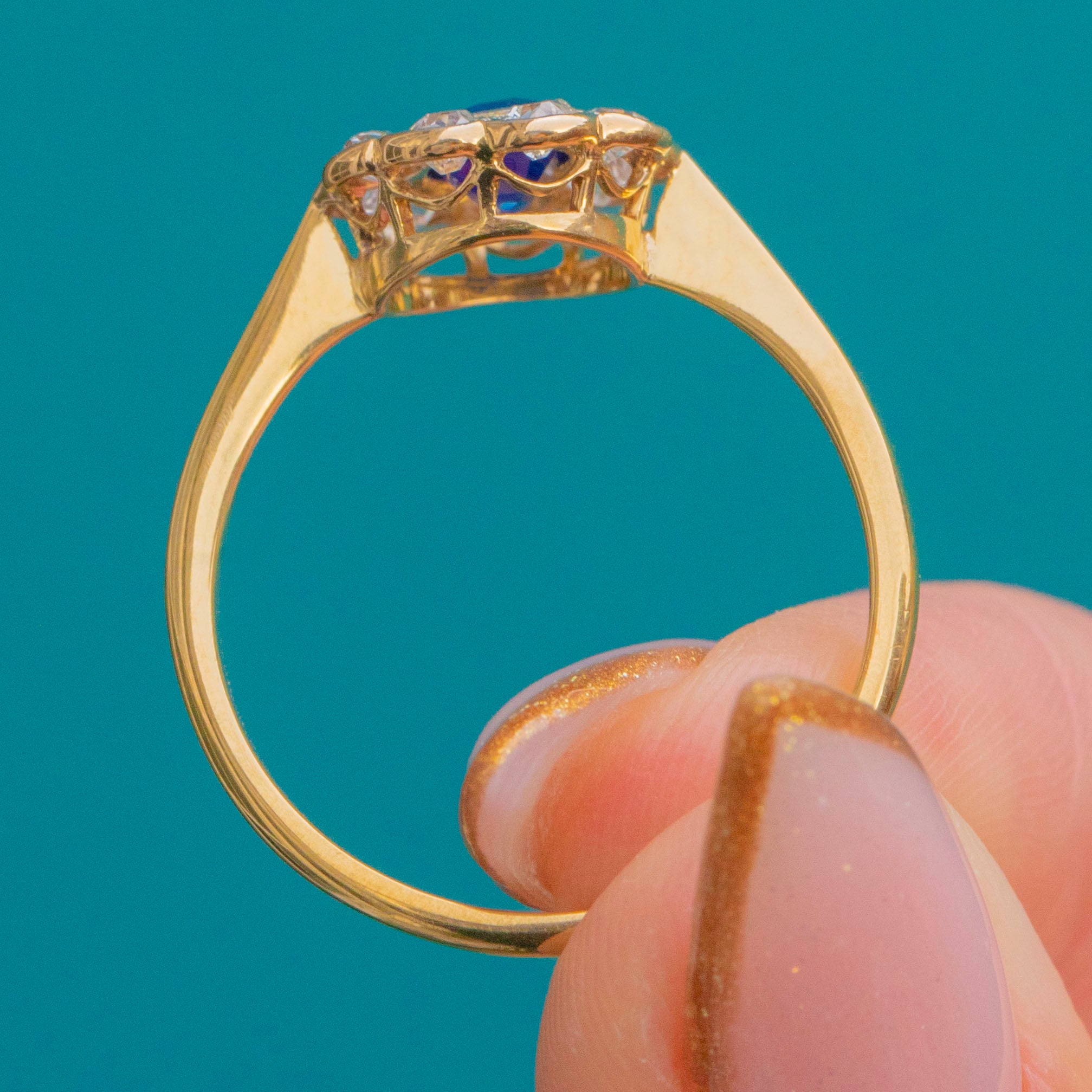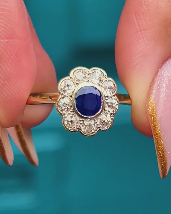 Antique 18ct Gold Natural Sapphire Diamond Cluster Ring