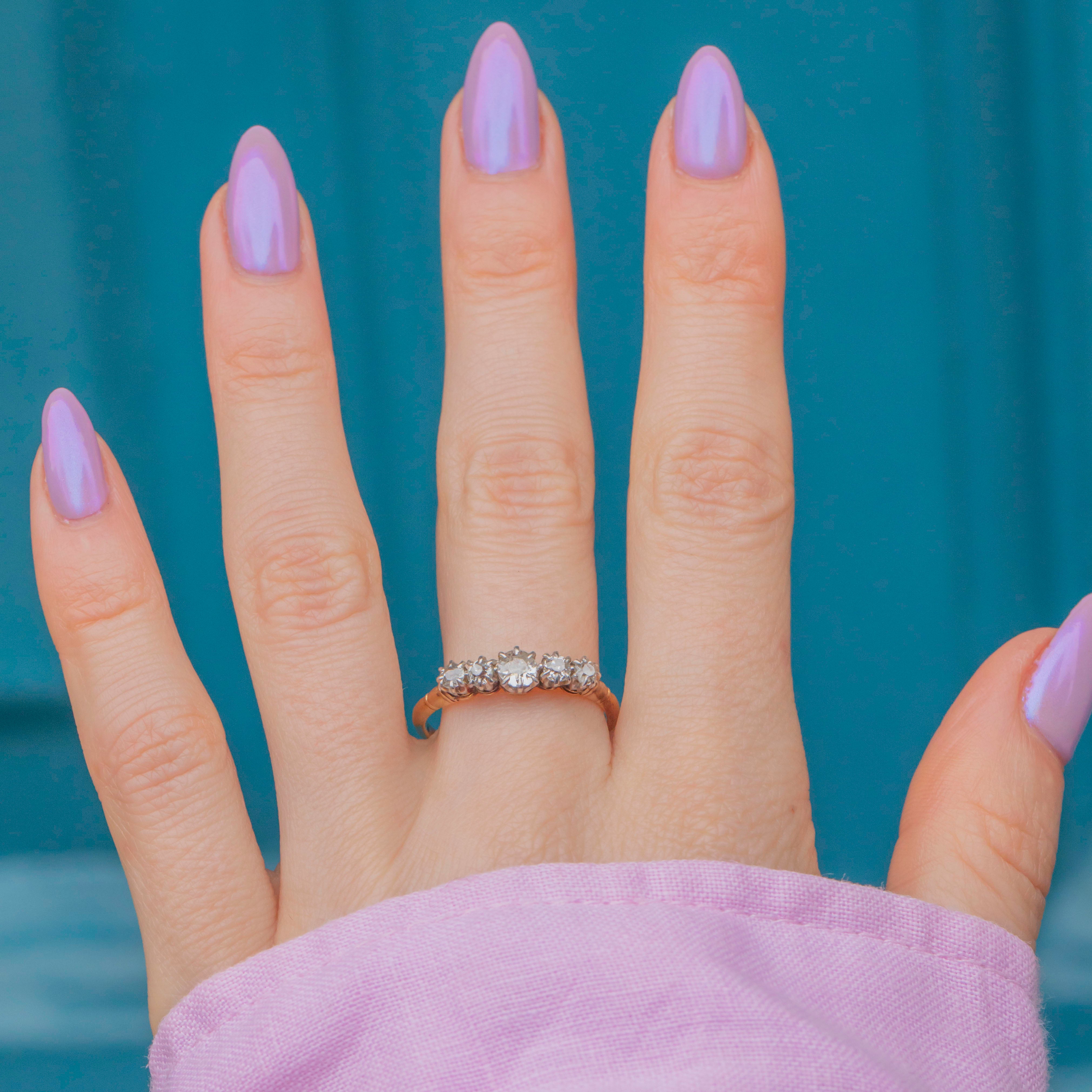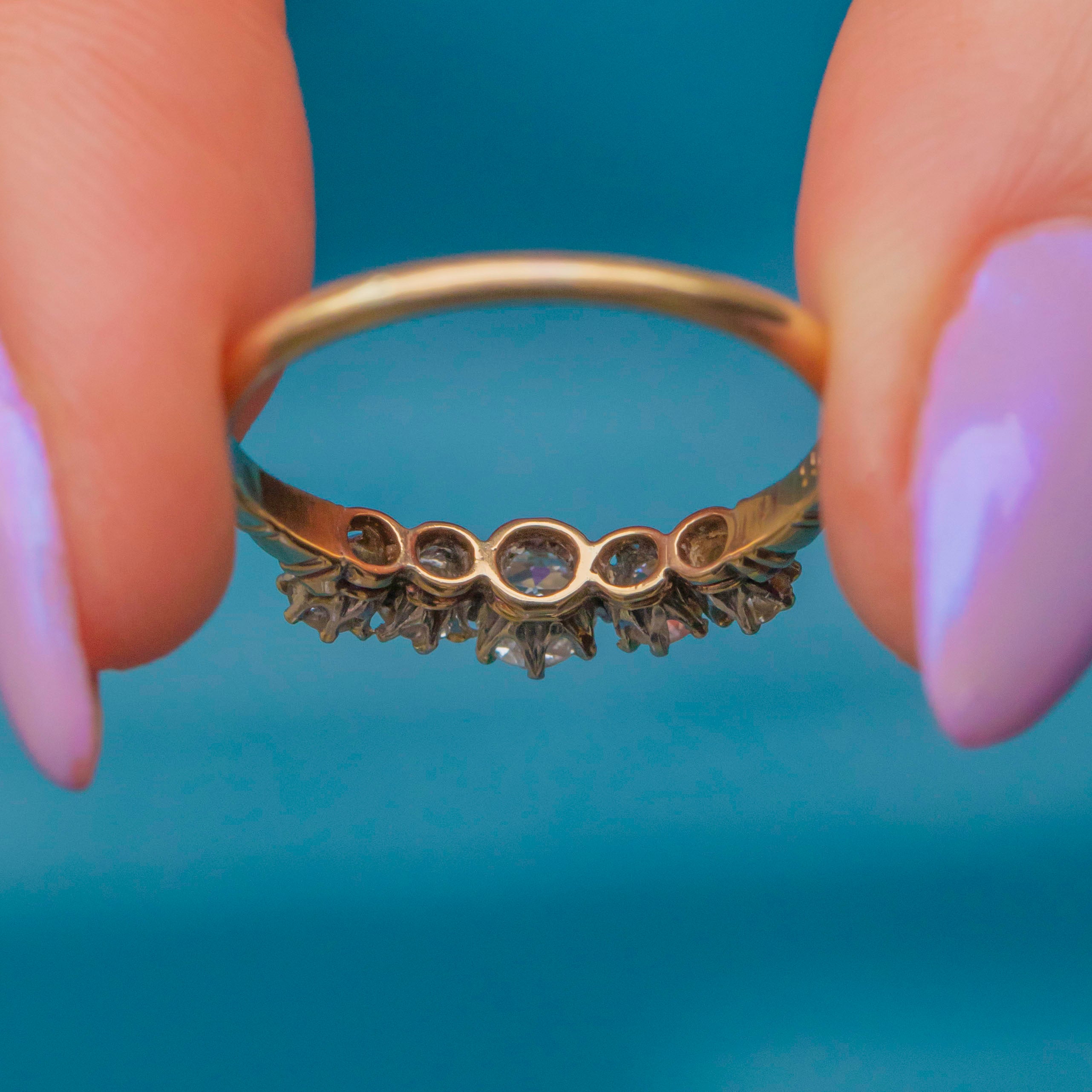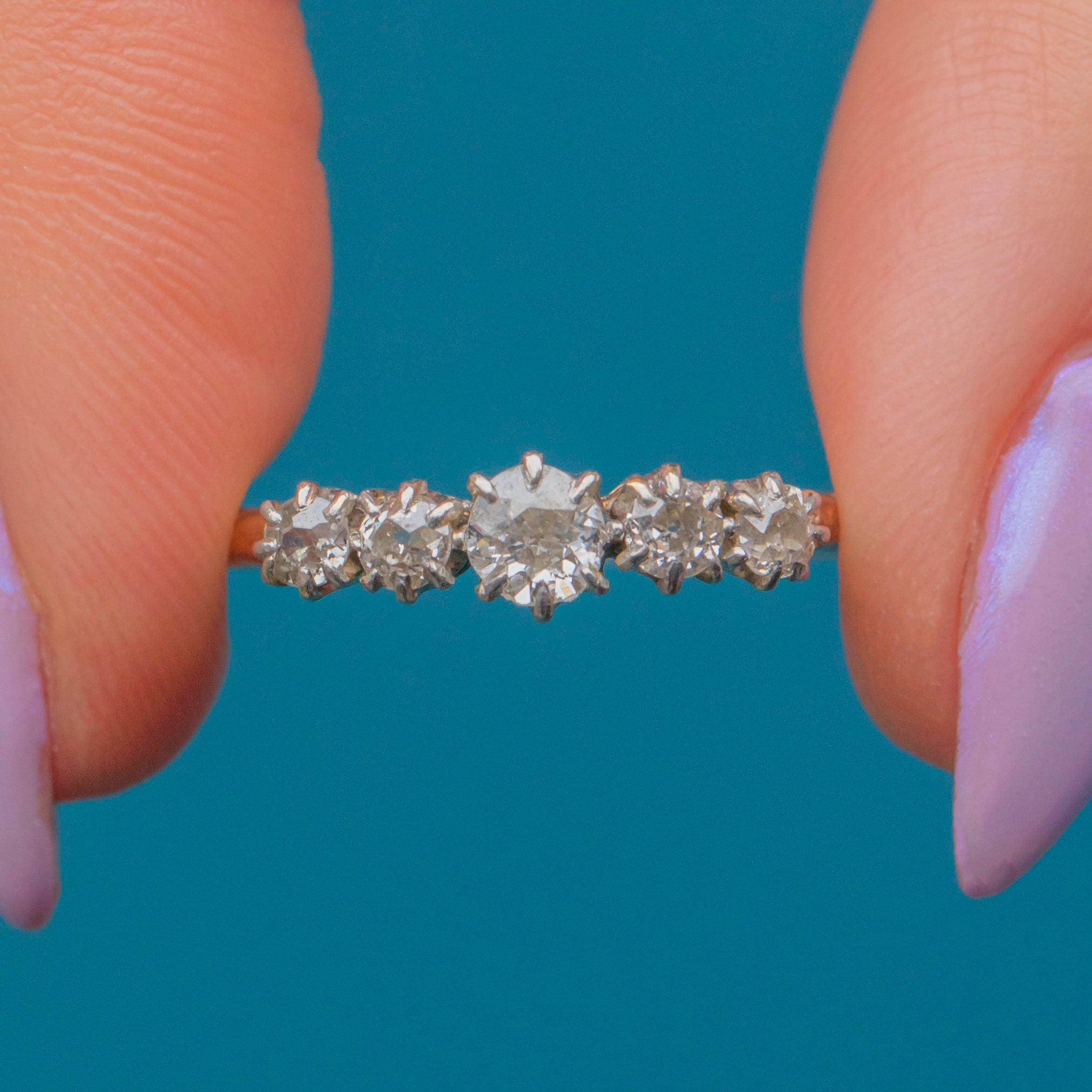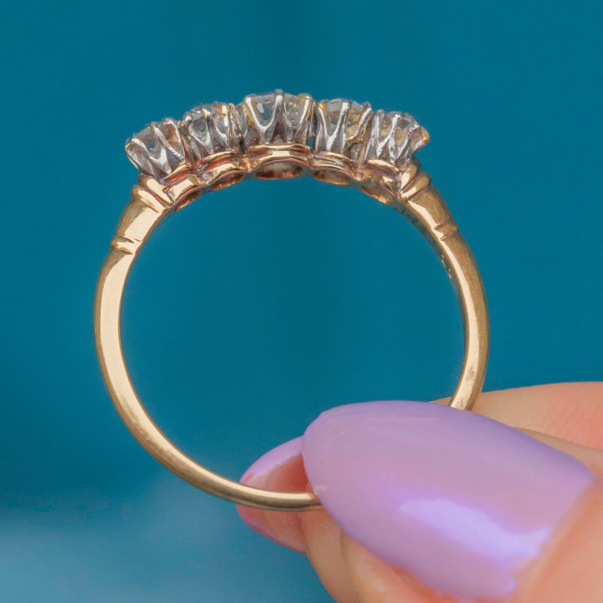 This Art Deco 18ct Gold Old-European cut Diamond five stone ring is an antique delight!