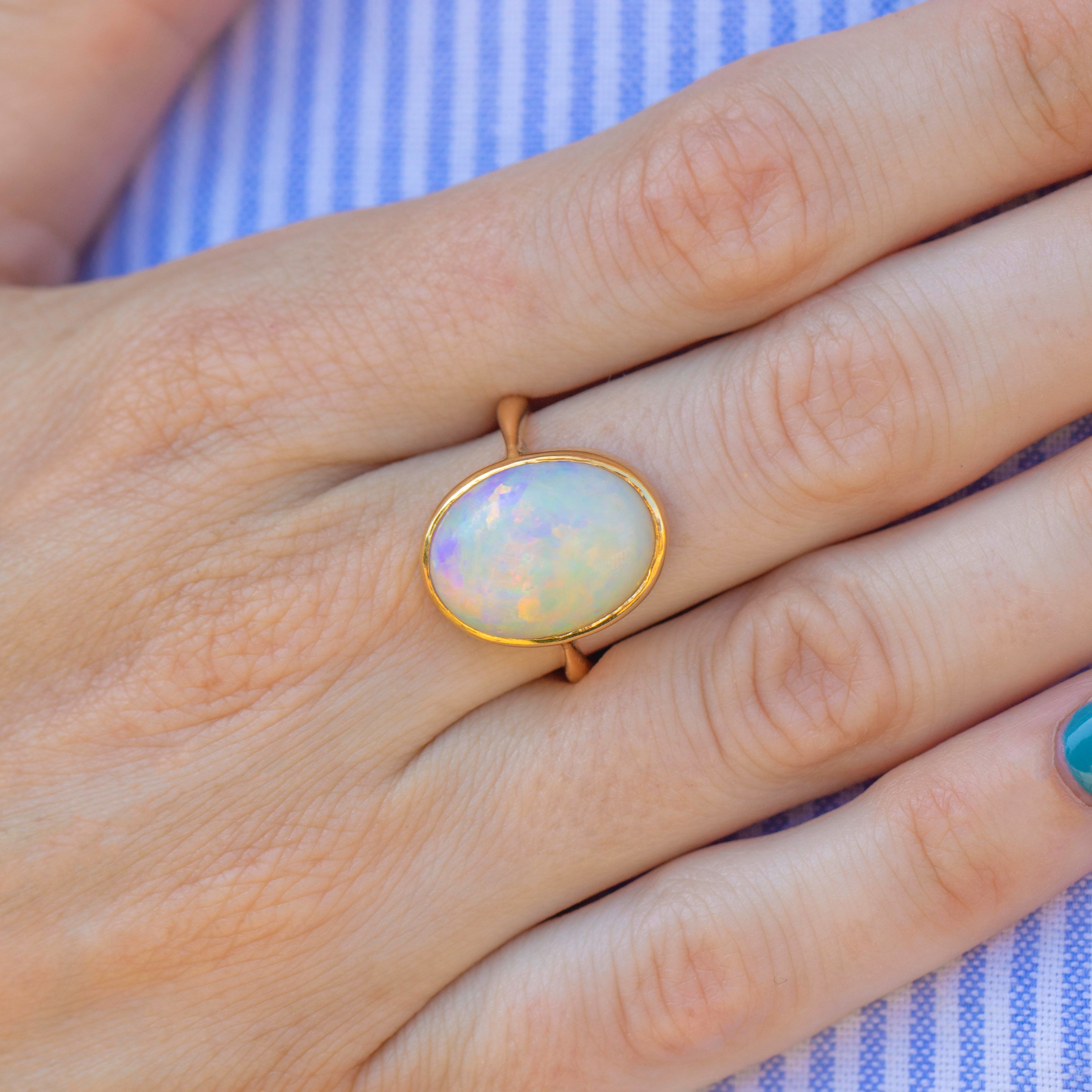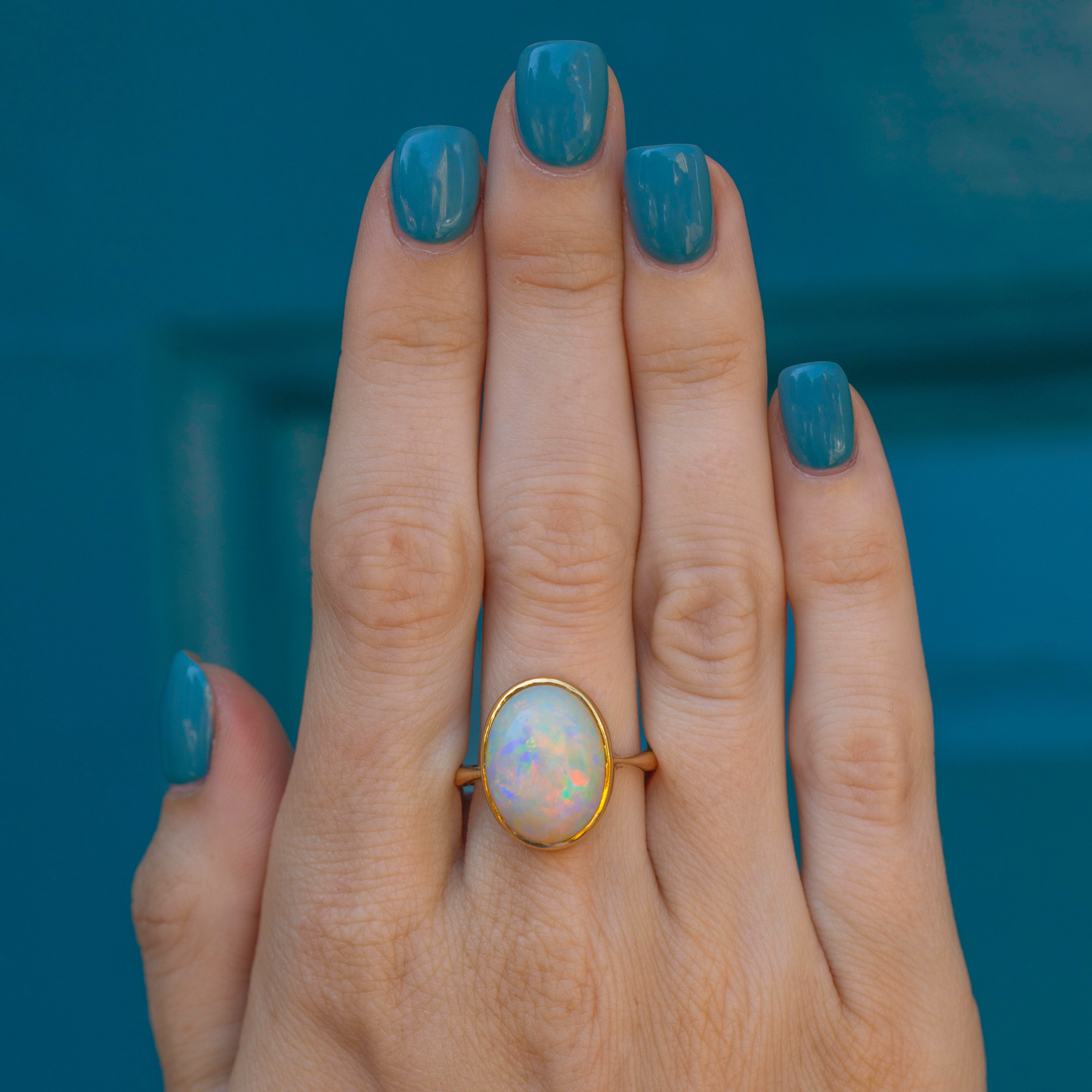 Antique 18ct Gold Opal Cabochon Ring, 3.52ct
